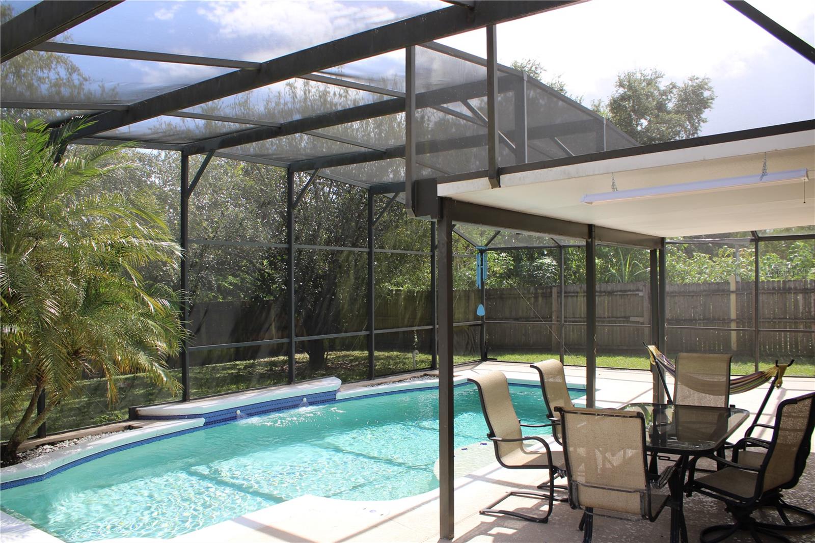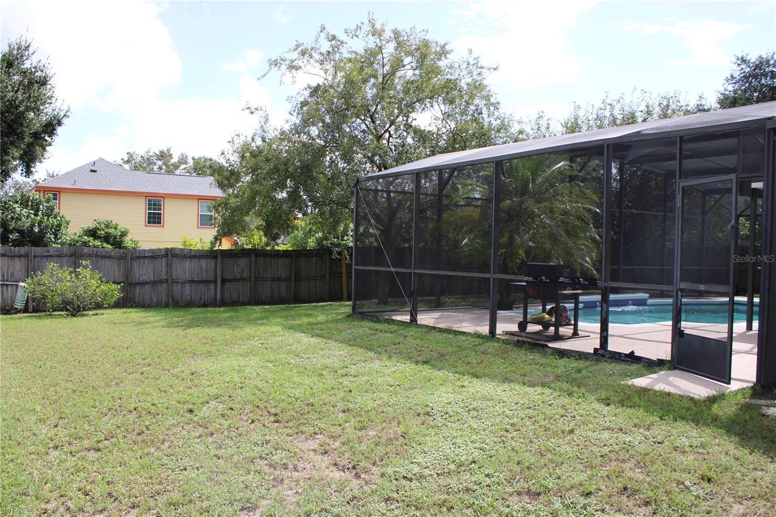 What a welcoming neighborhood! This 3 bedroom, 2 bathroom POOL home has NO HOA and centrally located to Disney, MCO Airport, and Universal. Favorite features of this home are the SCREENED in pool with SUNSHELF, covered PATIO space for outdoor entertainment, and additional yard space on this extra WIDE LOT. Inside the slider doors is an open living room/dining room with VAULTED ceiling, natural light, and engineered WOOD floors. A pass through window keeps the space open into the KITCHEN which features EXTRA CABINETS with BUFFET AREA and BREAKFAST NOOK. Primary bedroom with WALK-IN CLOSET and beautiful private entrance to POOL; has an ENSUITE bathroom with DOUBLE SINKS, vanity space, and LARGE SHOWER. The two additional bedrooms are located on the opposite side of the living room and share a bathroom in between. This property is currently home to steady renters who show interest to extend lease, making it an excellent investment property. Or if you want to make it your own home the lease ends 1/31/26 so a Post-Occupancy can be taken into consideration on timing for move-in. Let's talk and see what works best for you.