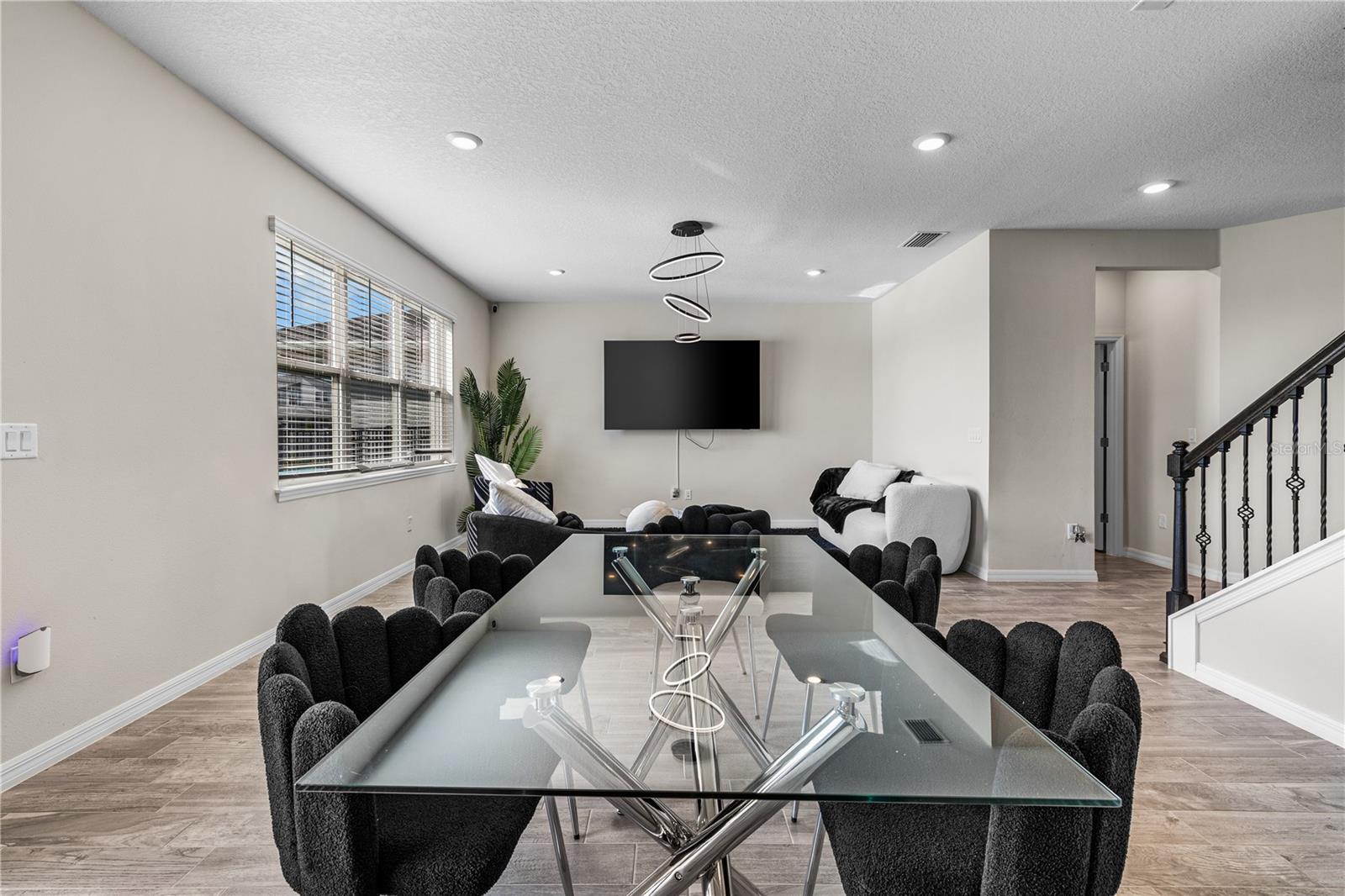 Discover a residence that blends elegance, spaciousness, and modern design in every detail. This Imperial model from the exclusive Forever series sits on a premium oversized homesite and showcases over $70,000 in upgrades, along with high-end finishes and thoughtfully designed spaces for comfort and style. The home features 5 bedrooms, 3.5 bathrooms, a versatile loft, walk-in shower, formal dining room, a generous gathering room, and abundant storage throughout. The gourmet kitchen is the centerpiece of the home, offering a large island perfect for entertaining, upgraded pendant lighting, a spacious walk-in pantry, built-in stainless-steel KitchenAid appliances, 42” Sinclair cabinetry, Lyra quartz countertops, and a designer tile backsplash. This area seamlessly connects to the café and gathering room, both of which overlook the extended covered lanai. The owner’s suite bathroom offers a serene, modern feel, with a Maple quartz, an upgraded glass shower door, and enhanced shower tile. The home also includes a laundry room with an upgraded sink and a variety of carefully selected finishes throughout the layout. For added convenience and peace of mind, the property includes full exterior fencing, a security system, a smart doorbell, and a smart lock. EverBe is a master-planned community designed to elevate everyday living. Its prime Orlando location, with quick access to 417 and 528, offers miles of walking trails, Wi-Fi–enabled green spaces, outdoor recreation areas, a fitness center, a resort-style clubhouse and pool, and a waterfront amenity center. This is the perfect home for those seeking space, luxury, and a strategic location in one of Central Florida’s communities of growth and future potential.