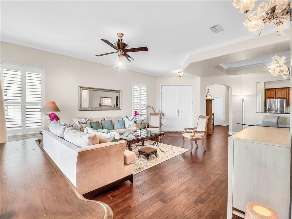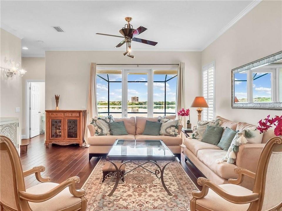 LIVE LAKESIDE LUXURY — MOVE-IN READY! Step into the serene elegance of Vizcaya Heights, one of Orlando’s most exquisite gated communities. This stunning 3-bedroom, 2.5-bathroom waterfront END UNIT. It offers the perfect blend of style, space, and sophistication. Wake up every morning to breathtaking water views and enjoy your evenings with the gentle breeze off the lake—visible from nearly every room. This spacious two-story villa features 10-foot ceilings, rich hardwood flooring, and designer touches like tray ceilings and custom ceiling fans throughout. Natural light pours into the expansive living and dining areas, while the gourmet kitchen boasts granite countertops, a center island, stainless steel appliances, a pantry, 42-inch cabinetry, and both breakfast bar and cozy dinette. Upstairs, your private master retreat awaits—complete with serene lake views, dual walk-in closets with custom organizers, and a luxurious ensuite bathroom featuring a dual vanity, jetted spa tub, and a large walk-in shower. Enjoy your morning coffee or evening wine from the screened balcony, where the lake becomes your personal backdrop. All three bedrooms are located on the second floor, along with a versatile loft space—ideal for a home office, reading nook, or creative studio. A laundry closet with extra shelving is conveniently located downstairs. The home also features an attached two-car garage and ample guest parking nearby. Outside, enjoy peaceful moments on the screened-in lanai—a perfect spot for entertaining or relaxing. Lawn care is included, giving you more time to enjoy everything the community and surrounding area has available. Residents of Vizcaya Heights enjoy 24-hour guarded gate security, access to a clubhouse, fitness center, resort-style pool & spa, and tennis courts—all impeccably maintained. You’ll be steps away from Orlando’s acclaimed Restaurant Row, grocery favorites like Whole Foods, Trader Joe’s, Publix, and the Dr. Phillips Library. Walt Disney World, Universal Studios, SeaWorld, top-rated schools, and world-class shopping are all within 5 to 15 minutes. Don’t wait—schedule your private showing today! Homes like this in Vizcaya Heights rarely become available, and this one will go fast.