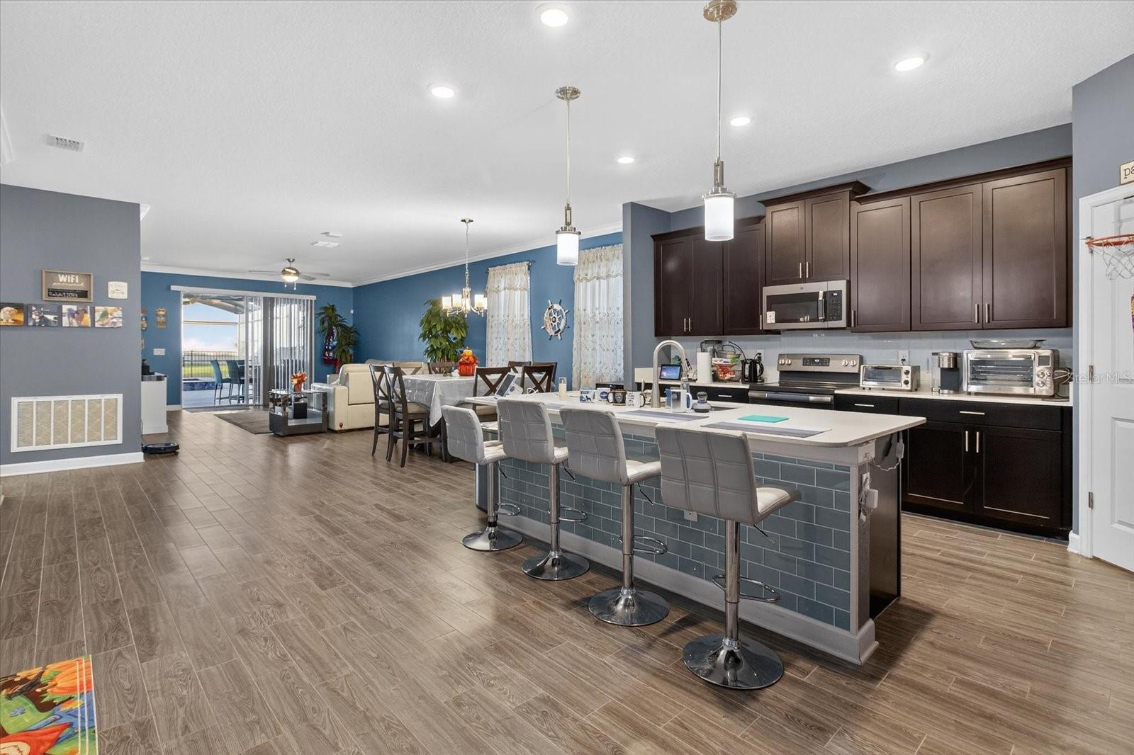 Welcome to this one-story retreat with a wonderful pool at 12073 Imaginary Way in Orlando! Built in 2019, this beautifully maintained 3BR/2BA home offers 2,089 sq. ft. of open living space with a modern kitchen that flows into the dining and living areas—perfect for entertaining or family gatherings. Property also features a bonus space that can be converted into a room/office space. Step outside to your private backyard oasis featuring a heated saltwater pool, ideal for relaxing or hosting guests. This energy-efficient home includes solar panels, Two Tesla batteries generates entire house except pool, 2EV wall chargers for electric vehicles and one universal backup battery, and a brand-new water heater installed Jan 2025. Located in the desirable Storey Park community, close to shopping, dining, and major highways. Move-in ready and waiting for you!