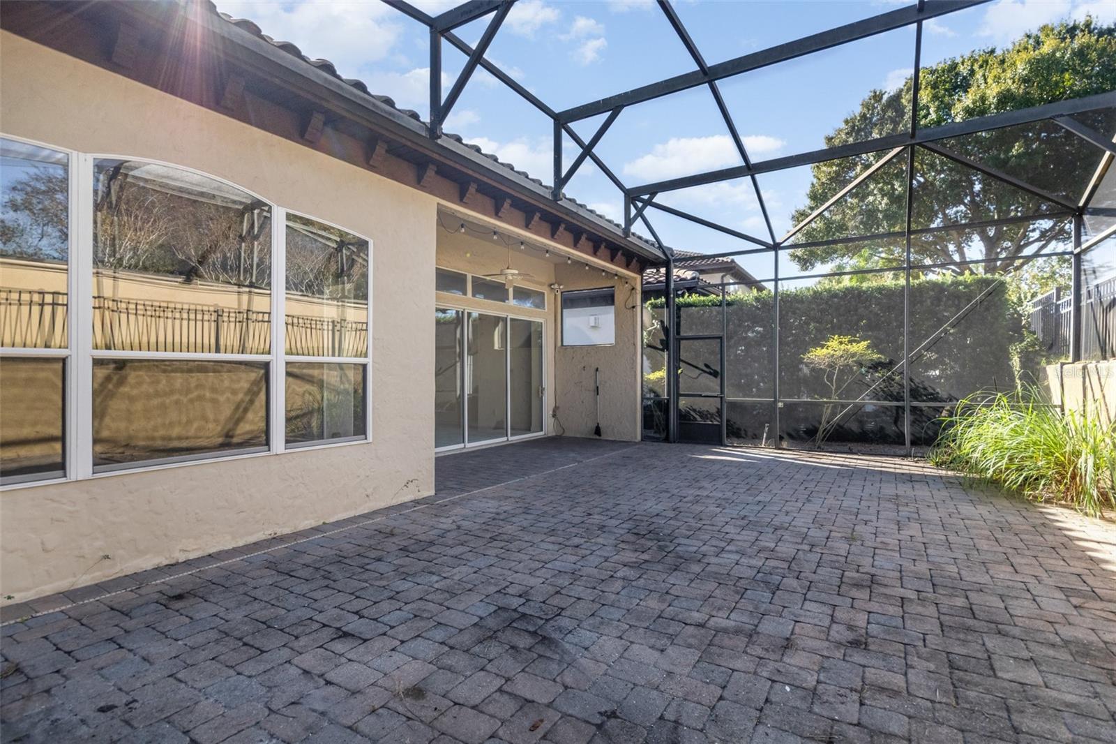 Welcome to this stunning Mediterranean style home located in the prestigious guard-gated community of Mirabella at Vizcaya. With 4 bedrooms and 3 bathrooms, this exquisite property offers an ideal blend of luxury, comfort, and convenience. As you arrive, a charming paver driveway and walkway lead you to the covered front entry. Step into the elegant foyer, which provides access to both the gourmet kitchen and the inviting living area. The kitchen is a chef’s dream, featuring granite countertops, ample cabinetry, a stylish tile backsplash, stainless steel appliances, a center island with a butcher block top and built-in wine rack, and a large pantry. The open-concept layout seamlessly connects the kitchen to the spacious great room, which boasts plenty of room for both a formal dining area and a cozy living room with a stunning stone-front gas fireplace. Sliding glass doors from the living room open onto the paver lanai, which includes an extended and screened paver patio—perfect for outdoor entertaining or simply relaxing. The primary bedroom, conveniently located on the first floor, features a sliding glass door that leads to the lanai. The en-suite bathroom is a luxurious retreat, offering dual vanities, a walk in closet, a jetted tub, and a walk-in shower. A full bath, a utility room, and access to the oversized two-car garage complete the first floor. Upstairs, you will find the additional bedrooms and baths. The vibrant community of Vizcaya is known for its friendly neighbors and active lifestyle, with residents frequently out and about enjoying the neighborhood. You will be within walking distance to Restaurant Row, where plenty of shopping and dining options await. Additionally, the property is conveniently located near I-4, Disney, Universal, Sea World, Orlando International Airport, and downtown Orlando, making it an ideal location for both work and play.