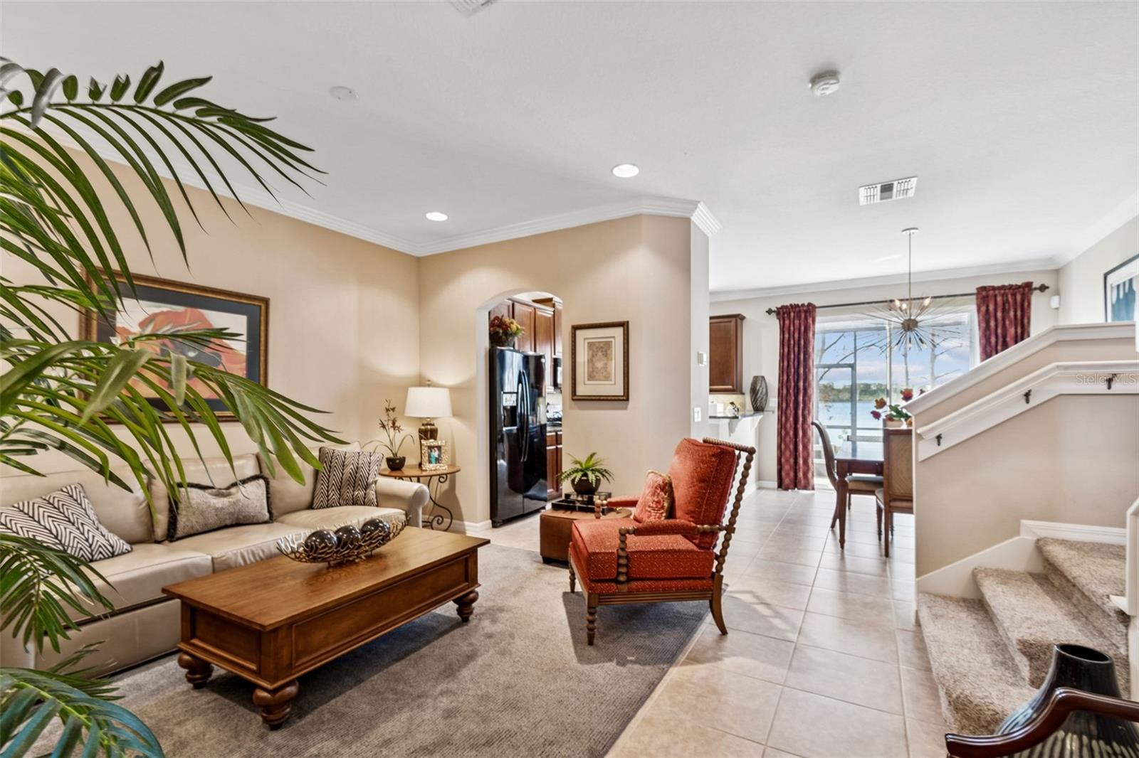Luxury Lakefront Townhome with Iconic Disney Fireworks Views Set within Grandview Isles, an exclusive enclave of just 54 luxury townhomes, this lakefront residence offers a truly rare setting directly across from Disney. Positioned on the shores of a private 100-acre lake, the home enjoys spectacular nightly views of the Magic Kingdom fireworks, with the Grand Cypress Golf Course just beyond—an unmatched combination of scenery, privacy, and prestige rarely found in Central Florida. The thoughtfully designed three-bedroom, two-and-a-half-bath townhome features an open-concept first floor that seamlessly connects the kitchen, dining, and family room—ideal for both everyday living and elegant entertaining. The kitchen is appointed with granite countertops, a breakfast bar, 42-inch wood cabinetry, and under-cabinet lighting, while crown molding, window treatments throughout, and surround sound wiring elevate the interior finish. A separate laundry room adds convenience and functionality. The living area opens directly to a private patio overlooking the lake, creating a front-row seat for sunsets, tranquil water views, and Disney’s fireworks display each evening. Upstairs, the primary suite offers a walk-in closet and a spa-inspired en-suite bath with dual sinks, a soaking tub, and a separate shower. Two additional bedrooms provide flexibility for guests, a home office, or additional living space. Additional highlights include an attached one-car garage and access to this cul-de-sac, lakefront community, complete with docks for fishing, kayak launching, and waterfront enjoyment. Ideally located across from Disney and minutes from shopping, dining, theme parks, and downtown Orlando, this home delivers a distinctive blend of luxury living, iconic views, and exceptional location. A rare opportunity to own a lakefront townhome where luxury, location, and Disney magic converge.