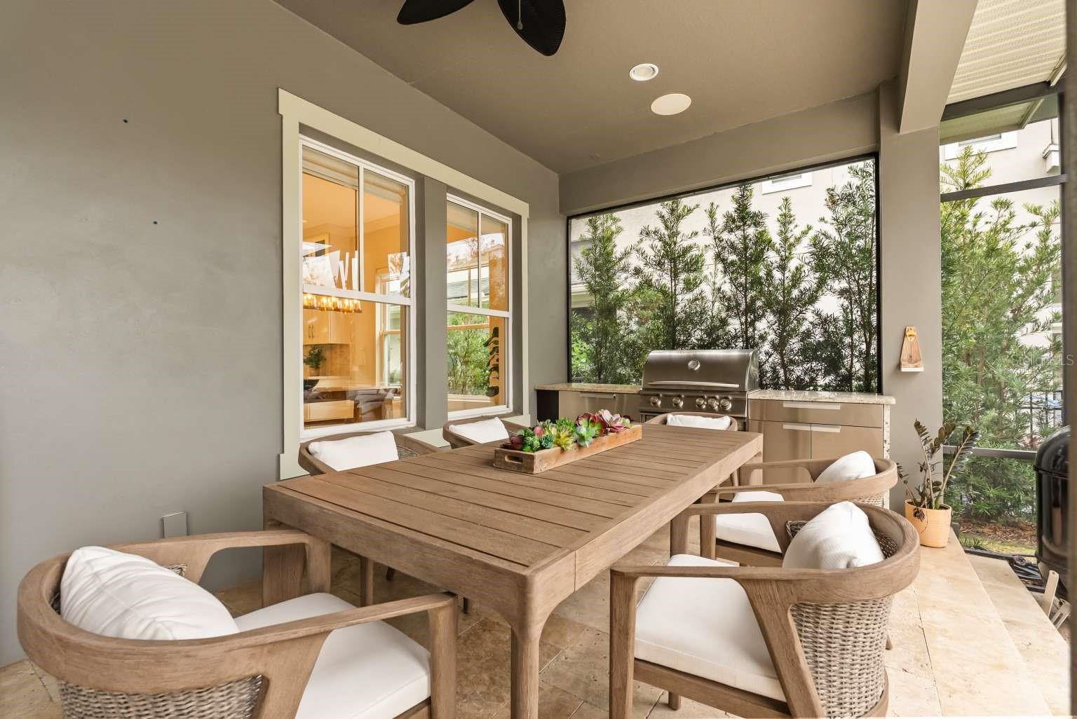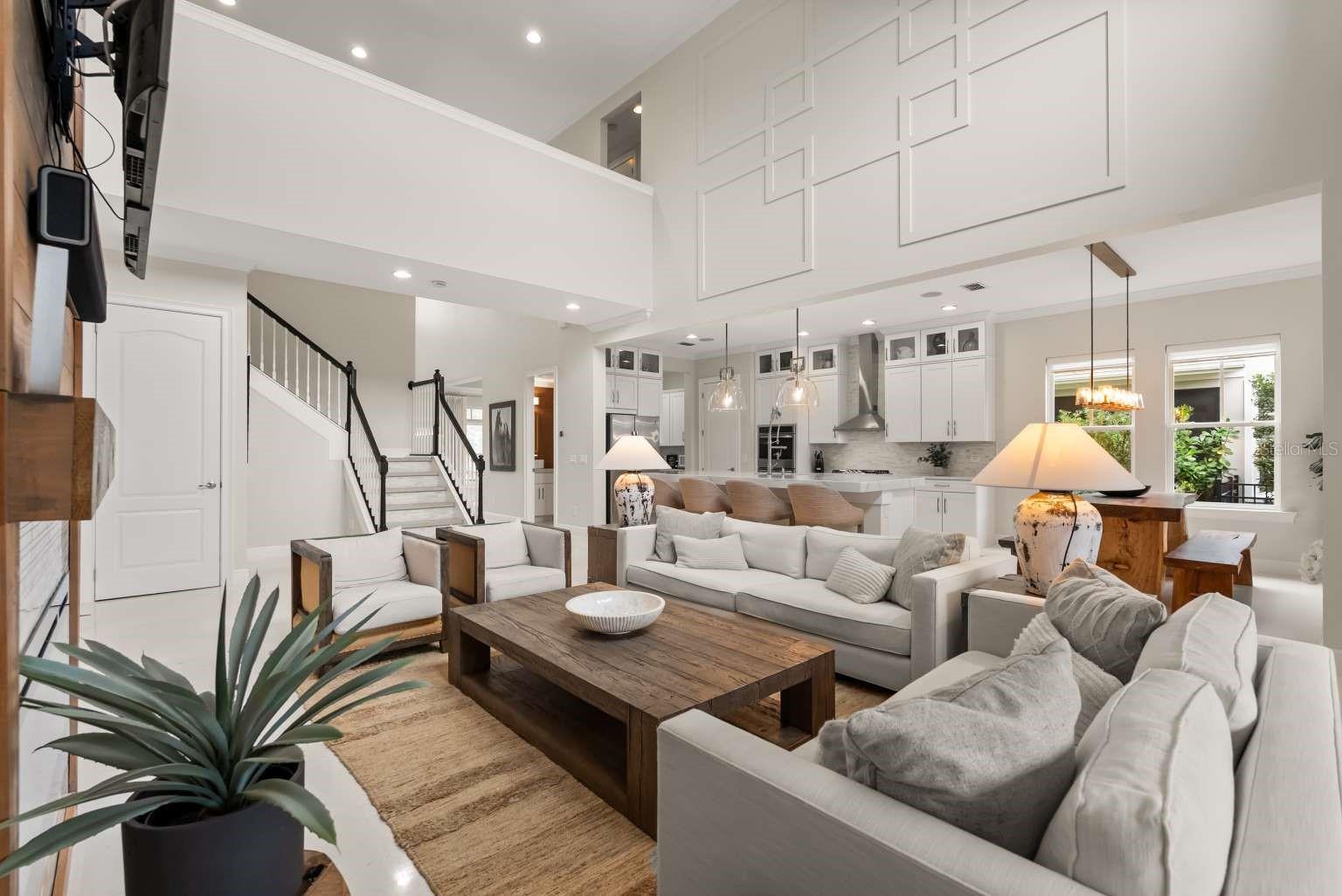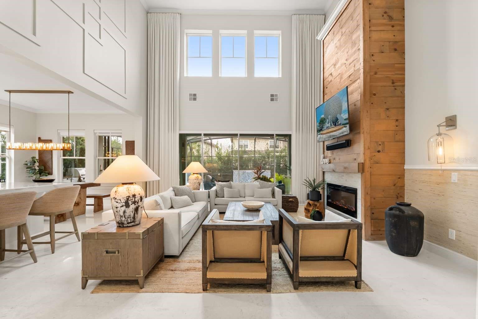 Welcome to this well-maintained 3,995 square foot residence located in the highly sought-after Laureate Park in Lake Nona, situated on a quiet cul-de-sac. This thoughtfully designed home offers 4 bedrooms, 3.5 bathrooms, a dedicated office, and multiple flexible living spaces, ideal for both everyday living and entertaining. The main level features high-end limestone flooring, adding a sense of luxury and elegance throughout the primary living areas. The open-concept kitchen flows seamlessly into the main living and dining spaces and is complemented by designer Restoration Hardware light fixtures, enhancing the home’s refined aesthetic. The main-level primary suite includes two walk-in closets and an en-suite bath with a large walk-in shower featuring dual shower heads. Upstairs, the home offers additional bedrooms, a second living area, and a versatile loft space that connects to one of the bedrooms and overlooks the office below; ideal for a home office, sitting area, or creative space. Manufactured hardwood flooring runs throughout the upper level. The backyard offers a private pool and spa, providing a relaxing retreat and an ideal setting for outdoor entertaining. The cul-de-sac location offers added privacy and minimal traffic. Conveniently located near Medical City, top-rated schools, shopping, dining, major highways, and Orlando International Airport, with access to Lake Nona’s trails, parks, and community amenities.