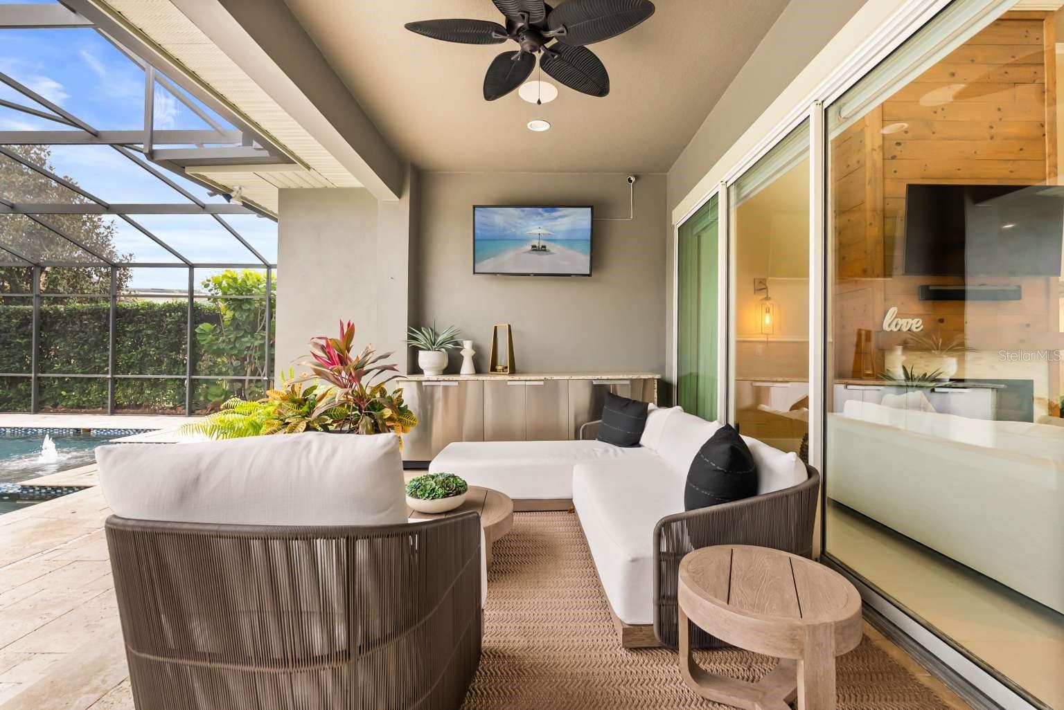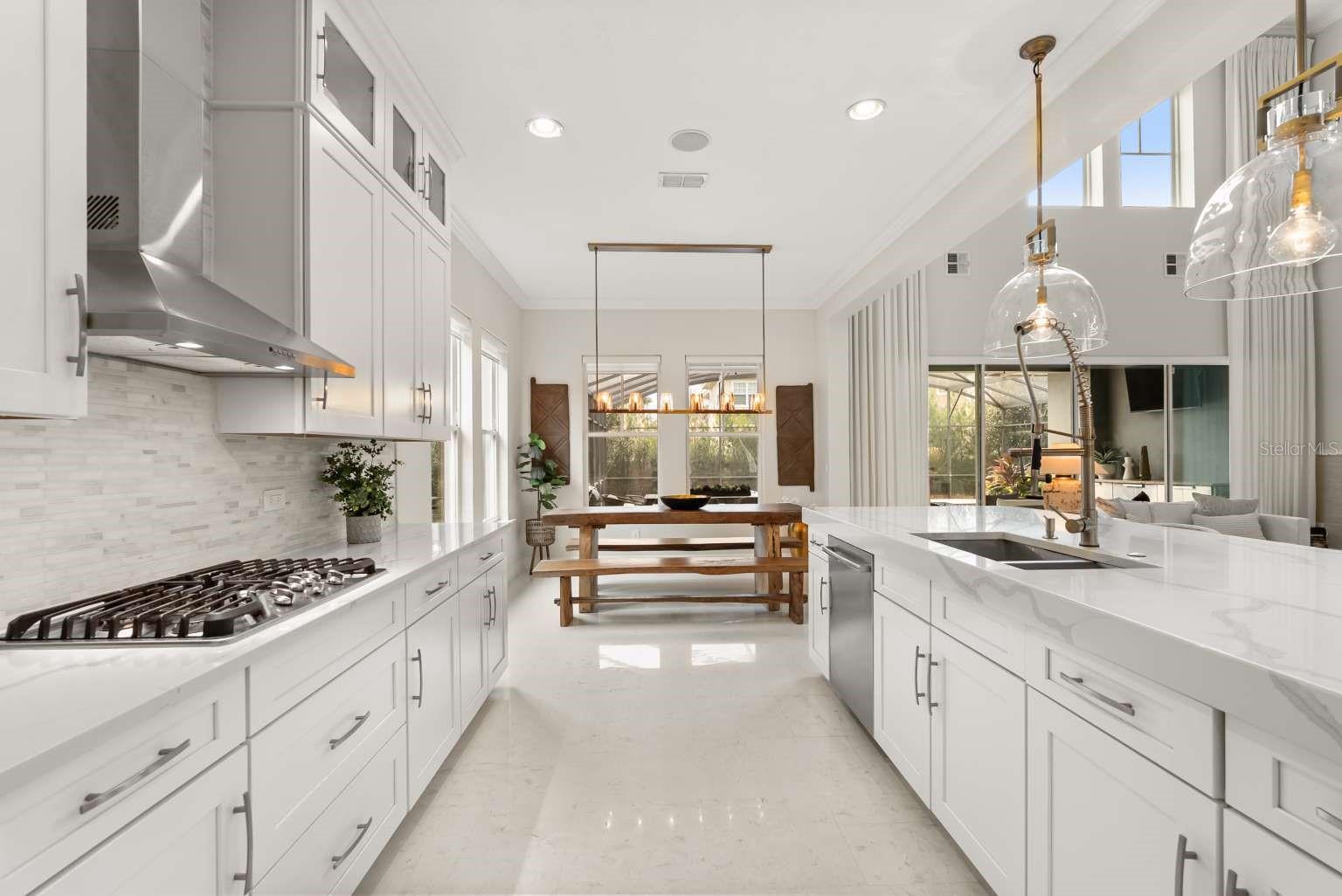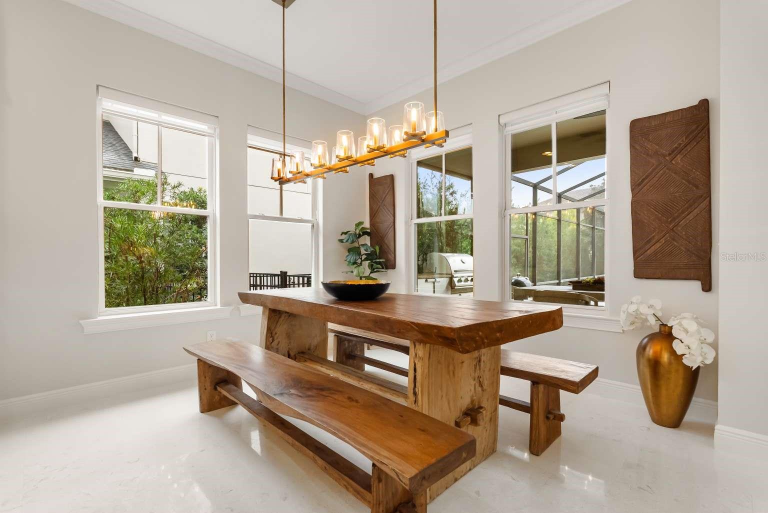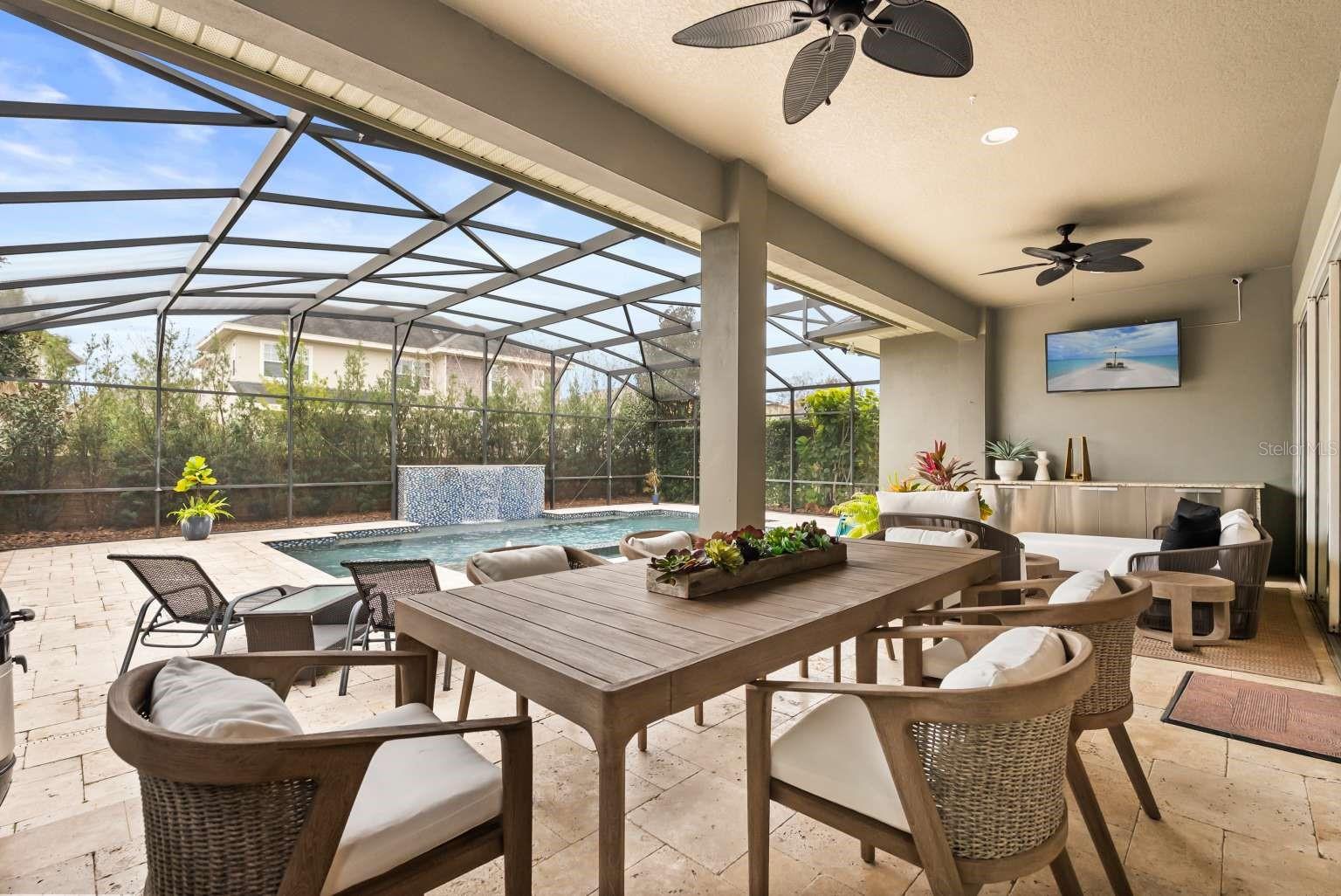 Welcome to this well-maintained 3,995 square foot residence located in the highly sought-after Laureate Park in Lake Nona, situated on a quiet cul-de-sac. This thoughtfully designed home offers 4 bedrooms, 3.5 bathrooms, a dedicated office, and multiple flexible living spaces, ideal for both everyday living and entertaining. The main level features high-end limestone flooring, adding a sense of luxury and elegance throughout the primary living areas. The open-concept kitchen flows seamlessly into the main living and dining spaces and is complemented by designer Restoration Hardware light fixtures, enhancing the home’s refined aesthetic. The main-level primary suite includes two walk-in closets and an en-suite bath with a large walk-in shower featuring dual shower heads. Upstairs, the home offers additional bedrooms, a second living area, and a versatile loft space that connects to one of the bedrooms and overlooks the office below; ideal for a home office, sitting area, or creative space. Manufactured hardwood flooring runs throughout the upper level. The backyard offers a private pool and spa, providing a relaxing retreat and an ideal setting for outdoor entertaining. The cul-de-sac location offers added privacy and minimal traffic. Conveniently located near Medical City, top-rated schools, shopping, dining, major highways, and Orlando International Airport, with access to Lake Nona’s trails, parks, and community amenities.