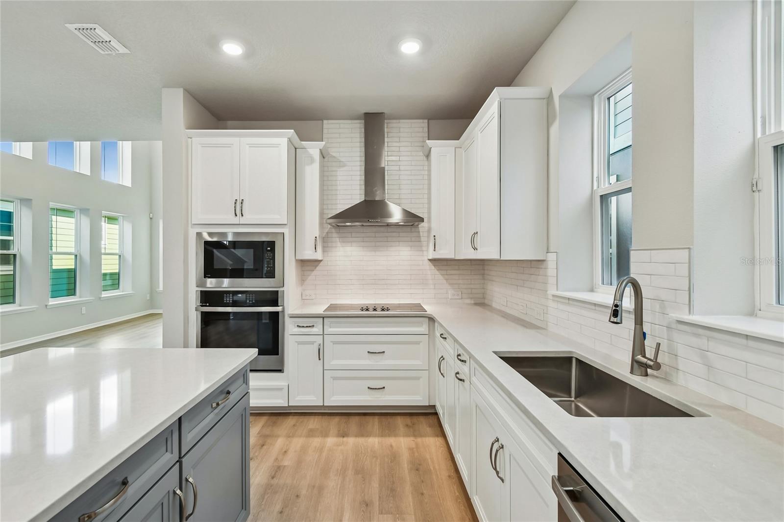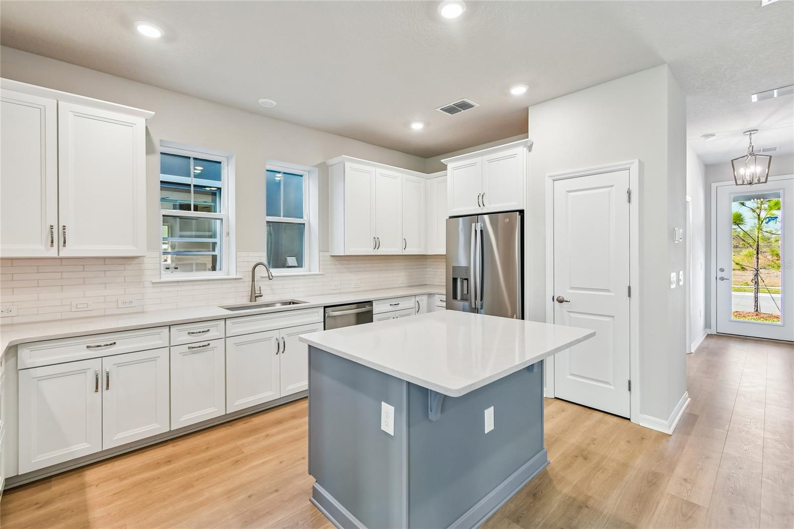 Award Winning David Weekley’ Homes signature craftsmanship is evident throughout our Kahneman II plan. Fulfill your lifestyle dreams in the vibrant and innovative new home plan. A tasteful kitchen rests at the heart of this home, balancing impressive style with easy function, all while maintaining an open design that flows throughout the main level. Elegant cabinetry, a decorative tile backsplash, and quartz countertops complete the space, ensuring both style and functionality. Your open concept living spaces present a distinguished first impression from the front door and offer superb comforts for quiet evenings together. The covered front porch and lanai provide extraordinary places to welcome guests, relax, and achieve your hosting and productivity goals. Your Owner’s Retreat includes a sleek en suite bathroom and a walk-in closet to make it easy to rest and refresh in luxury. Two junior bedrooms are situated on the second floor, presenting ample privacy for growing residents. Come together for movies and games in the upstairs retreat, which is open to the family room thanks to a soaring ceiling that spans both levels. The interior “Coastline” draws inspiration from soft sandy tones, weathered whites, and hues of soft blue. In Laureate Park, you'll enjoy the best in Design, Choice, and Service from a trusted Orlando home builder, as well as pocket parks and playgrounds, state-of-the-art fitness center, sparkling community pools, and more than 40 miles of serene hike and bike trails.