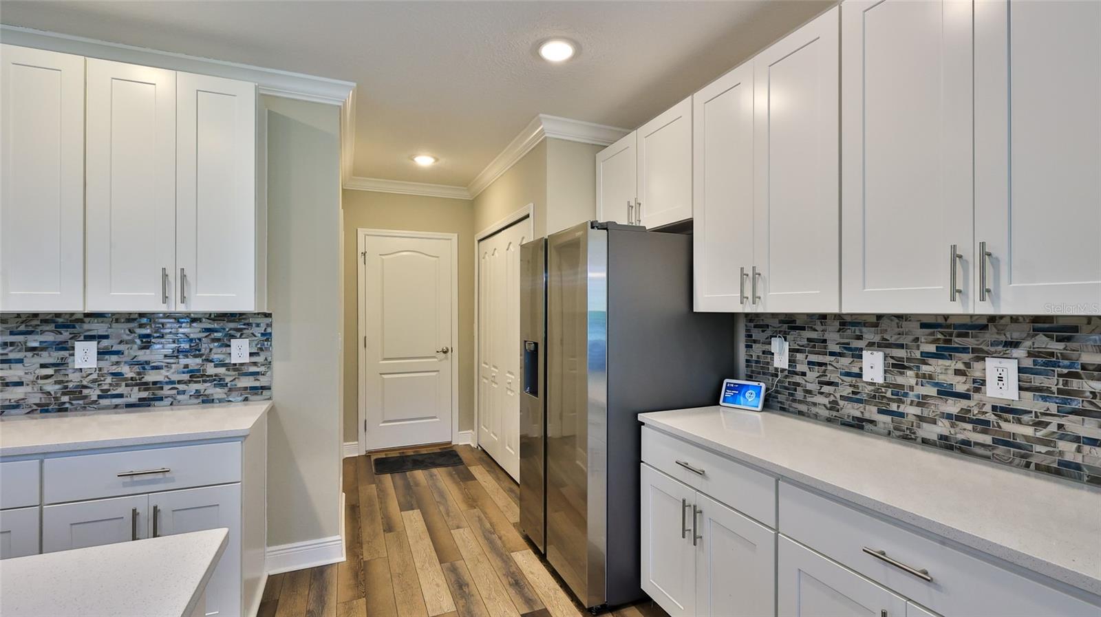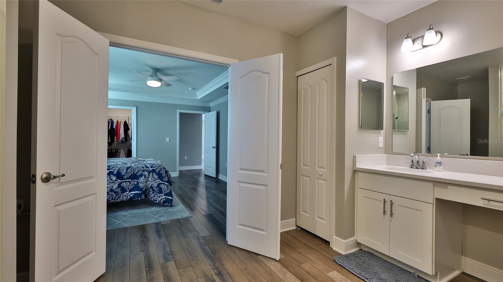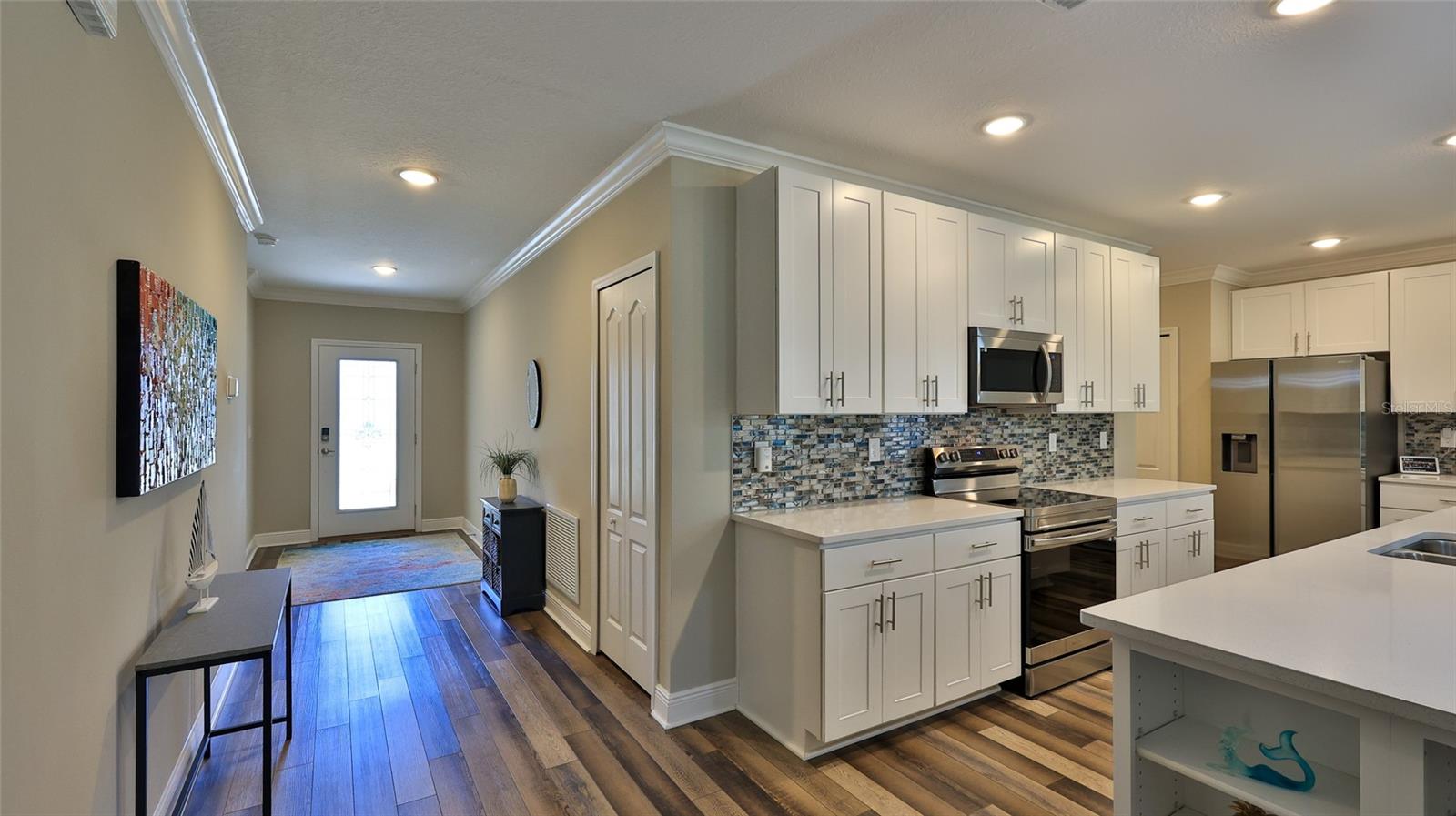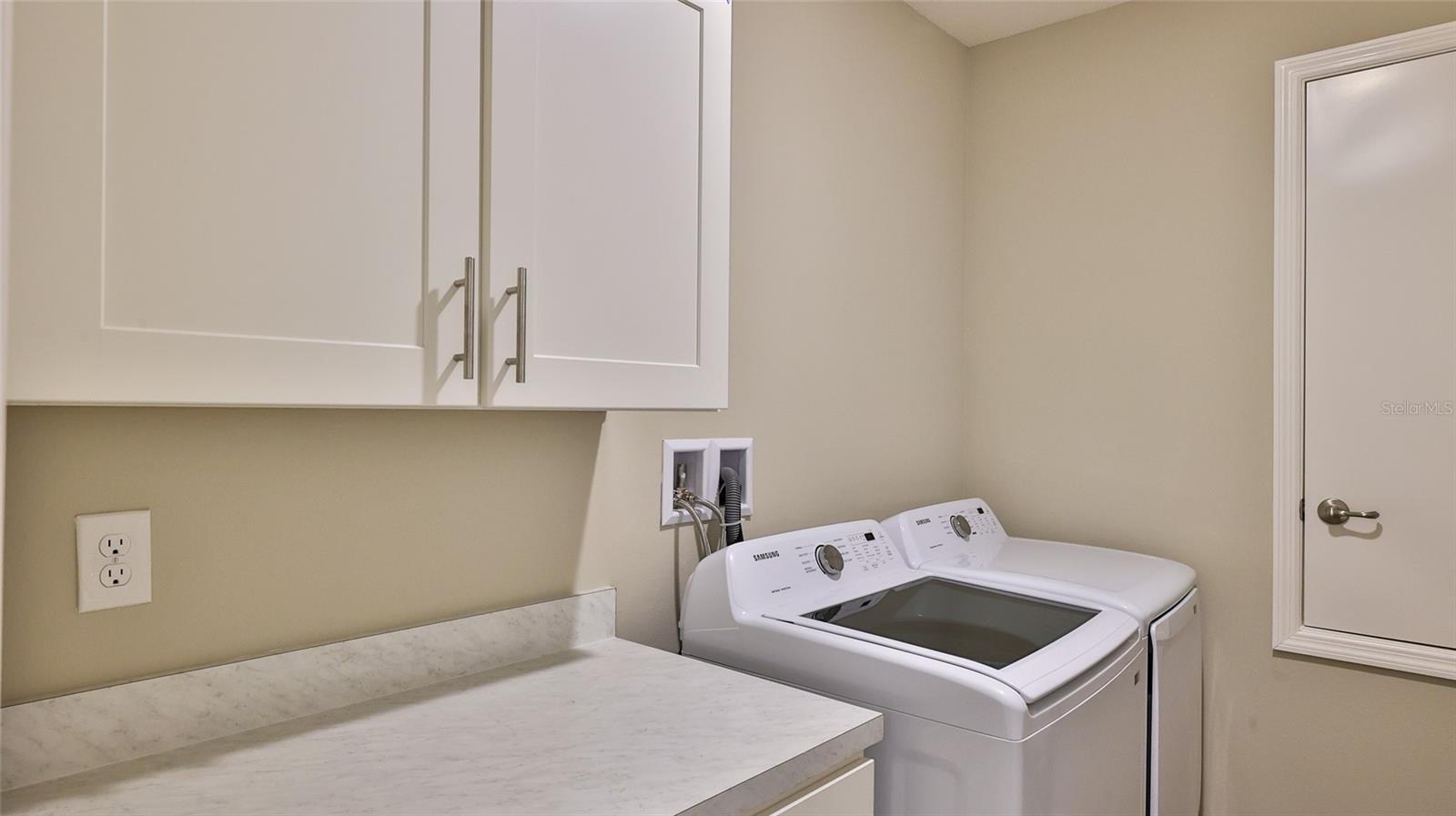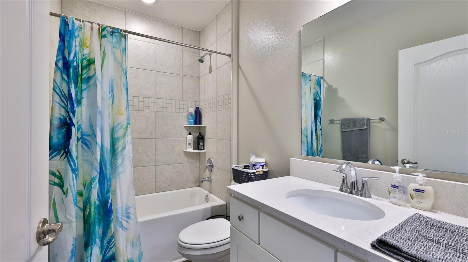 Maintenance free living in the 55+ community of Huntington Green at Hunter's Ridge. This home was finished in late 2022 and features 3 bedrooms, 2 baths, kitchen with large center island overlooking great room and dining area. Other upgrades including deluxe kitchen cabinetry, quartz counters, Samsung stainless appliances, crown molding, designer vinyl flooring throughout, ceiling fans and blinds on all windows. Large primary suite with walk in closet and primary bath with tile flooring, double vanity, large shower with 3 shower heads, glass doors. Bonus/flex room and screened porch overlook large back yard with views of lake. Two car garage. Huntington Green also has a private pool and club house with fitness plus owners can use two other clubhouses in Hunter's Ridge Community. Main and Sub HOA fees total $352 / month.