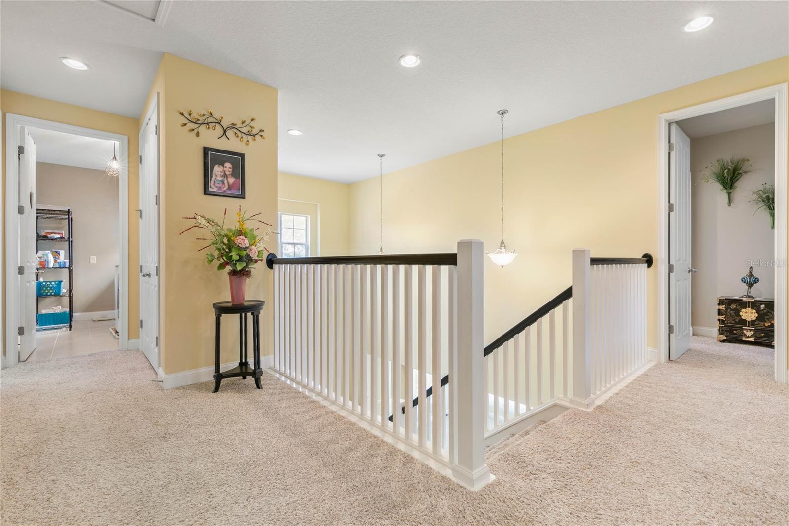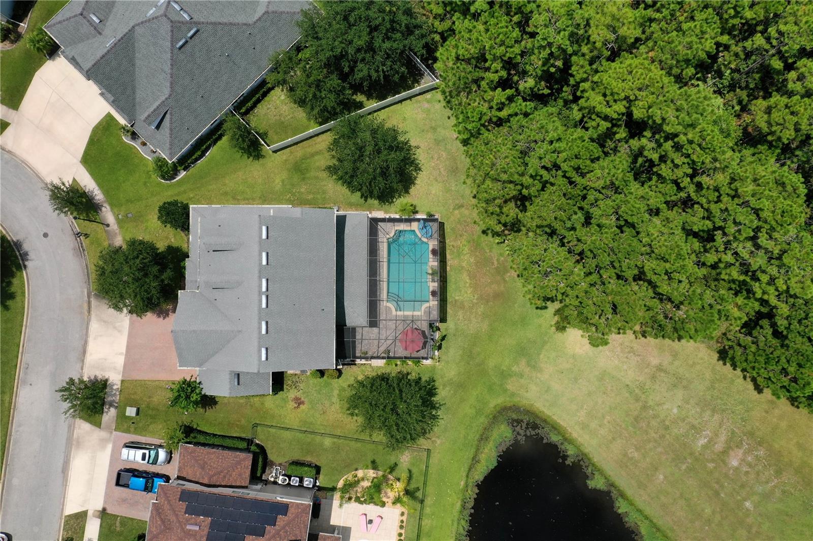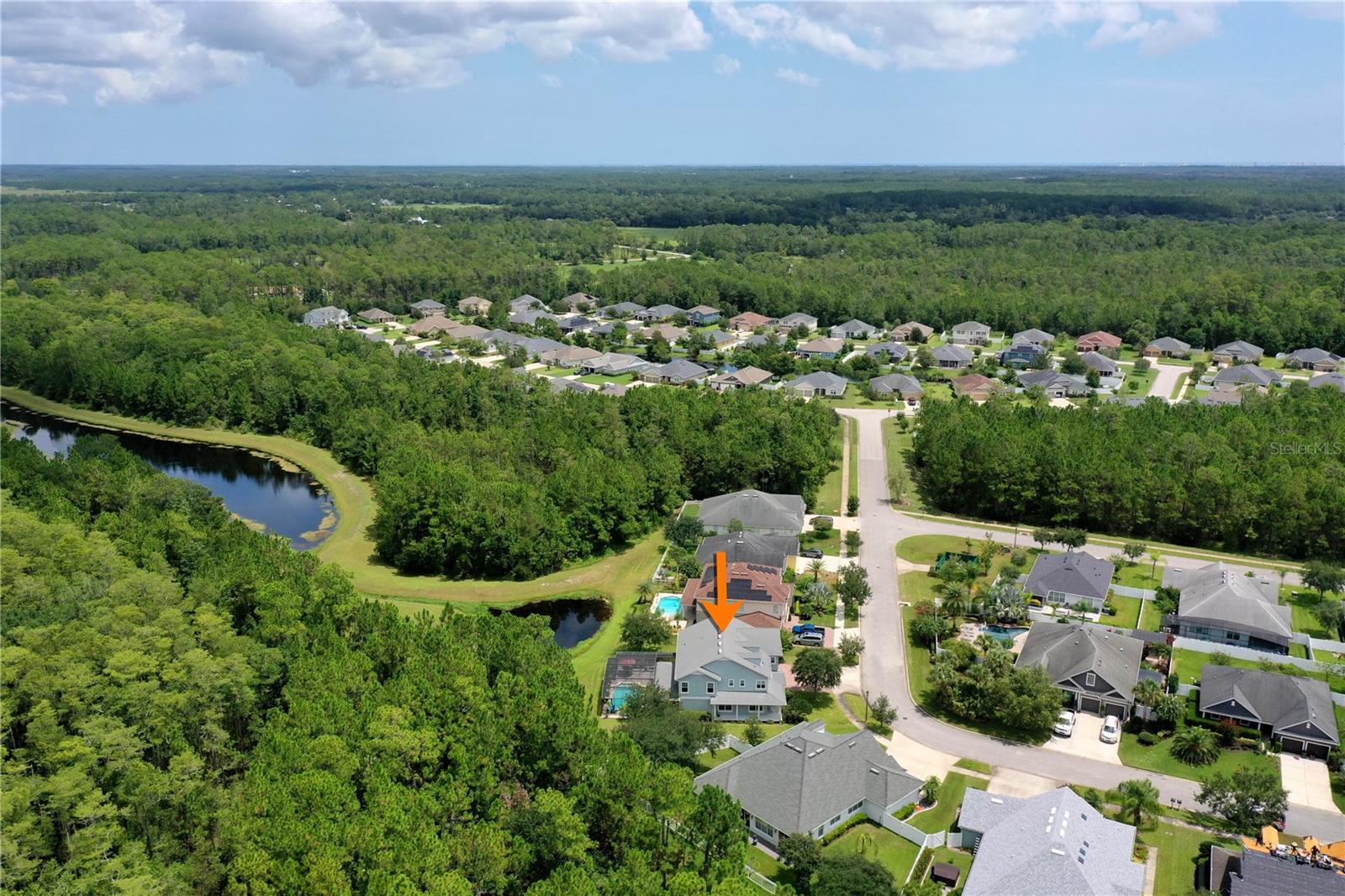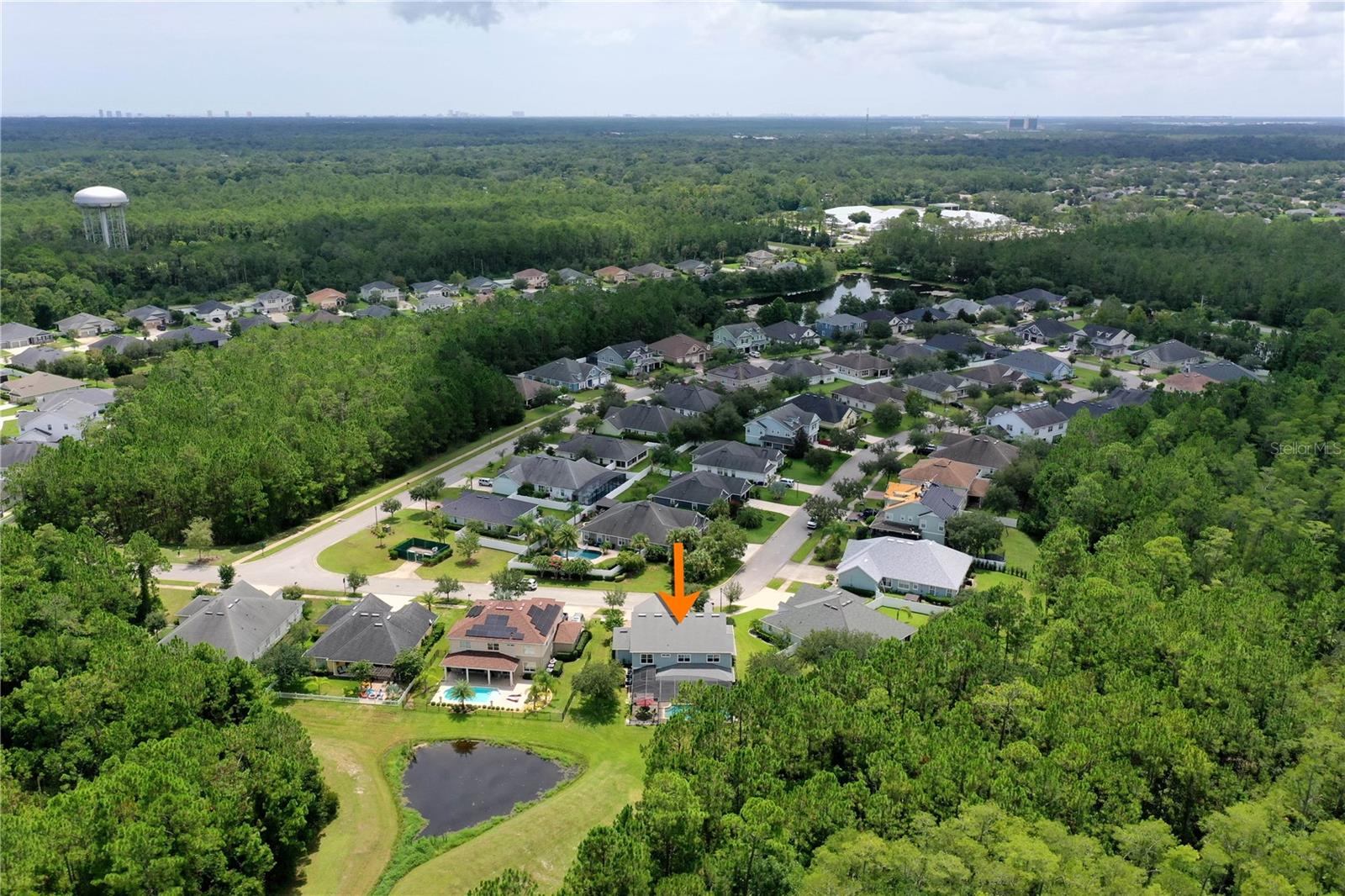 Welcome to this beautifully maintained 4-bedroom, 2.5-bathroom, 3-car garage home in the prestigious Deer Creek subdivision of Hunters Ridge! Nestled on a premium lot with unobstructed views of a serene lake, pond, and wooded reserve, this property offers unparalleled privacy and tranquility, perfect for relaxing by your pool. Upon arrival, you'll be impressed by the underground utilities, lush landscaping, and the charming paver driveway and walkway. The spacious wraparound front porch adds to the home's inviting curb appeal. Inside, this 3,327 sq ft Martha Stewart Signature Home features a spacious floor plan with 8' doors and 9' ceilings adorned with crown molding. Natural light floods the home through numerous windows and sliders. The expansive formal dining room flows seamlessly into the large family room, both of which have new LVP flooring that leads you to the covered lanai and pool area. The island kitchen is a chef's delight, boasting a cooktop, double wall oven, new refrigerator and dishwasher, granite countertops, 42” Merillat cabinets with crown and light rail moldings, a decorative glass backsplash, and a massive walk-in pantry. Adjacent to the kitchen is a cozy dinette area. Additionally, a convenient mud room off the garage and a half bath enhance the home's functionality. Upstairs, a loft with a pool table (included) provides a fun space for recreation. The primary suite is a luxurious retreat with a walk-in closet, two linen closets, and an all-tile bathroom featuring a double vanity with granite tops and a separate tub and shower. Three generously sized guest rooms share a well-appointed full guest bath with a granite-topped vanity and a shower/tub combo. The upstairs laundry room, complete with a washer and dryer, cabinets, and a folding area, adds to the home's convenience. Step outside through either set of sliders to enjoy breathtaking views of the lake, pond, and wooded reserve from the expansive paver lanai. This outdoor oasis is perfect for entertaining, with both covered and open areas ideal for grilling, sunbathing, or simply relaxing. The lanai is fully screened with a brand-new installation in 2023, ensuring a bug-free environment. The partially fenced yard remains lush year-round, thanks to an irrigation system using reclaimed water. Additional features of this meticulously maintained home include a 3-car garage with custom shelving and a utility sink, hurricane shutters for the double-pane windows, two new AC's in March of 2025, new gutters, a security system, built-in surround sound in the family room, ceiling fans in every room, decorative chair rail, plantation shutters upstairs, 5 1/4” baseboards, and more. Don't miss the opportunity to see this stunning home in Hunters Ridge and its amenities such as; clubhouse, two pools, tennis courts, basketball court, baseball field, soccer field, parks, a fishing pier and canoe launch. Schedule your visit today and experience the perfect blend of luxury, comfort, and natural beauty. Make sure to watch the virtual tour which is a walkthrough video and then schedule a showing today!
