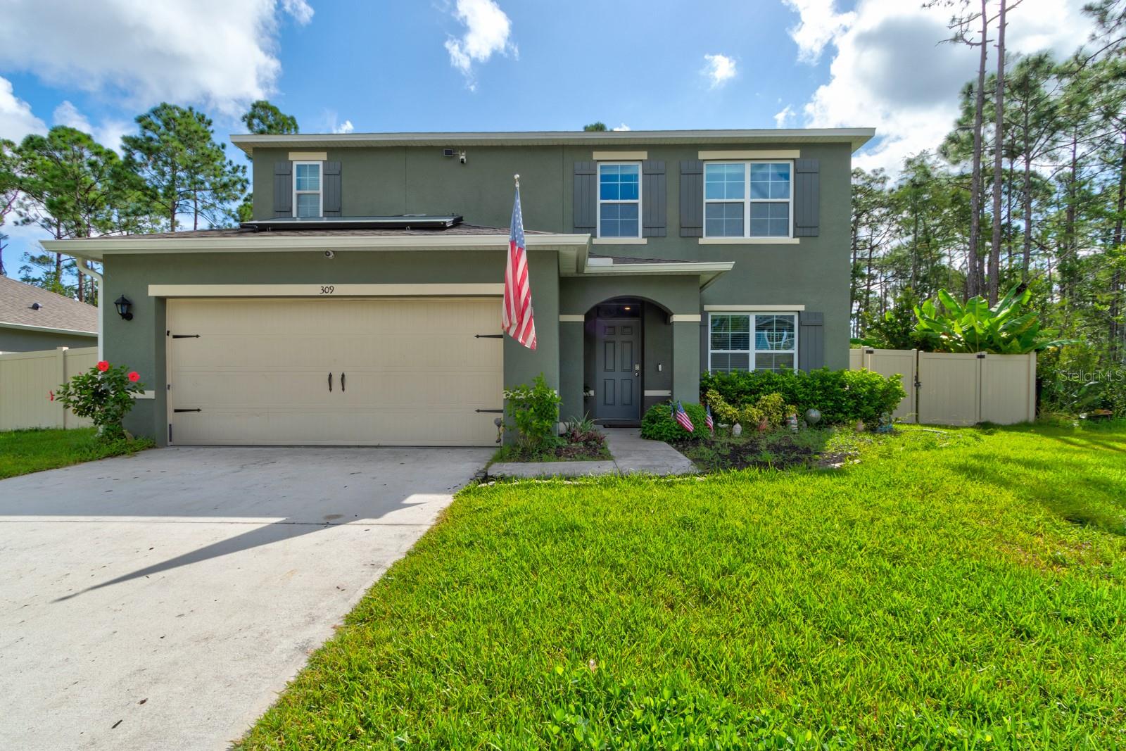 Rare Find in the Pineland Subdivision! This 5-bedroom Smart Home, constructed in 2020 by DR Horton, features the popular ELLE Floor Plan and offers a $10,000 credit to buyers at closing. Enjoy the remainder of the 10-year transferable builder warranty. The 1st floor includes a main suite and additional flex space, while the open-concept design showcases granite countertops. Upstairs, you'll find a spacious family room, 4 bedrooms, and 2 full baths. The unique double lot sits on the edge of a preserve, providing a private fenced backyard with a large paver patio. Built to withstand severe storms, this home is also in a non-flood zone. The seller has added solar panels and a solar-powered water heater to reduce energy bills. Conveniently located in the heart of the Pineland neighborhood, it’s close to schools, minutes from shopping, dining, and just 15 minutes to the beach. Neighborhood amenities include a resort-style pool, and you have the option to join the nearby golf course with additional perks.