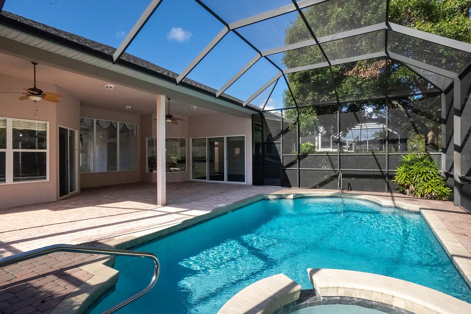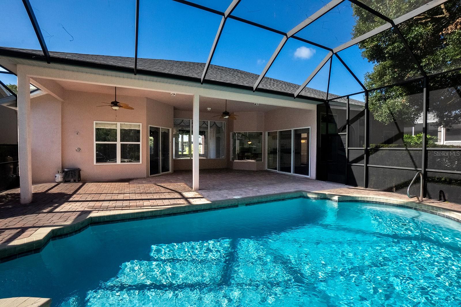 Great popular open floor plan this ICI Preakness 4 bed/3 bathroom family pool home is waiting on its new owners. House sits on a quiet cul-de-sac within a private golfing community backing up to a conservation area giving you lots of privacy. Enter through double glass doors to soaring ceilings and sight throughout the main parts of the home. Big windows in the living room give you wonderful views out over the lanai and pool area. Family room with gas fire place has sliding doors for easy access to the pool area. Kitchen has plenty of storage and a huge island. Eat in Nook with mitred windows lets plenty of light into the home. Master bedroom with large ensuite and separate wc also has a huge walk in closet. A further bedroom and bathroom completes this side of the house. There are a further 2 bedrooms and a bathroom on the other side of the house. The outside space is huge and is set up for entertaining or just hanging out. Two zoned a/c units to keep the home cool, water filtration system, 2 car garage, generator, hot water heater 1 year old, roof 2 years old and pool resurfaced 2 years ago. Plantation Bay offers 45 holes of golf, 2 clubhouses, swimming pool, lighted tennis courts, pickleball courts and state of the art fitness center. There are many different levels of membership available.