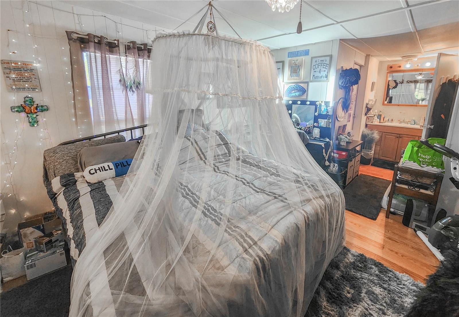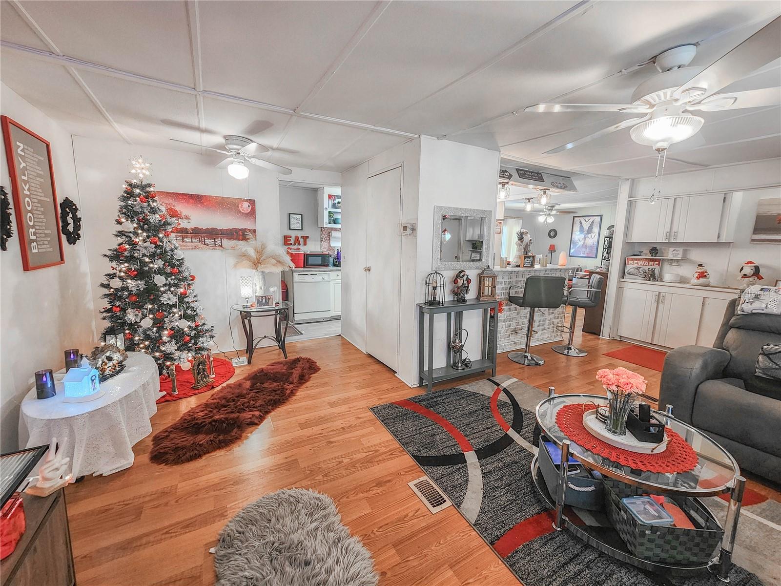 Peaceful. Private. Updated. Accessible. Light and bright. These are just some adjectives to describe this expansive property, which would be perfect for larger families, nature lovers, mechanics, woodworkers, gardeners, beach-goers, or those who want room for their toys. With a split floorplan and 1440 square feet of living space, this 4-bedroom, 2-bathroom home would be great for multi-generational living. There's a separate, detached room - 13' X 11', under electricity, with a private entrance - that would work as an additional bedroom, man-cave, office, or whatever your heart desires. Step into the spacious great room, complete with built-in shelving and a wet bar for entertaining. There's a dining room as well as a breakfast nook, an indoor laundry space, and ceiling fans in every room. All the floors are new, and it's newly painted. Let's talk about the outside: situated on a corner lot, this property sits across from an 83-acre preserve. Traffic noise is non-existent; birds are a-plenty. The sellers say it's the most peaceful night's sleep they've ever had. The brand-new, graveled firepit with solar lights is ideal for starry-night gatherings, and the brand-new, weather- and pressure-treated, stained-wood fence keeps your gatherings private. There are two accessibility ramps - one in the front and one in the back of the home - and two enclosed, screened-in porches - one in the front, and one in the back. There are two storage areas, as well as a workshop, for those who like to tinker or build or fix things or garden. The covered carport accommodates two cars, and the separate two-car driveway accommodates an RV, boat, camper, or your other toys. This home comes complete with security cameras inside and outside, exterior motion-sensor lighting, and hurricane shutters. The metal roof is brand new (2024), and the plumbing is all new. The sellers describe the neighbors as kind, helpful and peaceful, much like the neighborhood. Away from the noise of traffic, this home is still only 10 minutes to the heart of downtown Ormond on Granada, 8 minutes to The Trails shopping center, and 10 minutes to the beautiful beaches of Ormond Beach. This is a property that provides endless possibilities, but, more importantly, a home that provides peace, comfort and tranquility.