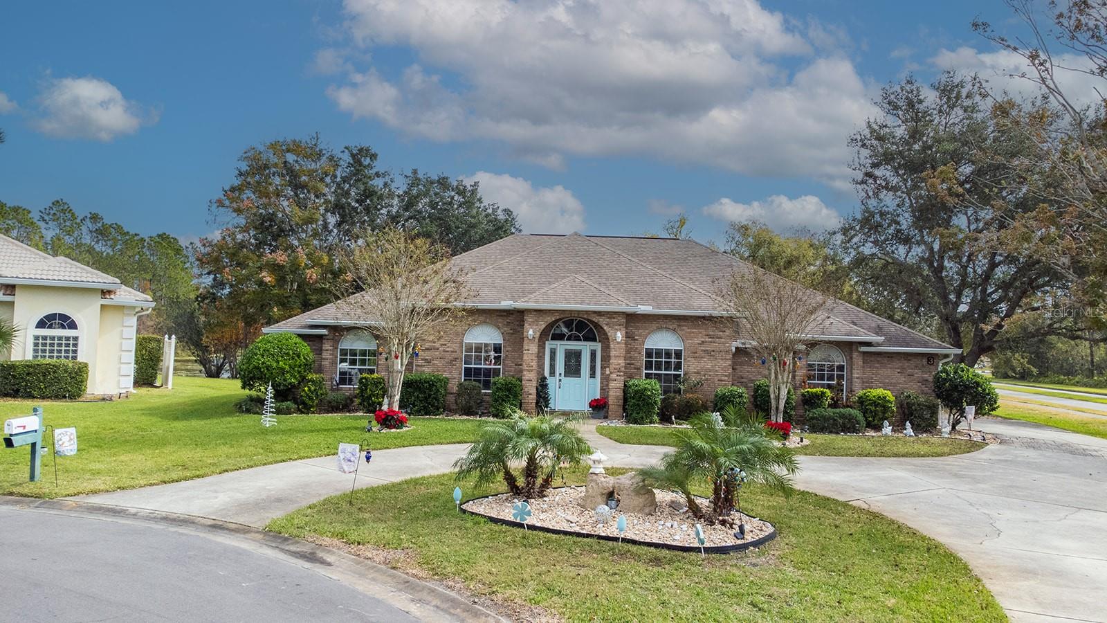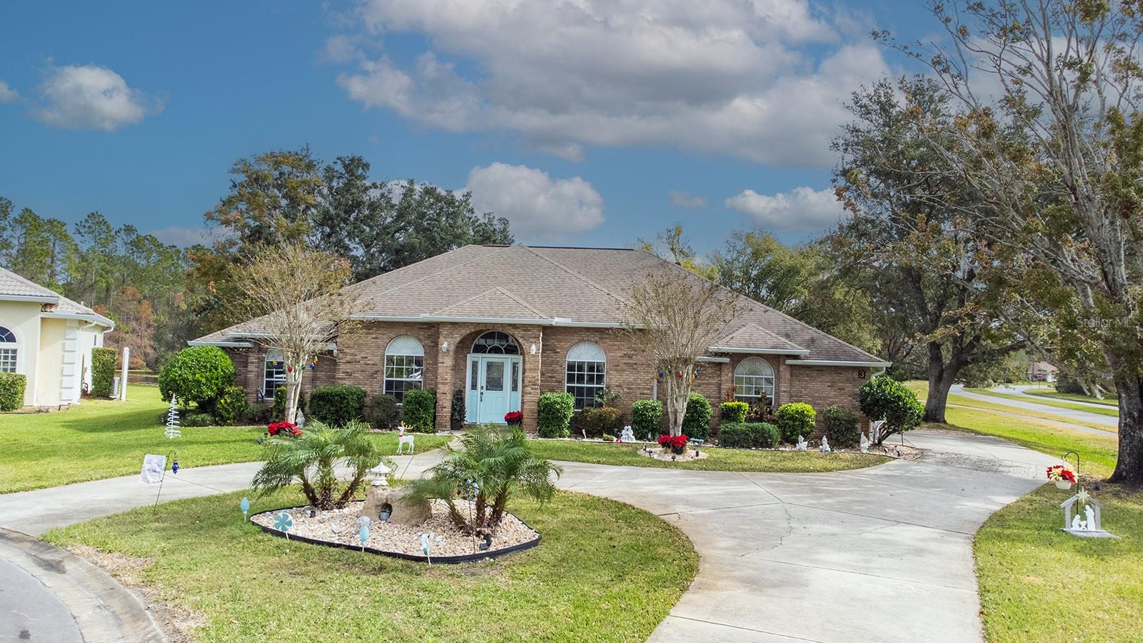 Set in a quiet cul de sac with privacy at the back overlooking a pond this brick-built house awaits its new family. Great curb appeal with circular driveway and side entry garage. Enter the house through the front glass etched door to soaring ceilings and sight out the back to the pool and pond. The Great/family room is huge with a separate dining room to the right and entry to the kitchen. The kitchen has lots of storage and has stainless steel appliances (2022). New faucet and water softener (2022). Laundry room off kitchen has stainless steel top loading washer and dryer. Again, lots of storage and a sink. Primary bedroom has entry through double doors and also has French doors out to the pool. Primary bathroom has double vanities, separate walk-in shower and jetted tub. Split plan with the other 2 bedrooms on other side of the house - both have lots of storage - and full bathroom. Outside the pool overlooks the pond and has lots of space for entertaining. There is also a convenient half bath and outside shower. Or what about just chilling out at the pond where there is a firepit and extra seating. House has lots of upgrades - New windows throughout the house except the front of the house with Lifetime warranty (2022), all new carpet (2022), ceiling fans (2022), Insulation in the attic (Orkin 2022), French doors and new front door (2022), resurfaced pool (2020), Painted inside (2022), Patio updated and painted (2024), Plantation Shutters (2022), all new window screens (2022), solar heat panels for pool (2022), multi speed pool pump (2022), child safety fence, etc. - too many upgrades to mention. House also has gutters with leaf guard, central vac and an irrigation system which reclaims water from the pond. Chandelier in dining room and foyer do not convey with the sale of the house.