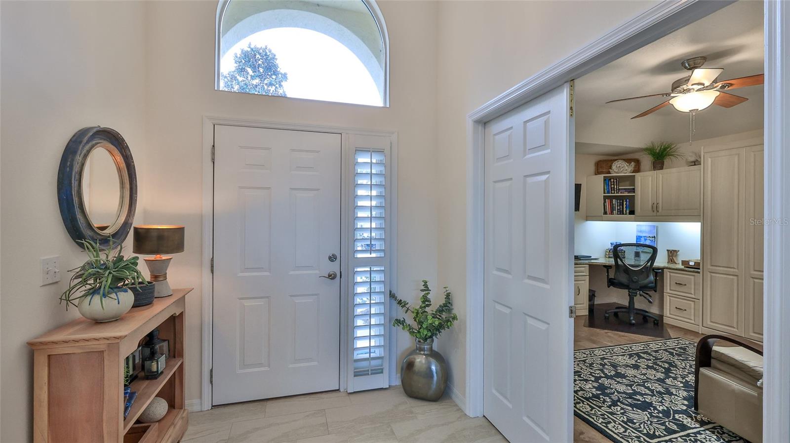 This BEAUTIFULLY updated 3BR 2BA pool home shows like new. This IMMACULATE home is located in highly desirable Plantation Bay Golf community with views of Prestwick Golf Course and Prestwick Park. The 3rd BR/Den features a built-in desk, closet and Murphy Bed. Two full baths have been beautifully updated. Home upgrades include wood floors throughout, plantation shutters, and remodeled kitchen with lovely wood cabinetry, stainless appliances, and quartz counters. The Great Room features French doors with transom windows for a light and bright room overlooking the perfectly sized pool. Home features a side entry garage. New roof in 2022, A/C 2024, water heater 2015. Home was painted recently, and mechanical systems have been well maintained. Home is convenient to park, golf course and US1 entrance to Plantation Bay. While membership is optional, Club features 45 holes of golf, fabulous new clubhouse with restaurants, indoor & outdoor dining, fitness center, tennis, pickleball.