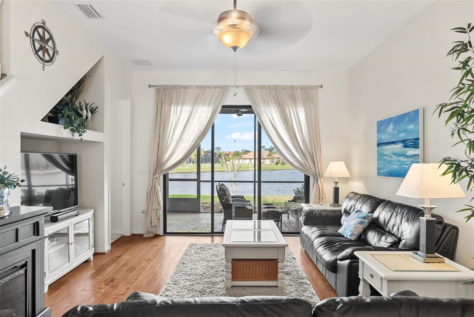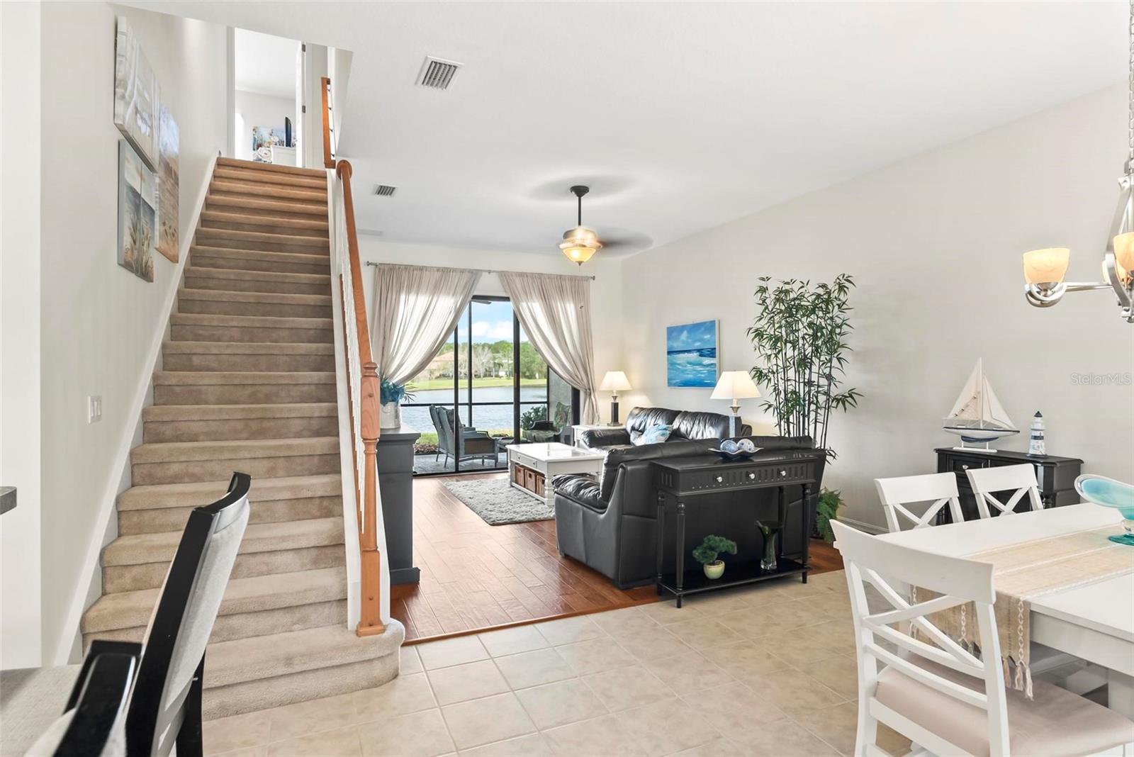 Located in the tranquil golf community of Plantation Bay, this beautiful , 2-bedroom, with den 3-bathroom townhouse is designed to impress. Enjoy serene dining experiences with picturesque views of the expansive lake just beyond your screened lanai. The breathtaking views continue into the first-floor owner's suite, which features a spacious walk-in closet, and a large ensuite bathroom. Your guests will relish their privacy in the second-floor bedroom and full bath, which also offers stunning water views. Additionally, the first floor includes an office/den, can accommodate extra guests. Recent updates include a new roof in 2022 and an A/C replacement in 2019. The exterior was freshly painted in 2023. Inside has been freshly painted in Living area, kitchen, dining room and primary bedroom. Whether you're seeking a primary residence or a vacation home, Plantation Bay offers something for everyone, While membership is optional, Plantation Bay features. Fully furnished. 45 holes of championship quality golf, a brand new state of the art clubhouse, Wellness Center with spa and fitness center, two pools, 10 lighted Har-Tru tennis courts, 10 pickleball courts, cabana restaurant, fire pit, and pier. The Club offers a variety of membership options. HOA includes Exterior painting, roof, lawn maintenance, pest control and common areas.