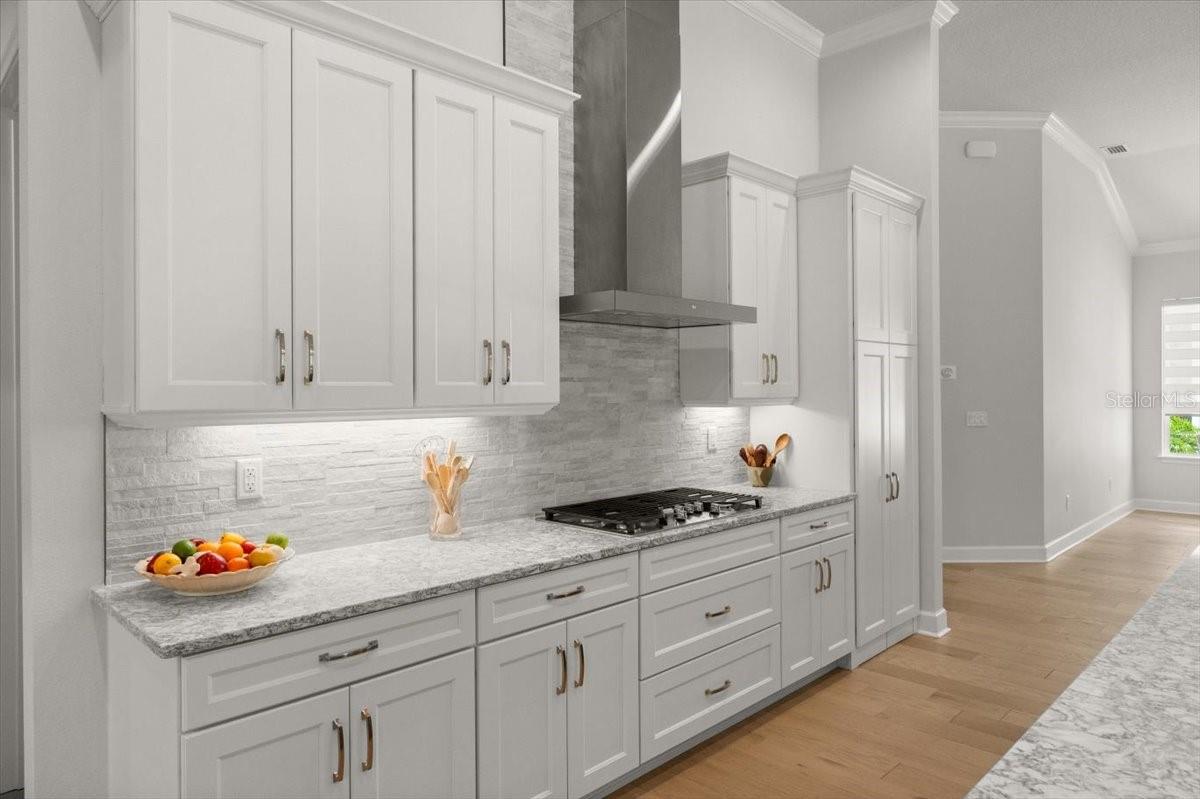 One or more photo(s) has been virtually staged. Welcome to 473 Stirling Bridge Dr, a stunning home that combines elegance and functionality in every detail. As you enter through the custom door with glass inserts, you're greeted by wood floors and soaring high ceilings that create a sense of grandeur. The family room is a perfect blend of comfort and style, featuring wood floors, tray ceiling with crown molding, & sliders that lead to a beautiful lanai. The formal dining room is an entertainer's dream, boasting wood floors, a casual crystal chandelier, and custom window treatments. The oversized kitchen is a chef's delight, equipped with a gas range, GE Profile stainless steel appliances, two-tone cabinetry, and 42-inch all-wood cabinets with soft-close features. The kitchen is further enhanced by a travertine stone backsplash and a quartz countertop island with a drop edge. Hidden pantry feature perfect for all your cooking needs. Retreat to the master bedroom, where upgraded carpeting and a tray ceiling complement the large windows showcasing a serene preserve view. The master bathroom offers a luxurious experience with a long quartz vanity, dual sinks, a walk-in shower with herringbone stone tile, and a walk-in closet with custom built-ins. Bedrooms 2 and 3 feature wood flooring, plantation shutters, and custom wood shelving, providing ample storage and natural light. Bathroom 2 is elegantly appointed with quartz countertops and custom tile work. The office/flex room, anchored at front of home, with its wood flooring and plantation shutters, offers a versatile space for work or relaxation. Bedroom 4 is it's own retreat with wood floors and right off Bathroom 3-finished with tile, walk-in shower and quartz countertop. Walk through your vanishing sliders to the travertine extended lanai pre-plumbed for an outdoor kitchen. The crystal blue, saltwater pool with a fountain accent and deep preserve view provides a tranquil escape, with plenty of room for pets to roam. The home also includes a three-car garage with epoxy floors, a hybrid hot water heater, and a convenient stop-and-drop area. Outdoors, enjoy lush landscaping with vibrant florals, a paver driveway and walkway. Optional memberships available varying from 45 holes of golf, 10 pickle ball courts, 10 tennis courts, brand new 30-million-dollar Founders Club, fitness/spa center, full fitness class calendar, resort style pool along with lap pool and cabana bar & Grill, additional Prestwick clubhouse, bocce ball, and so much more. Buyers of this home to receive a substantial discount on initiation fee at the club. Ask listing agent for details. This exquisite home is equipped with abundance of upgrades including a Google Nest thermostat, comfort height Kohler toilets throughout, wood floors throughout, soaring ceilings with crown molding, hardy board plank siding and metal roof accents for coastal elevation, Minka fans and custom light fixtures throughout, custom mirrors in bathrooms, custom herringbone tile through master bath shower, great natural light, widened driveway for convenience, preserve views across the street for natural surroundings, wood shelving throughout, plus much more! Experience the perfect blend of luxury and practicality in this coastal masterpiece. With its thoughtful design, modern amenities, and breathtaking surroundings, 473 Stirling Bridge Dr is more than just a home, it's a lifestyle. Seize the chance to own this exceptional property and create lasting memories in a setting that truly stands apart.