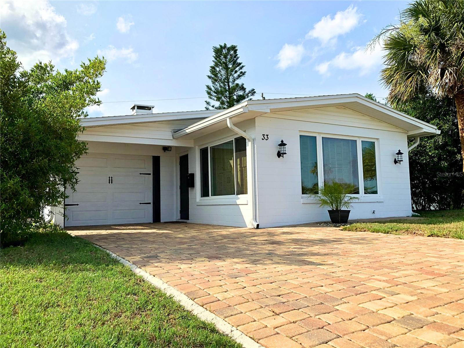 Enjoy the best of coastal living in this upgraded Ormond Beach gem - just a short stroll from both the Atlantic Ocean and the Intracoastal. This solid block 2-bedroom, 2-bath home is a classic mid-century design that’s been thoughtfully updated with modern flair, located in a quiet, established beachside neighborhood with deeded access to a private beach walkover and a scenic riverfront park. Situated high and dry in non-flood zone X, it offers added security and peace of mind. Inside, the designer kitchen shines with rich hickory cabinets featuring soft-close, anti-slam drawers, granite countertops, a center island with seating, and a professional 36" 5-burner gas stove - perfect for cooking after a day in the sun. Both bathrooms have been stylishly refreshed with new vanities and toilets, and the original terrazzo and tile floors lend timeless character with easy-care practicality. All closets are cedar-lined, adding a touch of luxury and natural protection. Significant upgrades include all new storm-rated windows and shutters (2023) for added protection and potential insurance savings, a new front door, updated handles and locks, a complete replacement of A/C ductwork (2023), new gutters (2022), a new electric panel (2022), a brand-new septic system (2022), a 2022 washer and dryer, a new water heater (2022), and a new roof (2022). The home has been freshly painted inside and out with premium Benjamin Moore paint for a clean, coastal finish. Step through double French doors into your private backyard retreat, where Seabreeze clumping bamboo creates a natural privacy screen and the brand-new paver patio sets the tone for laid-back entertaining. Enjoy the newly screened cedar-lined porch, rinse off in the outdoor shower, or unwind under the stars in your tropical escape. A shed for storage, 30-amp RV hookup, and ample space to park a large RV or boat make this home as practical as it is inviting. Whether you're looking for a serene primary residence or a turn-key beachside getaway, this beautifully updated home offers the perfect blend of style, comfort, and the relaxed Ormond Beach lifestyle.