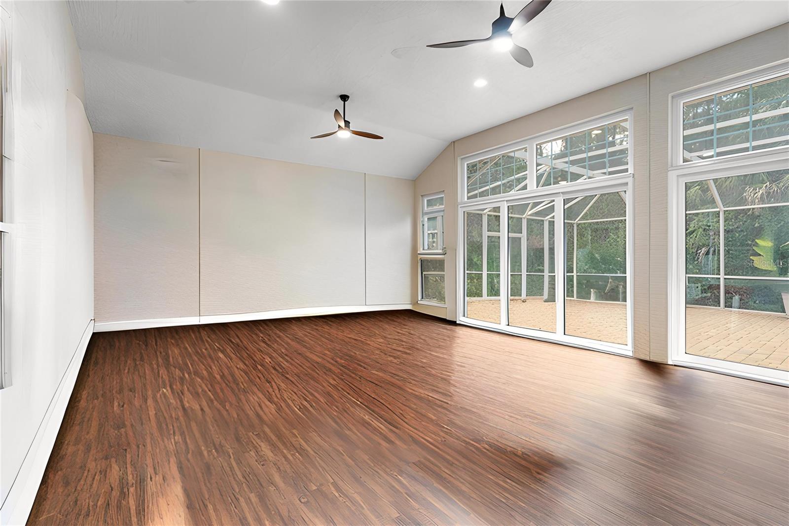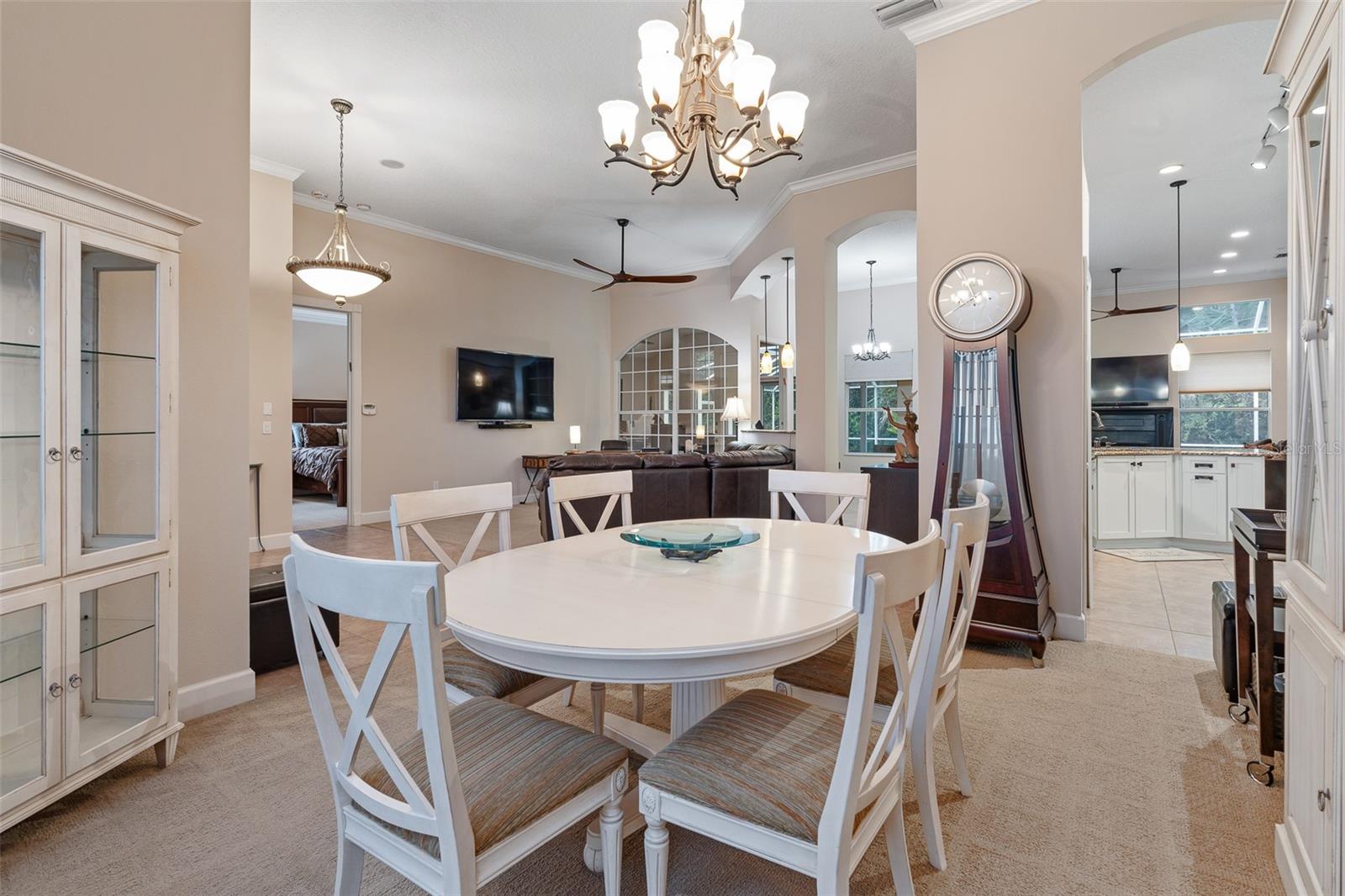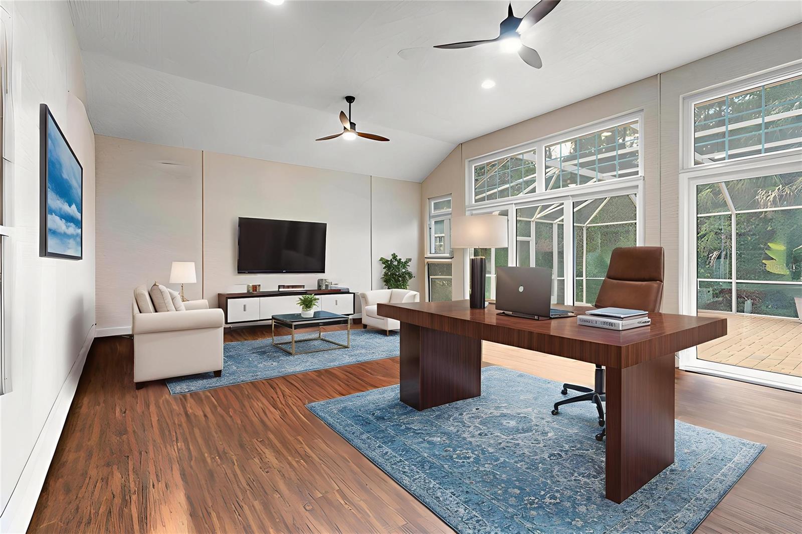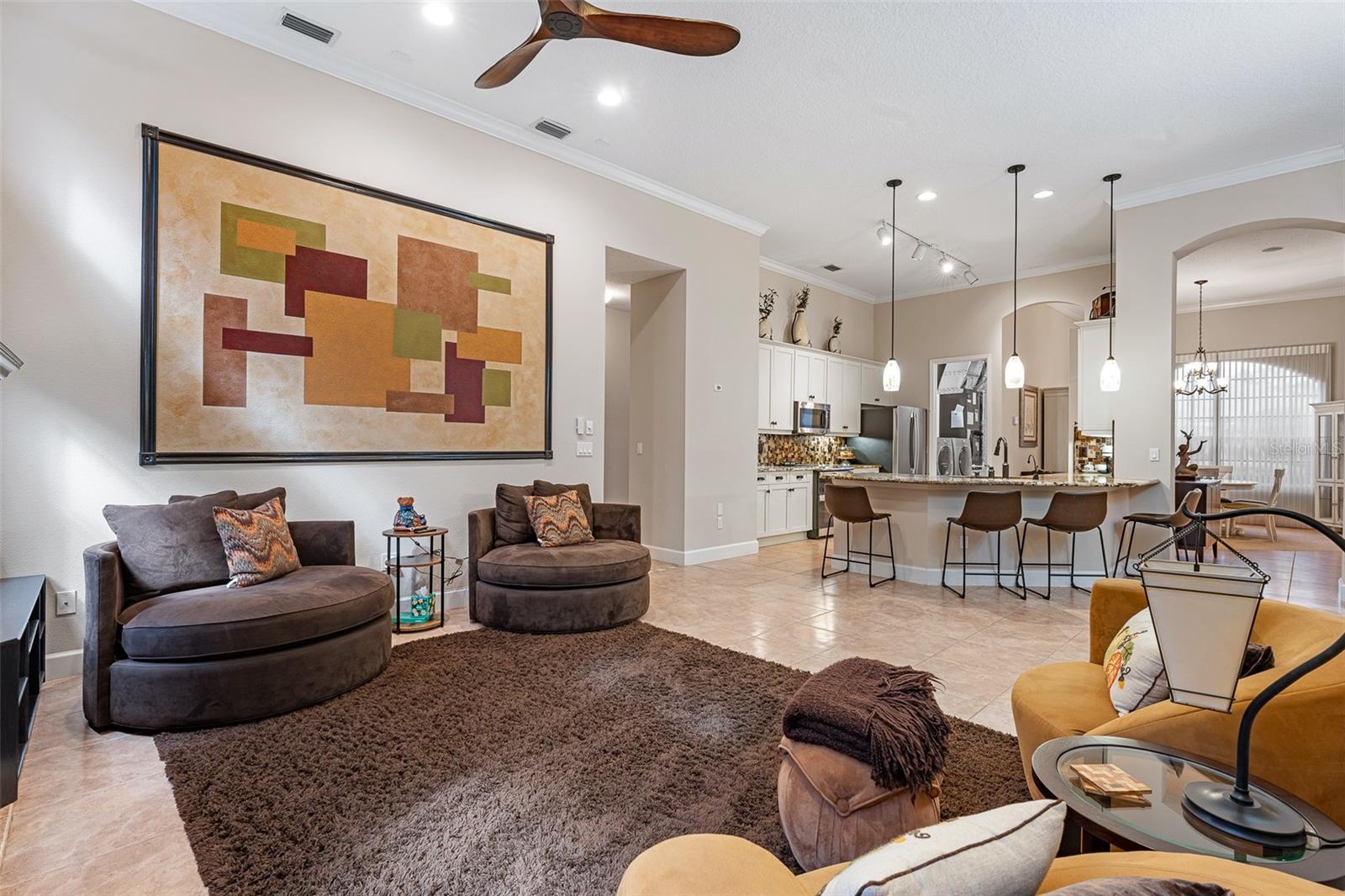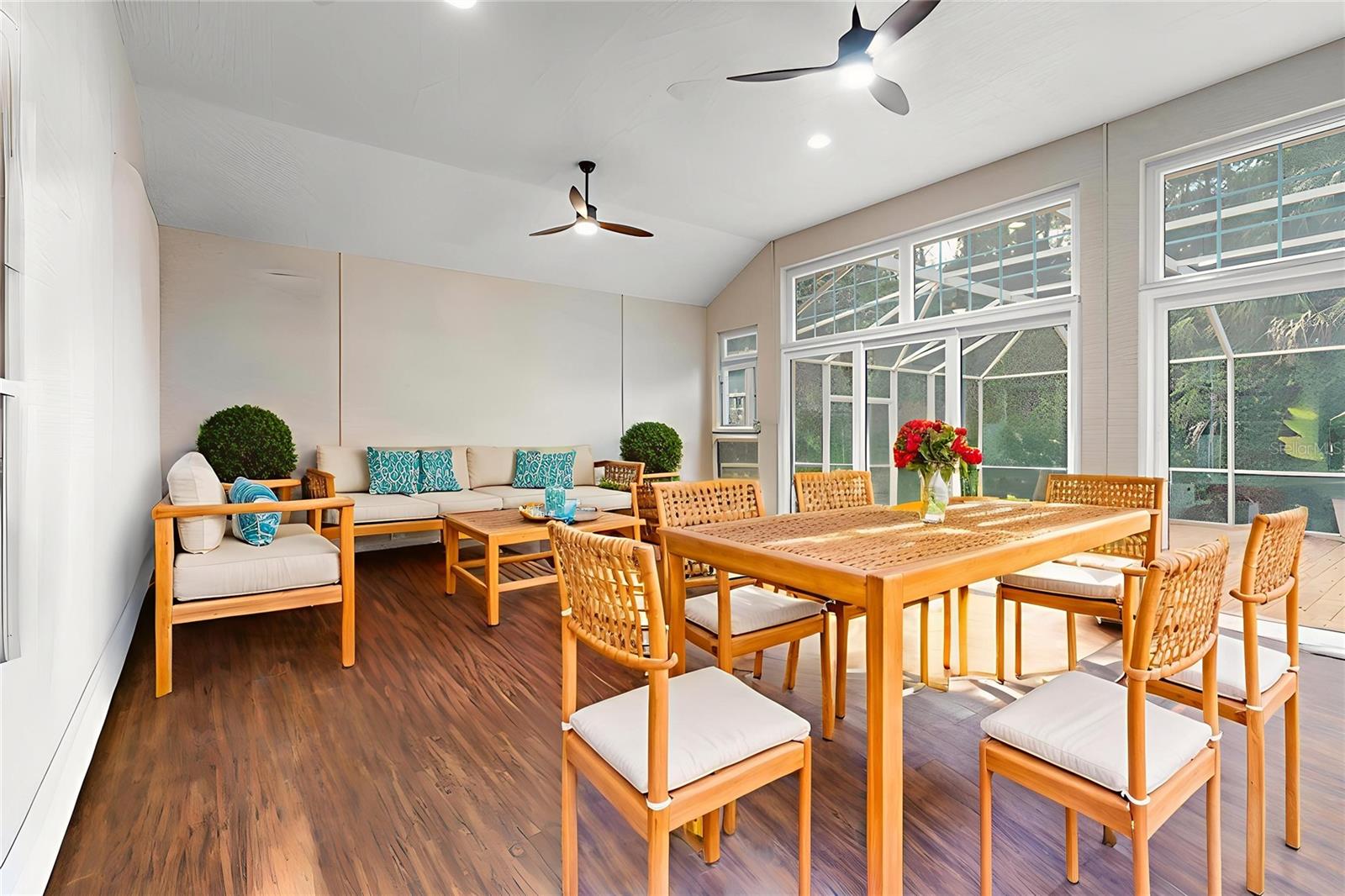 One or more photo(s) has been virtually staged. Welcome to 945 Stone Lake Drive in the prestigious gated community of Plantation Bay, offering a $25,000 ROOF CREDIT to make this already impressive property even more appealing. This spacious home has four bedrooms plus a private theater room, along with an extended air-conditioned Florida room that adds incredible flexibility for entertaining, relaxing, or creating an additional office or fitness space all overlooking your SOLAR heated POOL. Step inside through double glass entry doors to find tile floors with mosaic tile accents. The formal dining room boasts a large window, crown molding, and plush carpet, while the formal living room offers high ceilings, crown molding, and comfortable finishes. The renovated kitchen is a showpiece with 42-inch white cabinetry featuring soft-close dovetail construction and pull-outs, complemented by a mosaic tile backsplash, granite countertops, and a copper sink. Stainless steel apps include a double oven, and a pantry closet provides excellent storage. The breakfast nook opens to the Florida room and features additional countertop and breakfast bar seating that flows into the family room, where you'll enjoy tile floors, gas fireplace, crown molding, and serene views of the pool. The master suite is a retreat with upgraded carpet, tray ceiling with crown molding, surround sound, and dual walk-in closets with built-ins. The spa-inspired bath includes dual sinks with granite countertops, walk-in tile shower, soaking tub, and private commode. With a split floor plan, bedrooms 2-4 are on the other wing of the home. Each with custom built-ins with closet, one with walk-in closet. Sharing Bathroom 2 with granite countertop with 2 sinks, tile tub/shower and door to pool area. Upstairs, the bonus theater room has built-in chairs, blackout curtains, projection screen, mini-split AC, and full surround sound connected to the Control4 system. Upstairs completed with a third bathroom with quartz vanity and tile tub/shower combo. Outdoors, enjoy your private oasis with a four-year-old solar-heated screened pool, extended paver lanai, and preserve views for ultimate privacy. The extended Florida room with its own AC is the perfect spot for entertaining or relaxing year-round. Other upgrades include Control4 smart-home integration with surround sound, lighting, and cameras; mini-split AC units in the master, and upstairs; paver driveway and walkway, laundry room with cabinetry, and widened 2-car garage with built-ins, sink, hot water heater (2021), ceiling racks, generator plug, AC system from 2019, and whole-house water filtration system. Living in Plantation Bay means enjoying one of Florida's premier golf and country club communities. 45 holes of championship golf, 9 lighted Har-Tru tennis courts, 10 pickleball courts, new 30-million-dollar Founders Clubhouse, additional Prestwick Clubhouse, a state-of-the-art fitness center and spa, multiple resort-style pools with cabana bar and grill, miles of walking and biking paths and fully activities calendar. Memberships are available at various levels, from full golf privileges to social memberships for dining and club events. Buyers of this home, who want to receive a substantial discount on initiation fee at the club, ask listing agent for details. This home combines spacious living, luxury amenities, and a prime location with an unbeatable community lifestyle-plus the added value of a $25,000 roof credit. Don't miss your chance to make it yours.