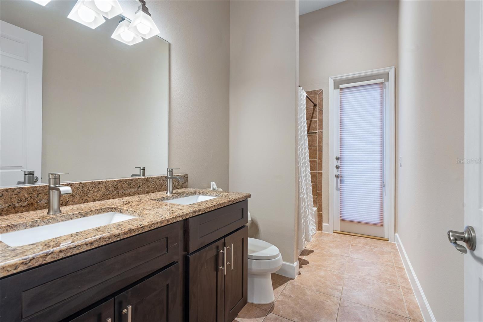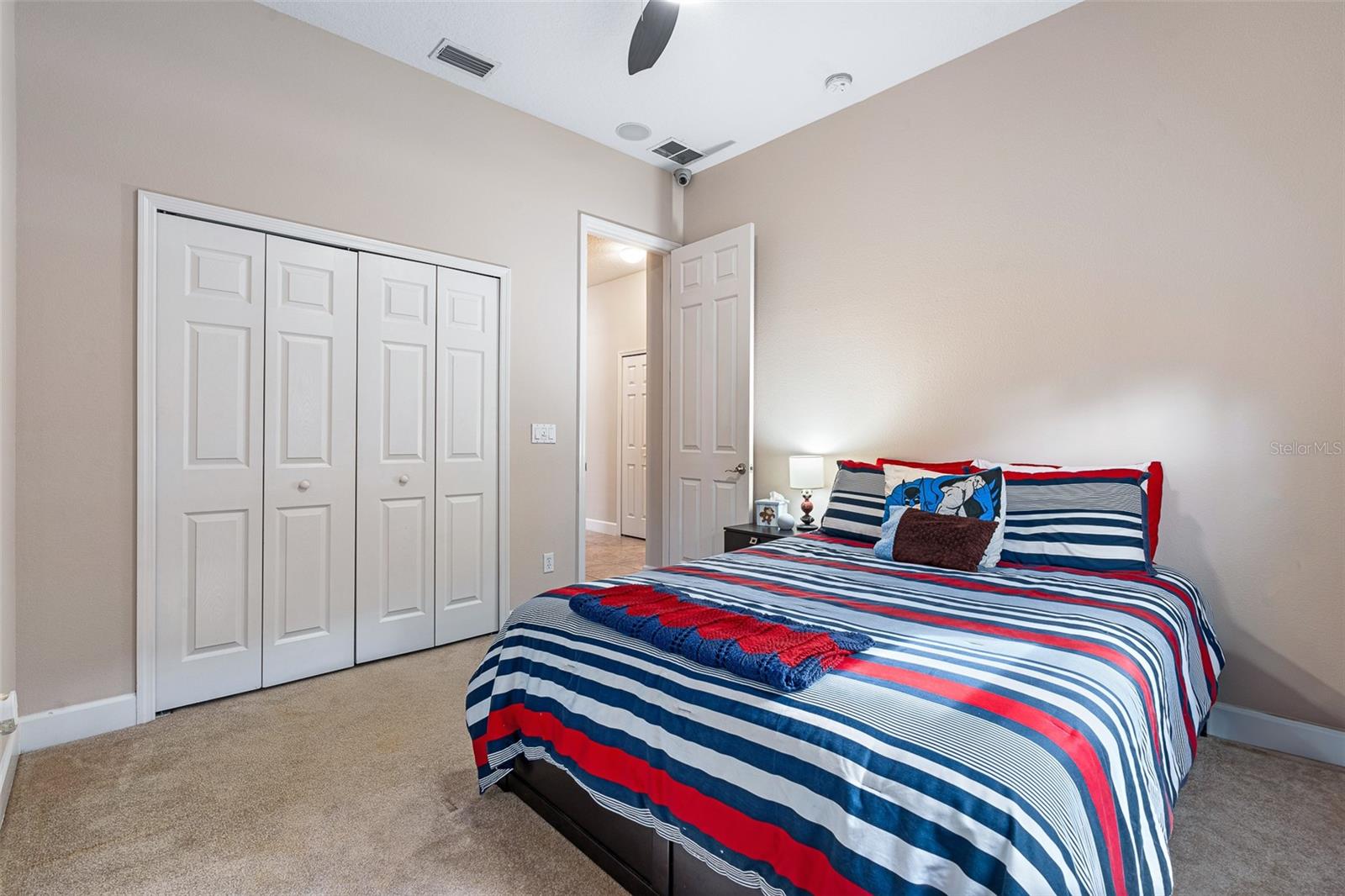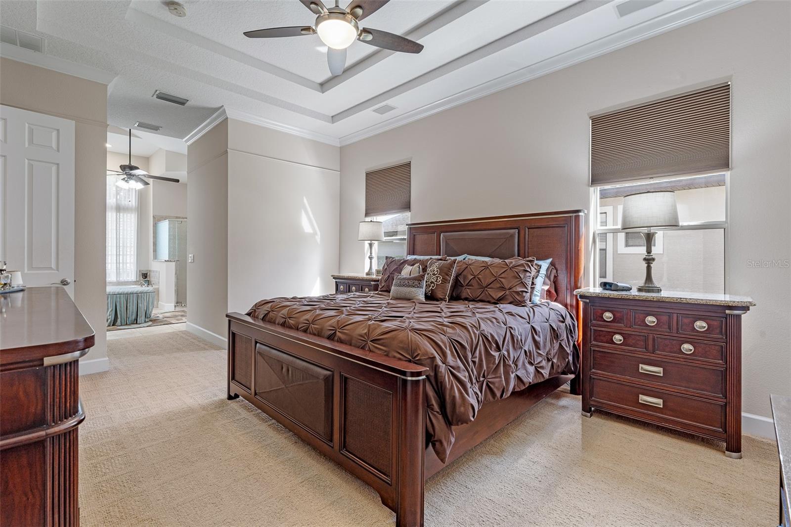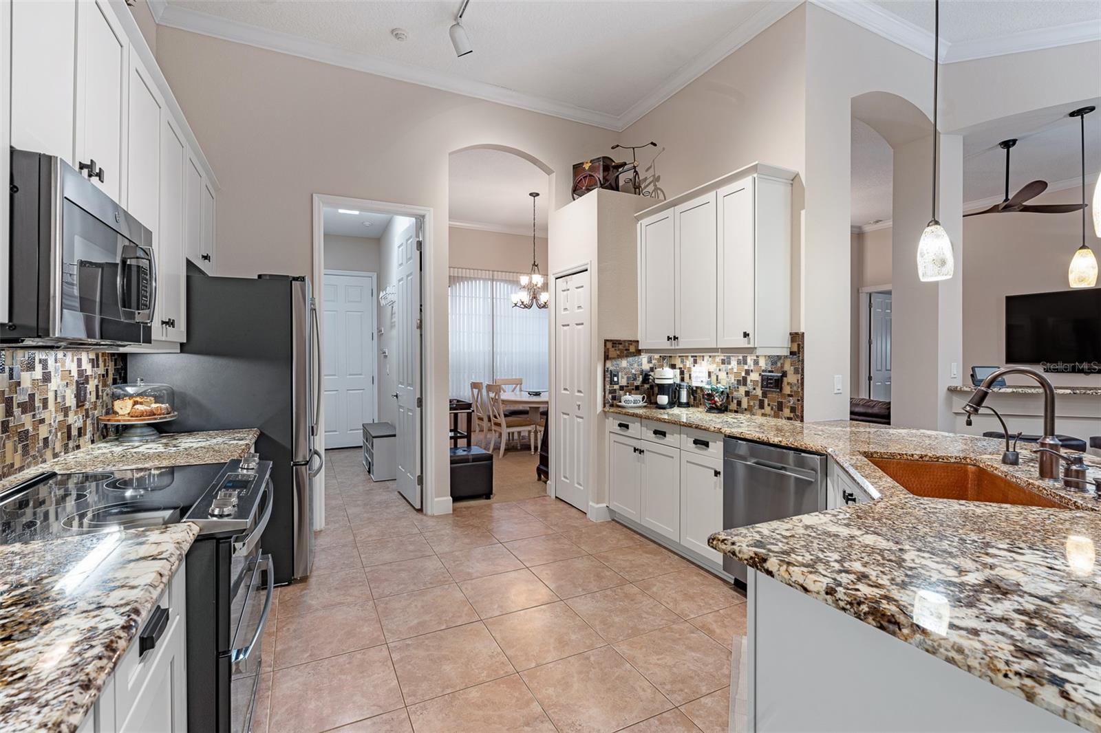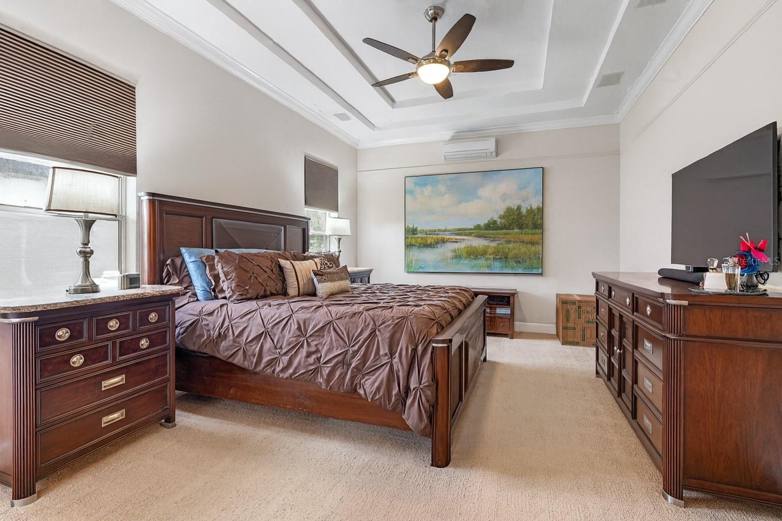 One or more photo(s) has been virtually staged. Welcome to 945 Stone Lake Drive in the prestigious gated community of Plantation Bay, offering a $25,000 ROOF CREDIT to make this already impressive property even more appealing. This spacious home has four bedrooms plus a private theater room, along with an extended air-conditioned Florida room that adds incredible flexibility for entertaining, relaxing, or creating an additional office or fitness space all overlooking your SOLAR heated POOL. Step inside through double glass entry doors to find tile floors with mosaic tile accents. The formal dining room boasts a large window, crown molding, and plush carpet, while the formal living room offers high ceilings, crown molding, and comfortable finishes. The renovated kitchen is a showpiece with 42-inch white cabinetry featuring soft-close dovetail construction and pull-outs, complemented by a mosaic tile backsplash, granite countertops, and a copper sink. Stainless steel apps include a double oven, and a pantry closet provides excellent storage. The breakfast nook opens to the Florida room and features additional countertop and breakfast bar seating that flows into the family room, where you'll enjoy tile floors, gas fireplace, crown molding, and serene views of the pool. The master suite is a retreat with upgraded carpet, tray ceiling with crown molding, surround sound, and dual walk-in closets with built-ins. The spa-inspired bath includes dual sinks with granite countertops, walk-in tile shower, soaking tub, and private commode. With a split floor plan, bedrooms 2-4 are on the other wing of the home. Each with custom built-ins with closet, one with walk-in closet. Sharing Bathroom 2 with granite countertop with 2 sinks, tile tub/shower and door to pool area. Upstairs, the bonus theater room has built-in chairs, blackout curtains, projection screen, mini-split AC, and full surround sound connected to the Control4 system. Upstairs completed with a third bathroom with quartz vanity and tile tub/shower combo. Outdoors, enjoy your private oasis with a four-year-old solar-heated screened pool, extended paver lanai, and preserve views for ultimate privacy. The extended Florida room with its own AC is the perfect spot for entertaining or relaxing year-round. Other upgrades include Control4 smart-home integration with surround sound, lighting, and cameras; mini-split AC units in the master, and upstairs; paver driveway and walkway, laundry room with cabinetry, and widened 2-car garage with built-ins, sink, hot water heater (2021), ceiling racks, generator plug, AC system from 2019, and whole-house water filtration system. Living in Plantation Bay means enjoying one of Florida's premier golf and country club communities. 45 holes of championship golf, 9 lighted Har-Tru tennis courts, 10 pickleball courts, new 30-million-dollar Founders Clubhouse, additional Prestwick Clubhouse, a state-of-the-art fitness center and spa, multiple resort-style pools with cabana bar and grill, miles of walking and biking paths and fully activities calendar. Memberships are available at various levels, from full golf privileges to social memberships for dining and club events. Buyers of this home, who want to receive a substantial discount on initiation fee at the club, ask listing agent for details. This home combines spacious living, luxury amenities, and a prime location with an unbeatable community lifestyle-plus the added value of a $25,000 roof credit. Don't miss your chance to make it yours.
