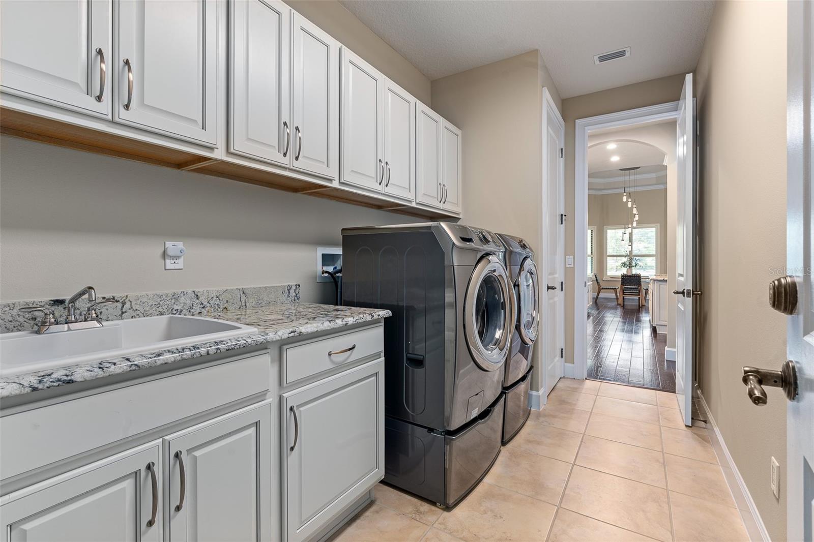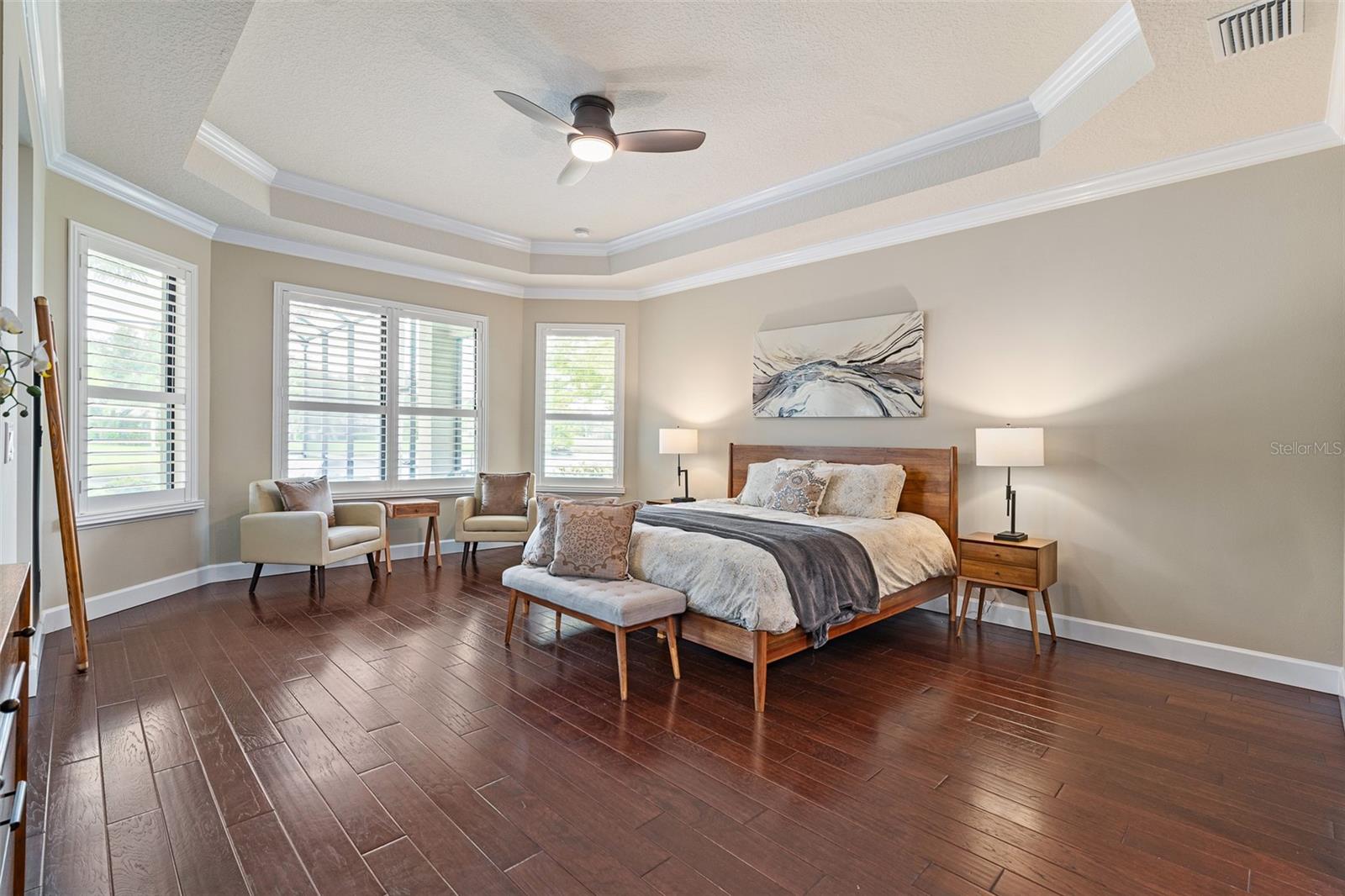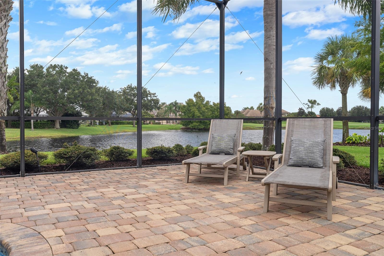 Exquisite estate home in Plantation Bay! This stunning residence offers 3 bedrooms plus an office, blending timeless elegance with modern upgrades and breathtaking views of the lake and golf course. From the moment you step through the double front glass doors, you are welcomed by soaring ceilings, crown molding, and immediate panoramic views of the water and fairway. The family room impresses with a custom stone accent wall, linear gas fireplace, tray ceiling with surround sound, and four-panel sliders opening to the lanai. The oversized kitchen is a chef's dream, featuring granite countertops, gas stove, stainless steel appliances with built-in oven, mosaic tile backsplash, dovetail soft-close cabinetry with pullouts, reverse osmosis system, and pantry cabinet. The breakfast nook and formal dining room both showcase tray ceilings, crown molding, plantation shutters, and serene pool-to-lake views. The master suite offers wood floors, tray ceiling, private lanai access, dual walk-in closets with custom built-ins, and a spa-inspired bath with quartz vanities, a soaking tub, and walk-in shower with mosaic accents. Additional bedrooms include an en suite with private bath and a Jack-and-Jill layout with quartz counters and tiled tub/shower. A private office with double French doors and plantation shutters provides the perfect work-from-home space. Step outside to your resort-style lanai with a new PebbleTec saltwater pool featuring sun shelf, waterfall, and stairs, all overlooking the shimmering lake and golf course. Entertain with a full outdoor kitchen including gas grill, sink, and refrigerator. This premium estate lot is 1/2 acre with golf course and lake views on private street. Additional highlights: laundry room with cabinetry and sink, oversized 3-car side-entry garage with built-ins, paver driveway and walkways, Culligan water system, central vac, hybrid hot water heater, remote-controlled locks and A/C, Tesla Powerwall whole-home backup (6 units), and two electric car chargers. Recent upgrades include: new A/C (2025), refinished pool with sun shelf and new pump/heater, Solartec passive pool heating system, and garage A/C/heat. Living in Plantation Bay means enjoying one of the area's premier gated, golf-cart-friendly communities with 45 holes of championship golf, tennis, pickleball, two clubhouses with restaurants and bars & 30 million Founders Clubhouse, a fitness center, resort-style pools, and miles of walking and biking trails. Memberships are available to suit your lifestyle, offering everything from social gatherings to full golf access. Located just minutes from the beach, dining, and shopping, Plantation Bay combines resort living with everyday convenience. This exceptional home in gated Plantation Bay offers not only unmatched luxury and efficiency but also peace of mind with its extensive smart-home and energy-saving enhancements.