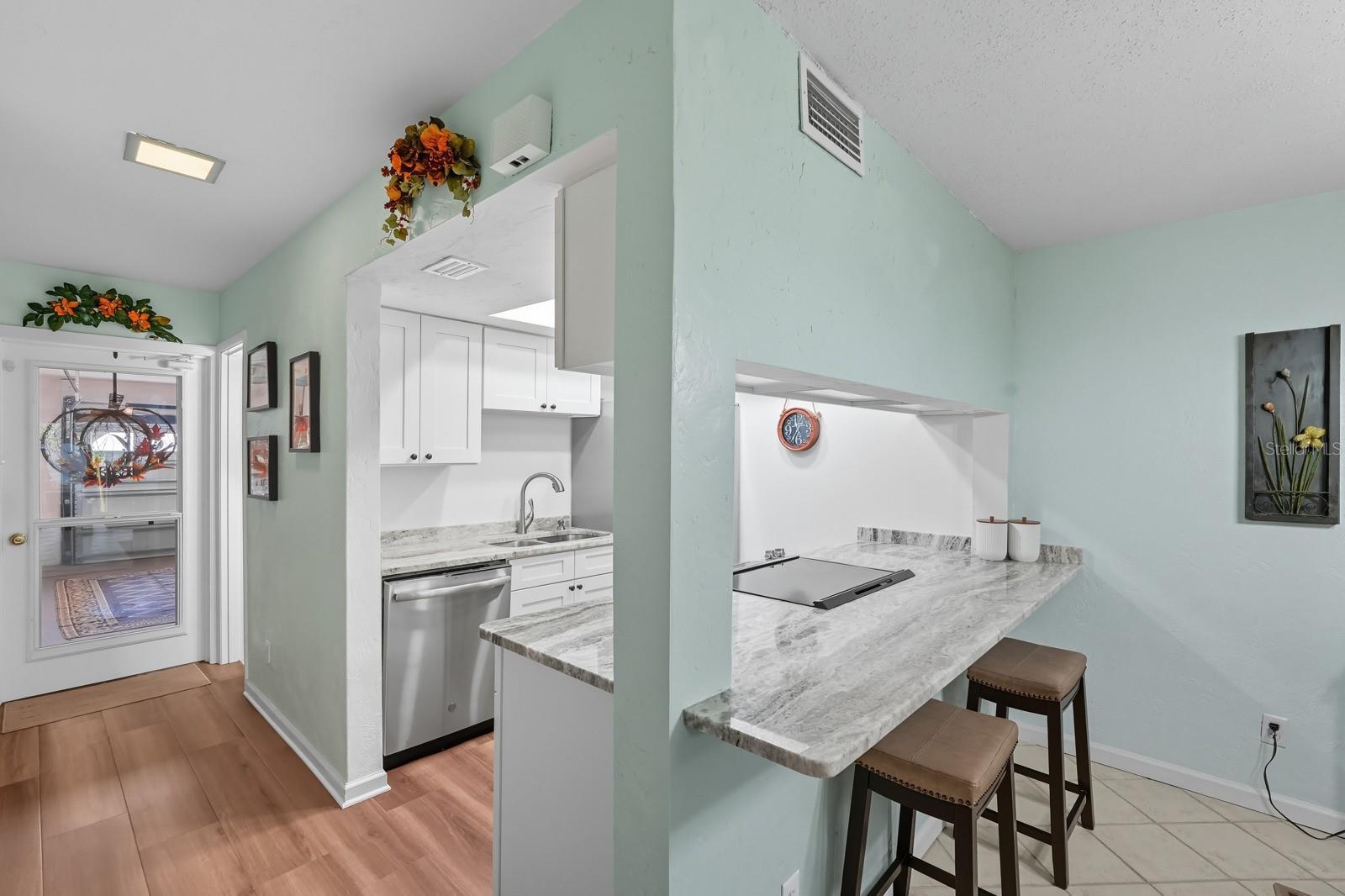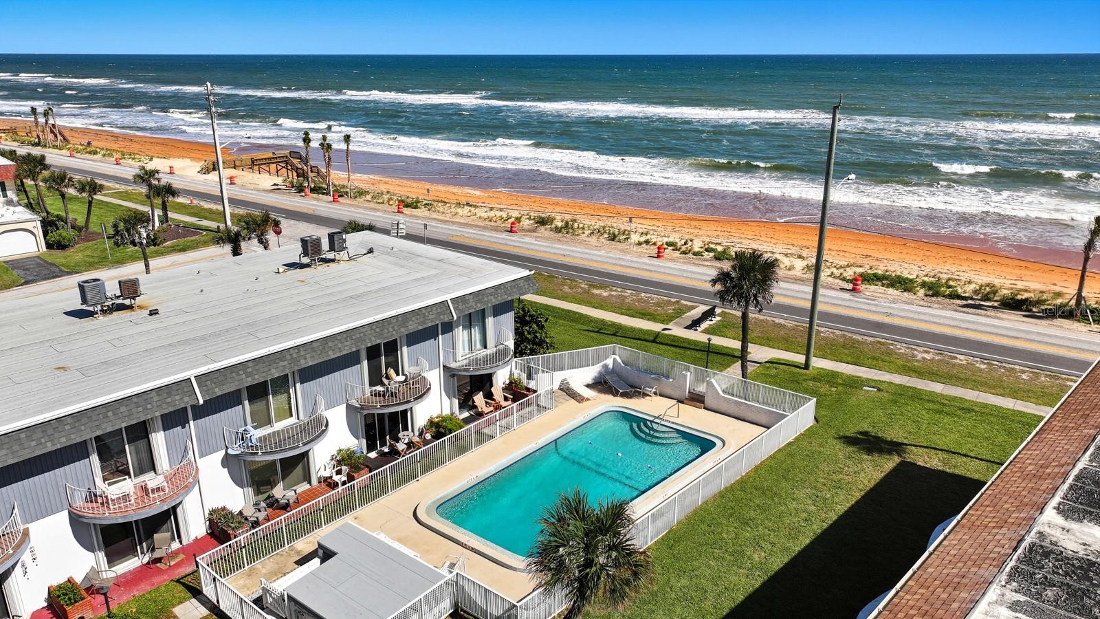 Breezy Coastal Living Steps from the Beach.Live where every day feels like a vacation! This condo = pure coastal vibes Not just a condo… it’s a lifestyle! This updated 2-bedroom, 2-bath townhome-style condo is all about comfort, convenience, and a laid-back beachside lifestyle. 150 feet to the sand… but who’s counting with a nearby beach walkover. This private 14-unit community even has its own private pool—your personal coastal escape. Inside, the bright and open layout makes entertaining a breeze. Downstairs, Tile and wood floors, a stylish white shaker kitchen with granite countertops, stainless steel appliances and breakfast bar that seamlessly flows into dining and living areas that open to a private patio. A full bath is also on the main level. Upstairs, Wake up to ocean views from both bedrooms! The primary bedroom offers a private balcony and double closet—step out, sip your coffee, and catch the sunrise. A second full bath with tub/shower combo completes the upstairs. Highlights you’ll love; Attached garage + driveway with space for 2+ cars, a golf cart, surfboards, bikes & all your beach toys. Built for coastal living: hurricane shutters and updated windows & Sliders = peace of mind. Just your electric bill..the HOA covers the rest. Easy living. Flexible ownership: 30-day minimum rentals allowed. Pet-friendly community, bring your fur babies (2 pets under 25 lbs.). From full-time living to vacation vibes or investment potential, this condo checks all the boxes and makes the dream of beachside living a reality. By appointment only – call today and start living the beach life! All information taken from the tax record, and while deemed reliable, cannot be guaranteed.