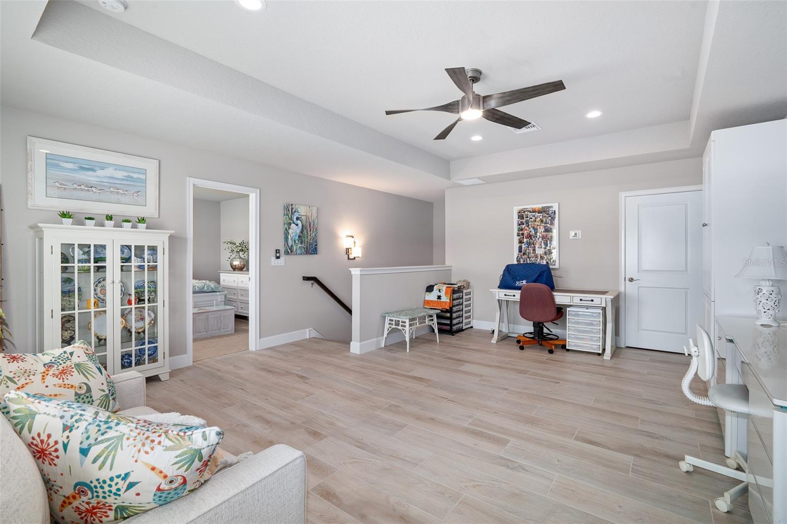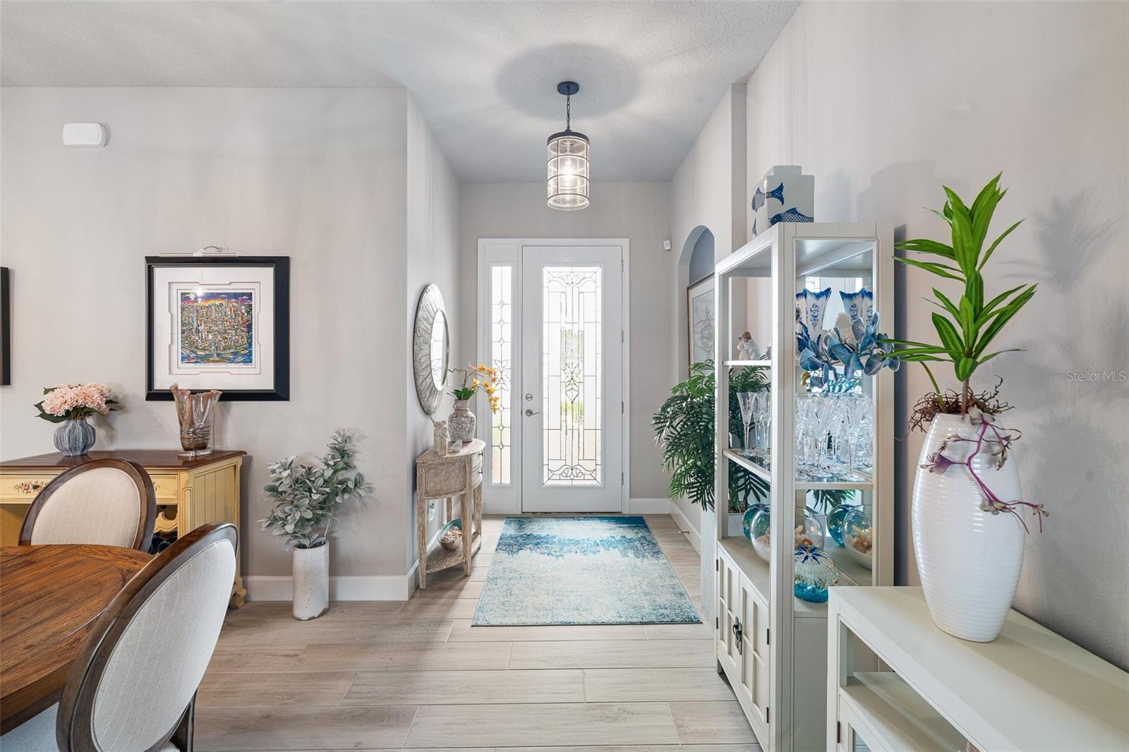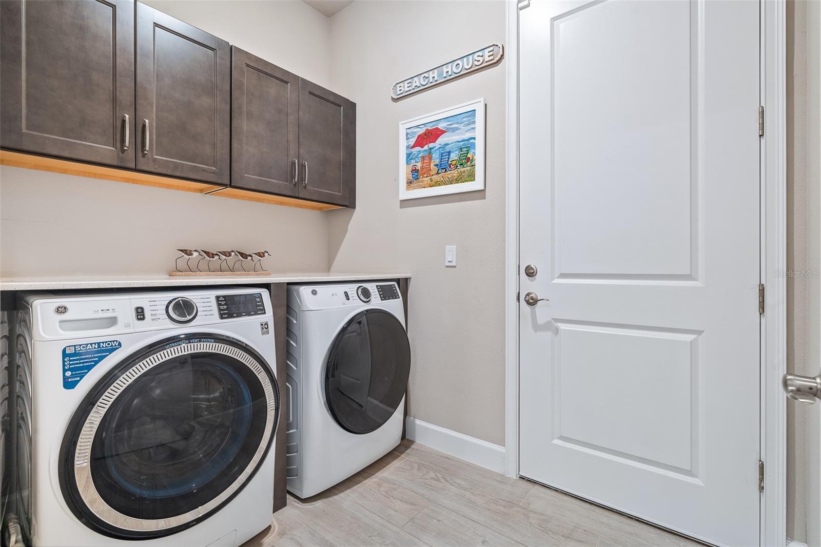 Welcome to this stunning, meticulously upgraded home in the heart of sought after Plantation Bay Golf and Country Club-where no detail has been overlooked and luxury meets everyday comfort. Boasting over $100,000 in PREMIUM UPGRADES, this residence showcases the perfect blend of elegance, functionality, and style. This home features an open-concept layout that seamlessly connects the living room, dining area and deluxe kitchen-perfect for entertaining or everyday living. the gourmet kitchen is a chef's dream, featuring soft-close custom cabinetry, elegant quartz countertops, a gorgeous tile backsplash, wall oven, slate appliances and an oversized kitchen island that offers extra cabinet storage. Every detail has been thoughtfully selected, including custom lighting and ceiling fans. Discover wood-look tile flooring throughout. The primary suite is on the main level creates a private retreat with an en suite bathroom boasting dual sinks, quartz counters, a walk-in shower, and a custom designed closet with a clever built-in storage under the staircase. Upstairs, you'll find a spacious bonus room and a second master suite, perfect for quests or multi-generational living. Enjoy tranquil mornings and relaxing evenings on your patio overlooking the sparkling pond and fountain, creating a peaceful backdrop to your everyday life. Enjoy peace of mind and convenience with electric hurricane shutters on the lanai, master bedroom, bonus room, and upstairs bedroom. The laundry room features cabinets, and the epoxy-finished garage includes built-in storage, keeping your space spotless and efficient. With meticulous upgrades and unmatched craftmanship, this home is truly move-in ready and one of a kind! Buyers of this home will receive a substantial discount on the initiation fees when you join within 30 days of closing!