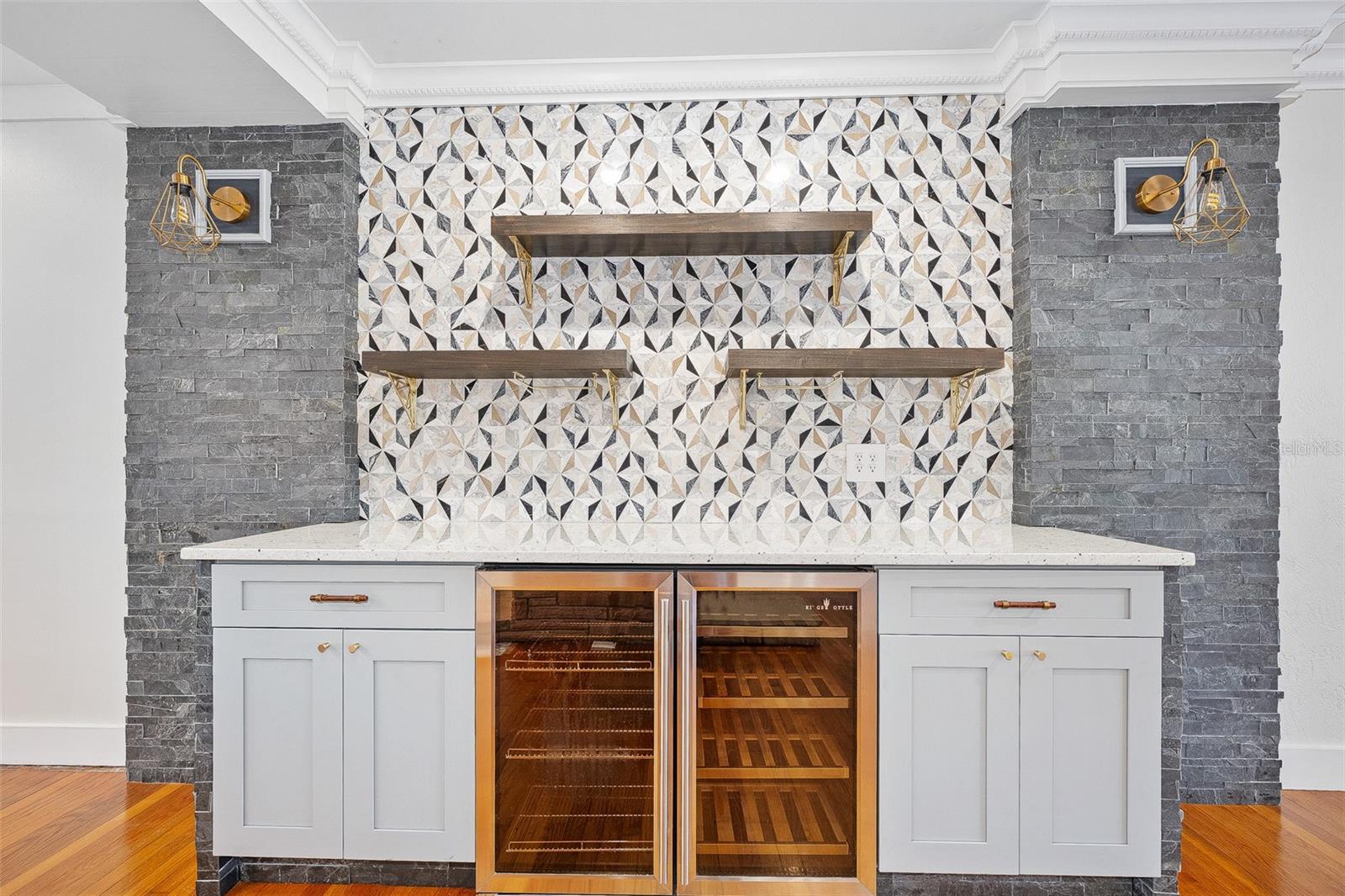 Fantastic mid-century with spectacular contemporary designer interior renovations that make this property a true standout in this incredibly sought after beachside location. With over 3000 sq ft, this 4 bedroom, 3 bath, 2 car garage home shows in immaculate condition. Enter to find plenty of natural light that flood in across gleaming oak floors that lead to a handsome stone fireplace in the sprawling living room where a custom wine bar steals the show. Just beyond, a great-room features a fabulous kitchen where high end appliances are tailor fitted in handcrafted solid wood cabinetry among lovely tile walls and designer perfect lighting fixtures. A set of three custom opaque glass panels stack to open the great-room/kitchen directly into the family room illuminated by a wall of windows that welcome the southern sun. Step outside into a no-maintenance backyard that is ideal for relaxation or entertaining with always green synthetic turf surrounding two beautiful paver patios. Putt, chip, shoot hoops or picnic in this inviting, private outdoor space. The home features a whole house generator, updated windows, custom window treatments, spacious indoor laundry room, outdoor beach shower and oversized garage. Location: undoubtedly one of the most sought after neighborhoods in the county where Neptune Avenue slowly crosses the picturesque golf links of Historic Oceanside Country Club and ultimately ends at The Atlantic Ocean where a crosswalk delivers you safely to a pristine stretch of beach with a lifeguard station. This home is surrounded by multi-million dollar investments, manicured lawns and lovely neighbors. Come find out why this location is the #1 choice of longtime locals and savvy newcomers.