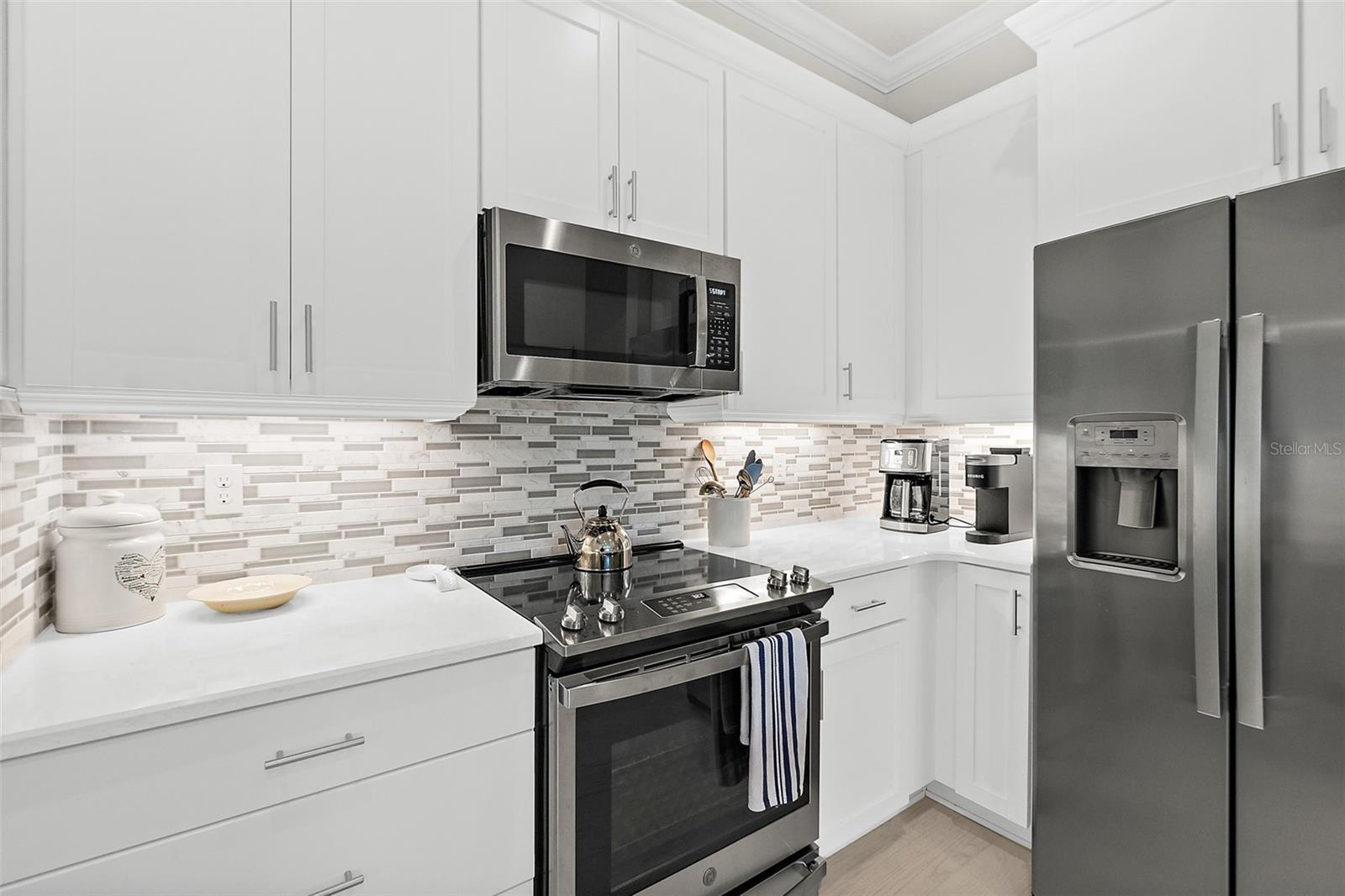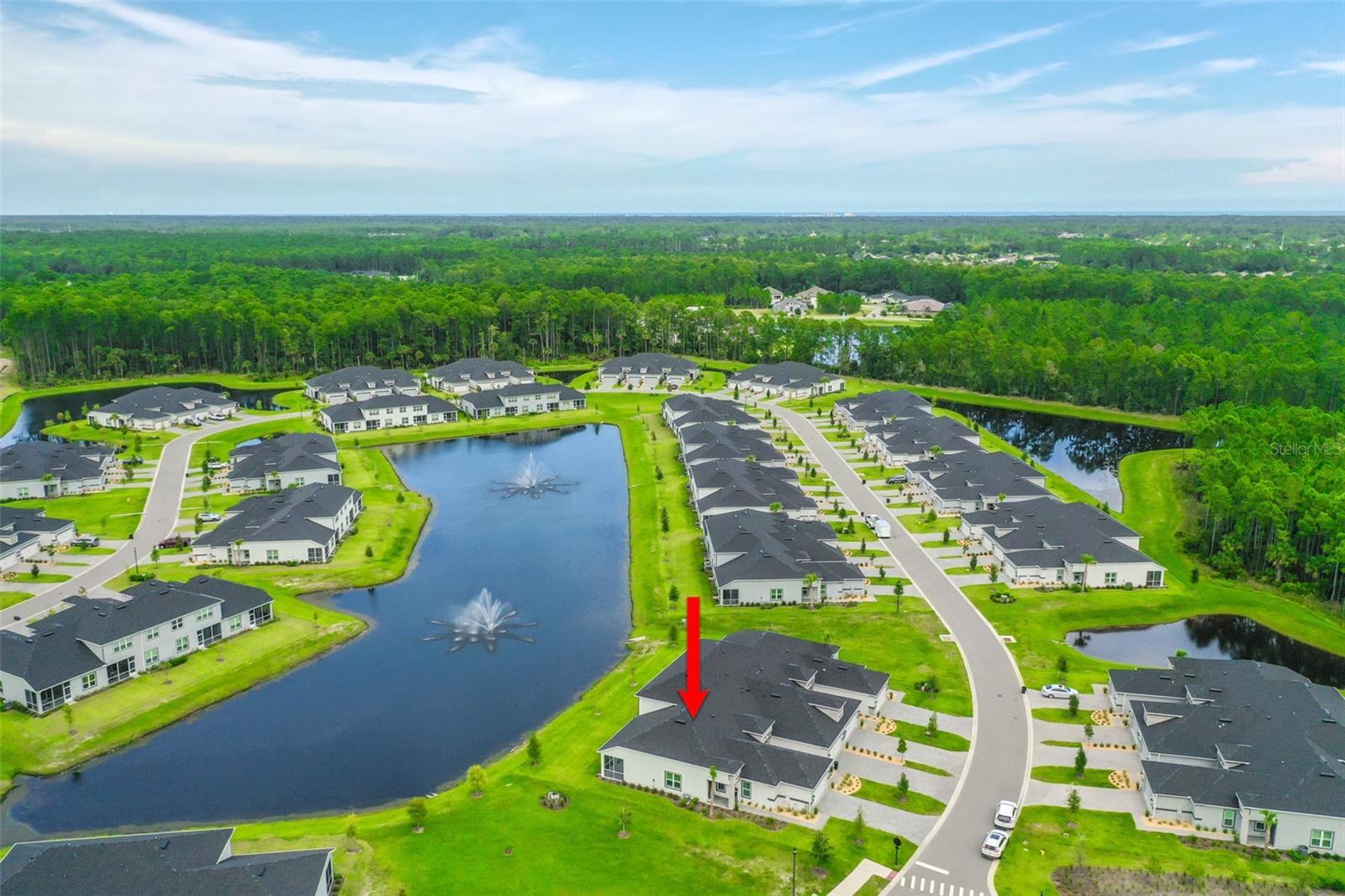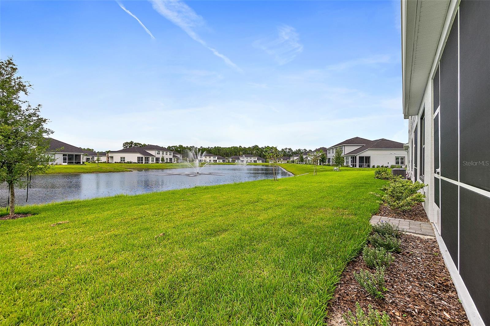 Welcome to this stunning 2-bedroom, 2-bathroom villa with a den/flex room, perfectly situated in one of Ormond Beach's most desirable communities. Overlooking tranquil waters with a soothing fountain, this home combines luxury finishes, thoughtful design, and low-maintenance living. Step inside to find upgraded wood-look tile flooring, plantation shutters, and upscale lighting throughout. The spacious, open-concept kitchen is a chef's dream, featuring 42'' upgraded cabinetry, quartz countertops and backsplash, a large farmhouse-style sink, corner pantry, and an upgraded range—all beautifully designed for both function and style. The primary suite is a peaceful retreat with elegant French doors, two custom walk-in closets, and a spa-inspired ensuite bathroom with a walk-in shower and private water closet. A split-bedroom layout provides privacy for guests, complemented by a well-appointed hall bath. Enjoy the flexibility of a separate den/flex room perfect for a home office, media room, or guest space. The laundry room adds everyday convenience, while the garage impresses with epoxy flooring and extra storage. Loaded with upgrades and move-in ready, this villa offers elegant living in a peaceful, scenic setting close to Ormond Beach's best amenities. Come join the Plantation Bay lifestyle! 45 holes of golf, tennis, pickleball, 2 pools, cabana, spa/fitness center and the New Clubhouse! Buyers of this home will receive a substantial discount on the initiation fees when you join within 30 days of closing