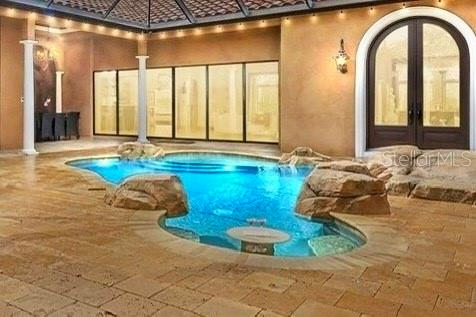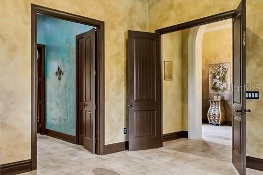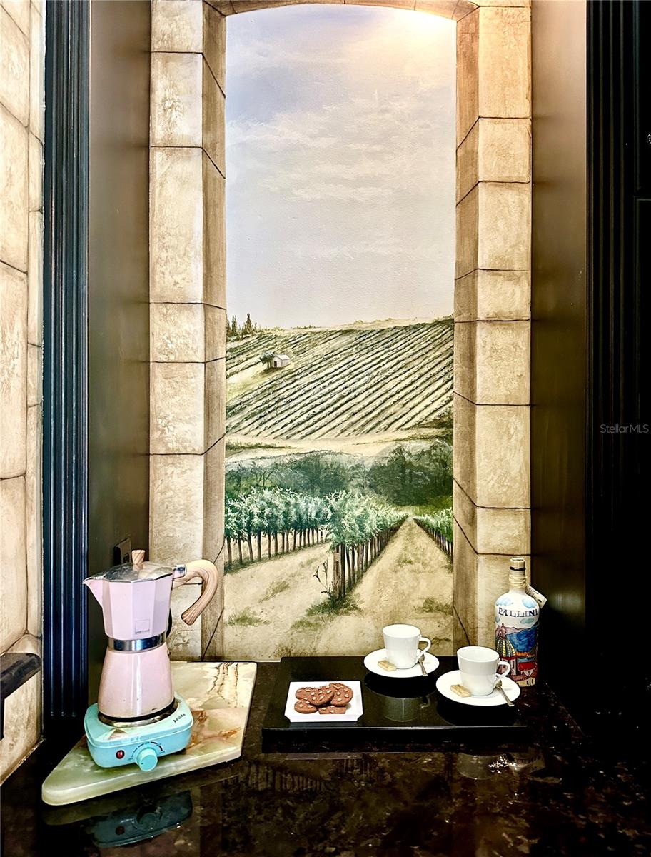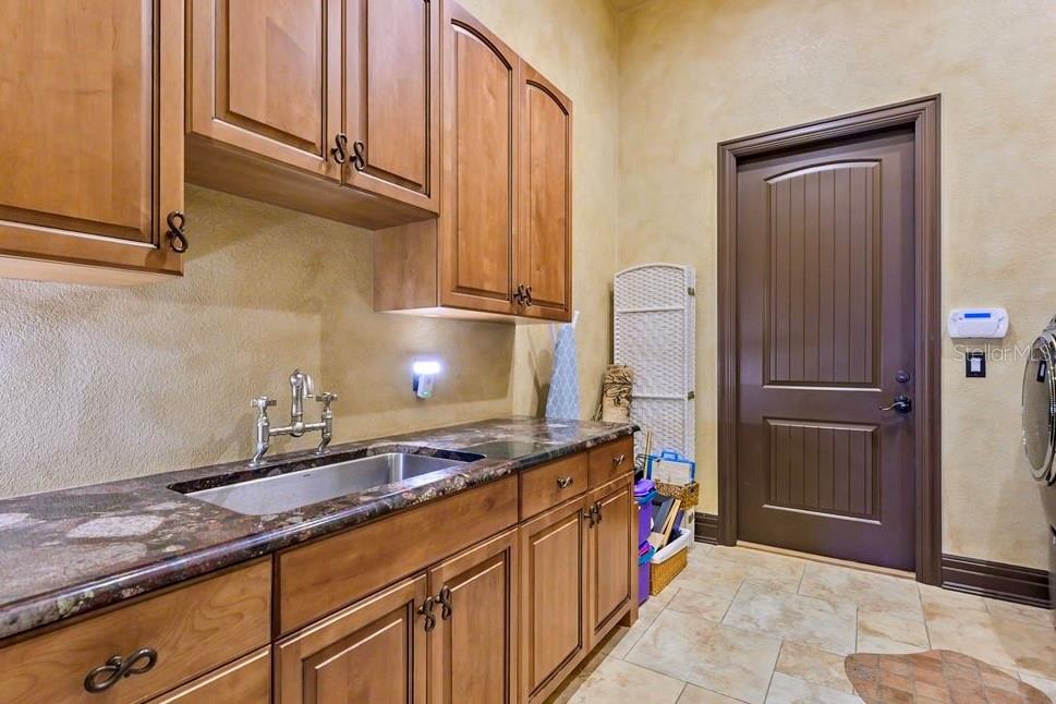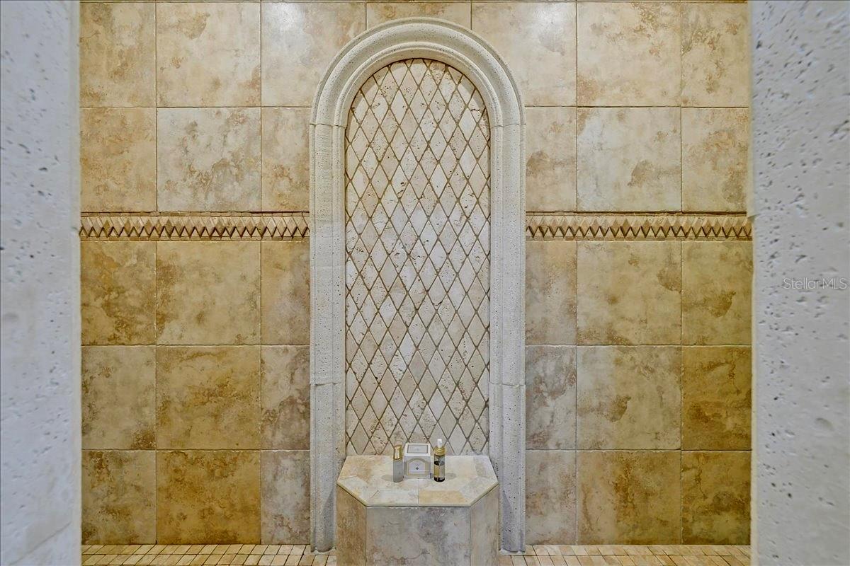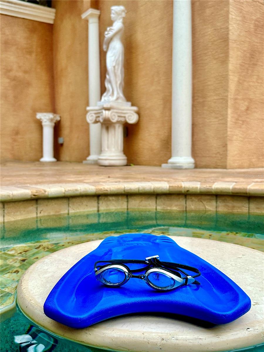 Along the serene waters of the Tomoka Preserve, stands a Mediterranean palazzo of rare distinction, created to be a piece of art in its own right. A scenic drive through the preserve, lined with majestic palms draped in Spanish moss, leads to this private waterfront estate offering a perfect balance of elegance and tranquility. Resting on 1.24acres of private lagoon front, this award-winning custom estate offers both prestige and seclusion. Blending elegance with nature, occasional deer may pause to watch you fish or canoe from the backyard. At the end of a quiet cul-de-sac, the home greets visitors with a regal canopy entrance, a sweeping-wide circular driveway, Venetian columns, Italian curved terracotta roof, paver-lined paths and tropical landscaping. A life-size “Signora dell’Acqua” fountain (lady of the water) and river rock gardens complete the essence of a Mediterranean retreat. Past the main gate, one will find a 2,294-sq.ft screened courtyard, complete w/ Venetian-style stone bridge across the travertine pool complex, featuring a waterfall, dipping pool, heated hot tub and a main saltwater heated pool with a swim-up bar, water curtain and controllable LED lighting. Outdoor dining is enhanced with hand-painted frescoed walls, a roofed kitchen & grill, an oversized fireplace anchors the lanai. Multiple covered seating areas, from coffee retreat by the spa to a central dining pavilion. Inside, soaring ceilings, some rising up to 16ft, hand-plastered walls, Italian-style frescos, and grand crystal chandeliers set the tone. The Grand Room offers panoramic views of the river and courtyard; The chamber of custom display cabinetry is complemented by wine and coffee bar, complete with cast-iron French doors and frescos of the Italian countryside. Pocketing glass doors dissolve boundaries between indoors & out, inviting breezes from the lagoon. The kitchen combines elegance with function: Monogram appliances, a 6-burner stove w/ griddle, double ovens, dual Fisher & Paykel dishwashers, floor-to-ceiling custom cabinetry, a granite island, a spacious walk-in pantry, serving stations, and abundant storage. The master suite is a private sanctuary with oversized windows and direct access to the outdoor spa. Hand-painted frescoed hallway leads to dual vanities & expansive stone double shower. Two oversized walk-in closets offer crystal chandeliers and solid wood shelving. Additional bedrooms include a in-law suite w/ a private courtyard entry, a junior suite with French doors and a flexible media lounge/ bedroom w/ veranda access. Beyond the bedrooms, the estate surprises at every turn. A walnut-clad office conceals a secret “Hide-Away Room,” while the Relaxation Room features a fireplace & river views. Card Room opens to the dining space. Even the foyer impresses with a cast-iron French glass door and chandelier. While steeped in romance, the home is built for peace of mind. Some of the recent updates include a 6-zone irrigation system with new well, pump, Wi-Fi controls, termite protection, upgraded pool/ spa mechanics & heaters. The new water filtration system provides exceptional water quality. This estate also offers a whole-house vacuum system, 32-camera monitoring, invisible dog fence, hurricane shutters, a hidden safety room, a climate-controlled garage & a whole-house generator. Truly a rare offering: being one of two estates with direct lagoon access to the Halifax River. This Venetian Palazzo is more than a home- it’s a statement.