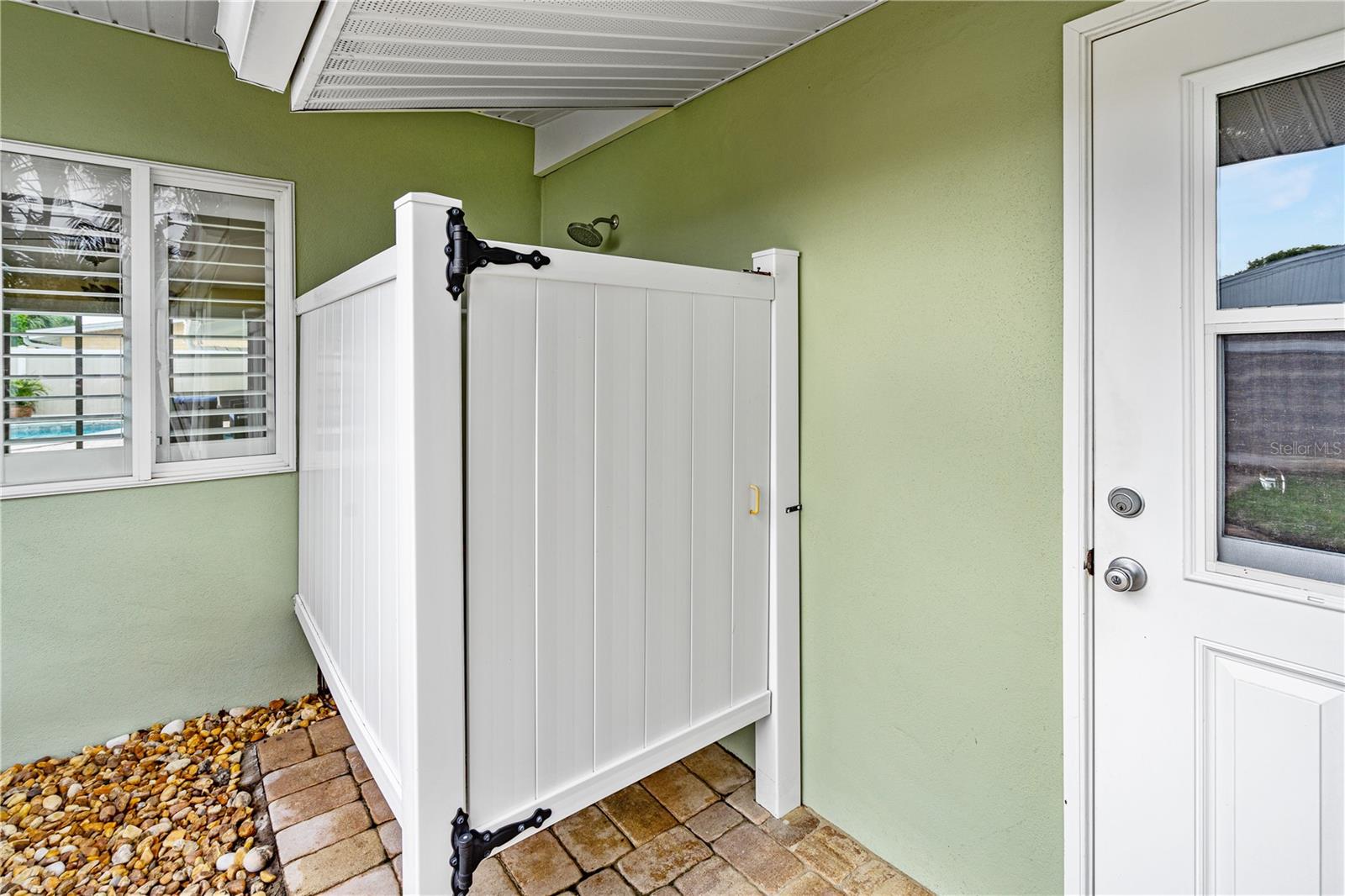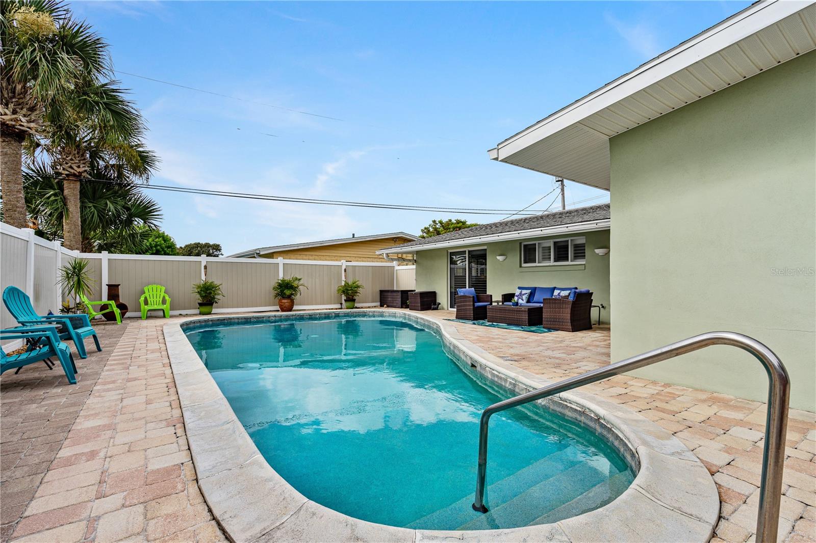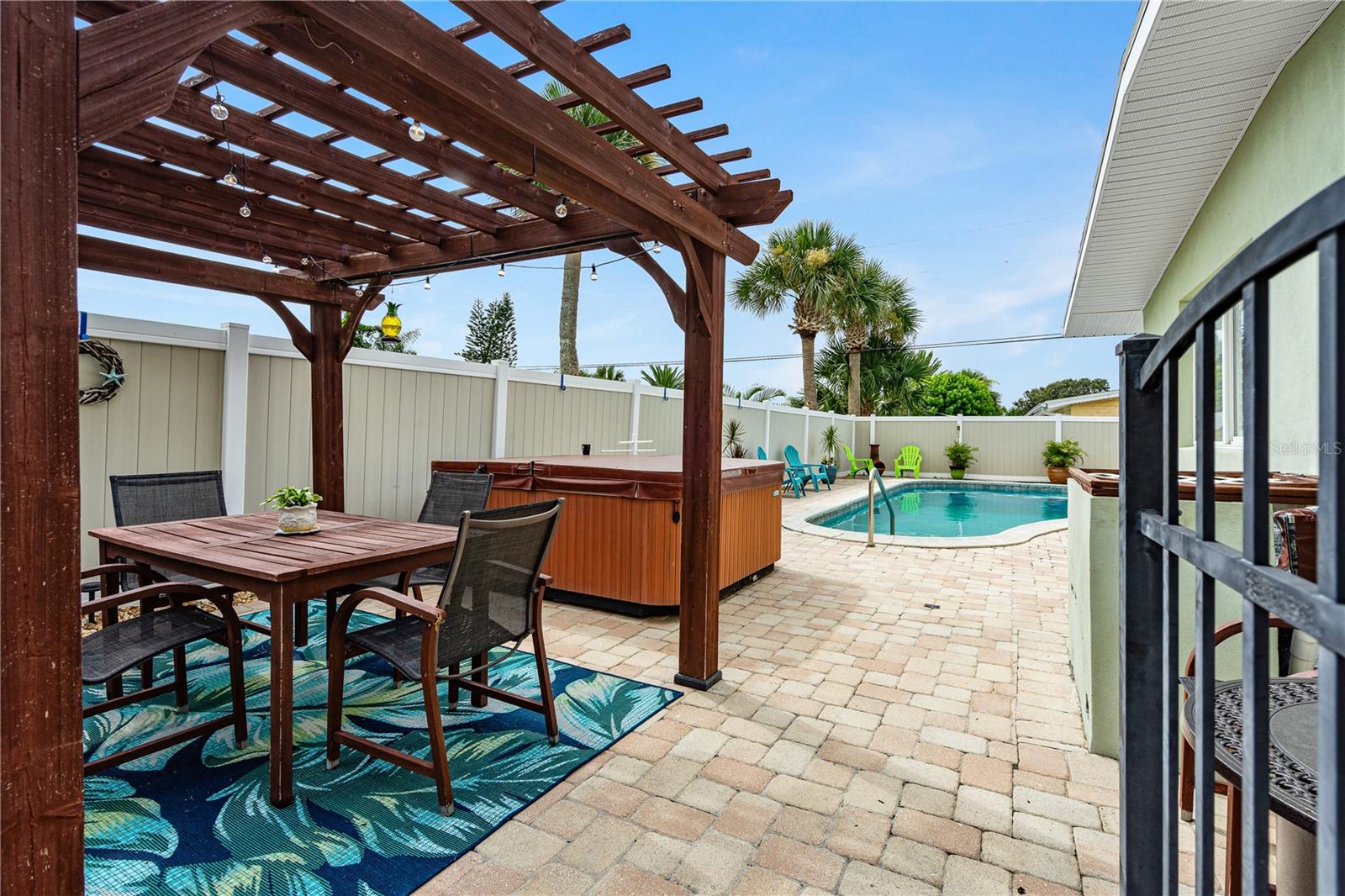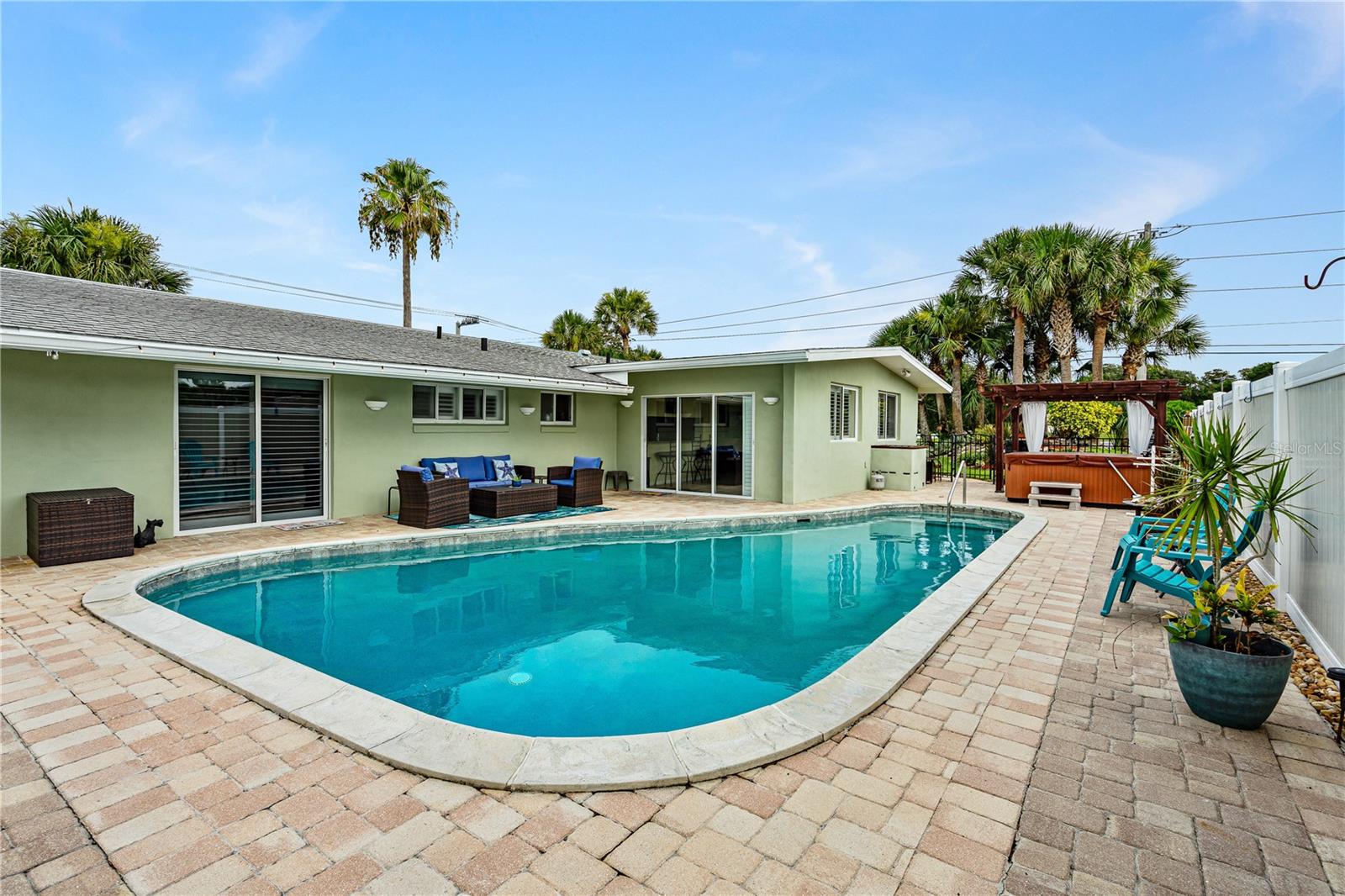 Amazing Ormond Beachside Pool Home Welcome to your dream beachside oasis in Ormond Beach! This stunning pool home offers 3 bedrooms, 2 bathrooms, a luxurious saltwater pool, and a Hot Springs Spa with a pergola, making it the perfect place to entertain family and friends. Outdoor Paradise with the saltwater pool, positioned for eastern exposure, allows you to enjoy the sunshine for the best part of the day while avoiding the late afternoon heat. The pergola-covered Hot Springs Spa is ideal for relaxation after a long day. Open Floor Plan: Step into the bright and airy open floor plan with abundant natural light. The living room and dining room seamlessly connect, creating a perfect space for entertaining. The kitchen features custom solid wood cabinetry and granite countertops, combining style and functionality. Spacious Florida Room 24x13, complete with a breakfast bar, offers a versatile space to relax with a book, work out, or set up a home office. Accordion sliders open to the beautiful pool area, enhancing indoor-outdoor living. Convenient outdoor shower is perfect for rinsing off after a day at the beach before jumping into the pool or spa. Recent Upgrades include New Paver Sidewalk with a covered sitting area, adding charm and convenience. New Garage Doors: Modern and functional, adding to the home's curb appeal. Whole House Water Filtration System: Self-cleaning for ease of maintenance. New Duct Work (2024): Ensuring optimal air quality and energy efficiency. New AC (2023) and Hot Water Heater (2022): Providing peace of mind and comfort. New Ceiling Fans: Enhancing comfort throughout the home. Prime Location and just steps from the Amsden Beach approach with convenient parking, making beach days a breeze. Don't miss out on this amazing opportunity to own a beachside pool home in Ormond Beach. Schedule your private showing today! All measurements and information are deemed accurate but cannot be guaranteed. Buyers are advised to verify.