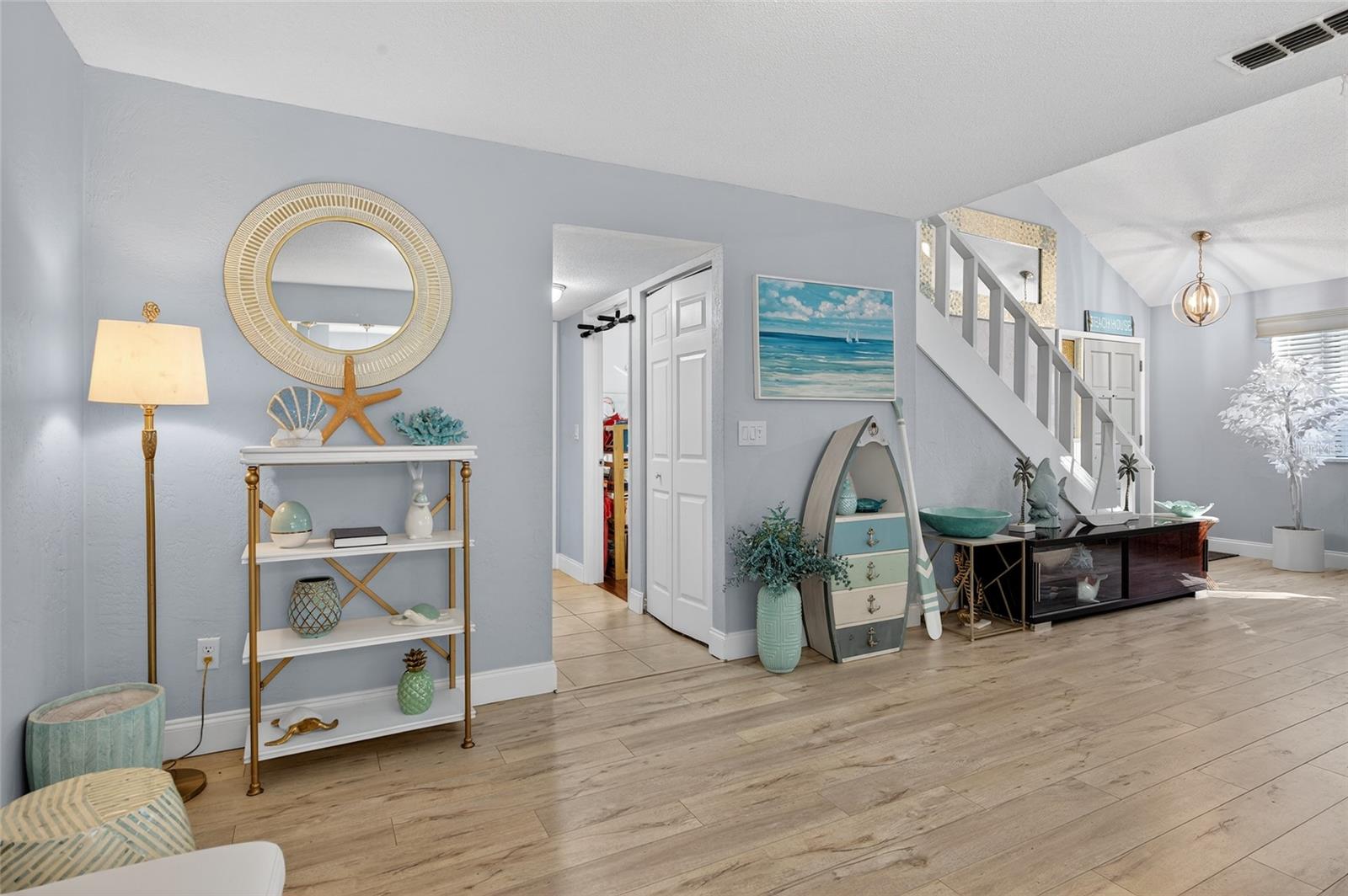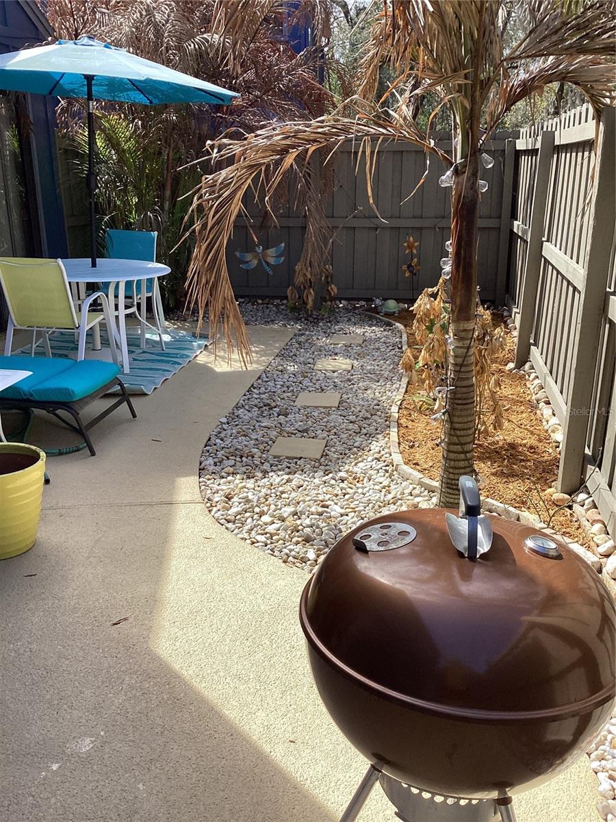 Beautifully Renovated 3 Bed 3 Bath townhome in Autumn Woods in The Trails of Ormond Beach. No Flood Zone. Property is on high ground. 2024 New Roof replaced by Roberson Roofing of Ormond Beach. Tastefully designed beach theme with Vaulted Ceilings in the Living Room and wood burning fireplace with no sunken living room floors. Kitchen has Quartz Countertops and green glass back splash with Breakfast Bar and built-in wine refrigerator. Sliding glass door opens to the Fenced and Landscaped Courtyard with new Fence and mature palm trees. Dry Sauna in the garage is negotiable. The Trails offers walking and biking trails, swimming pool, tennis courts and club house. Great location on Granada close to everything Ormond Beach and 10 minutes to the Beach. Must see to appreciate all the upgrades.