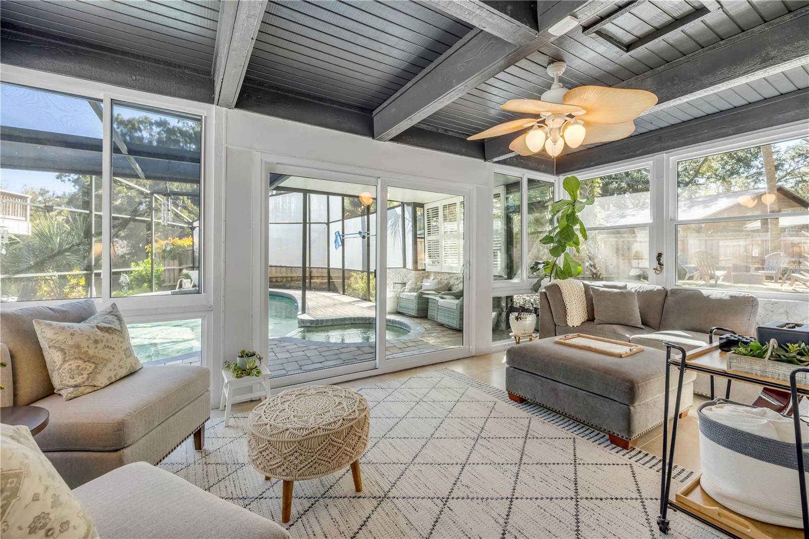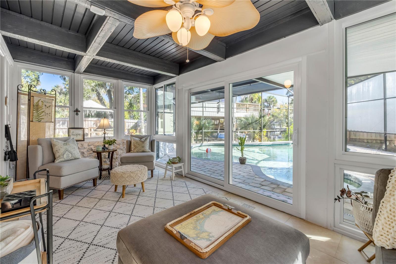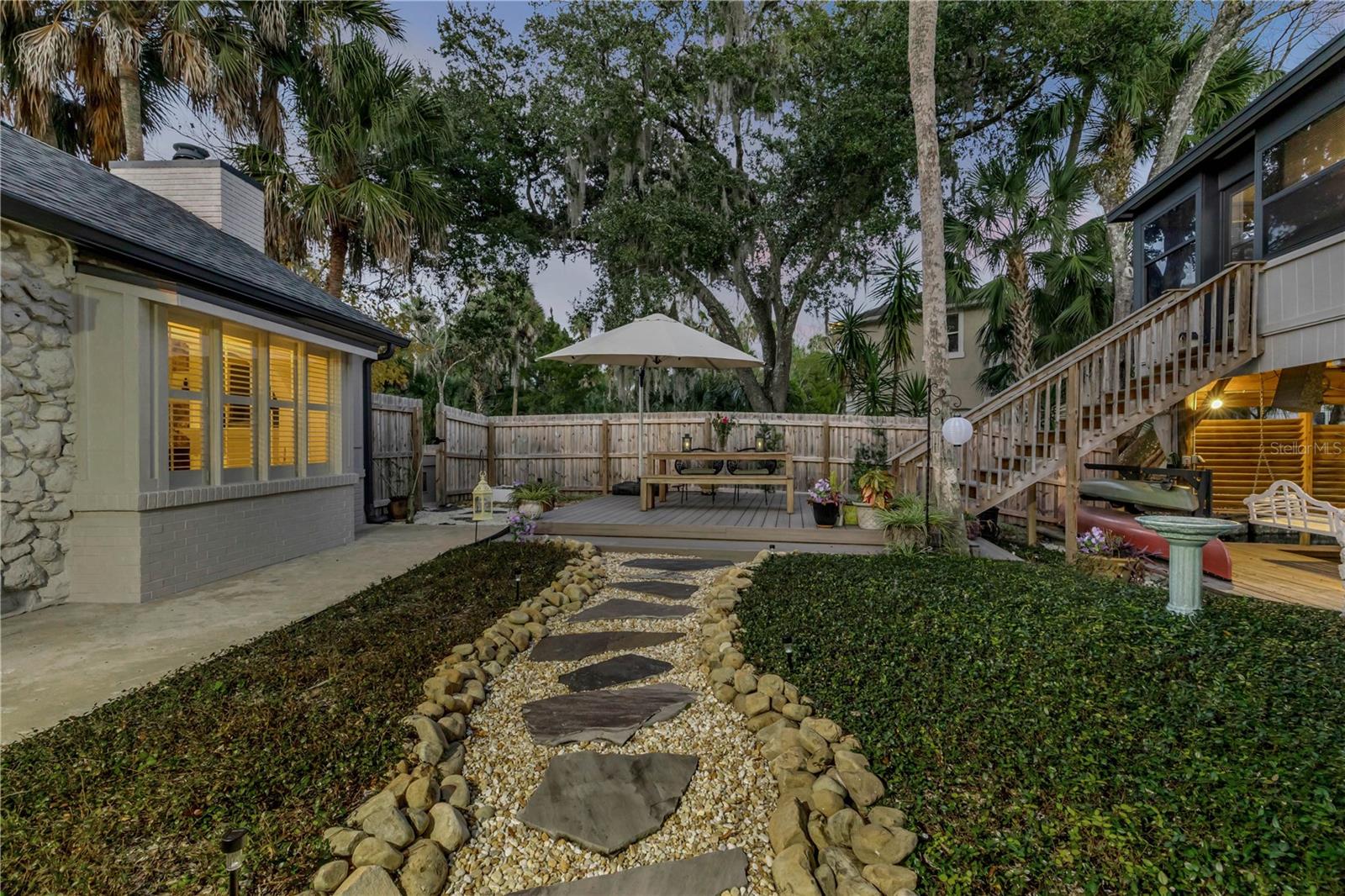 Location, Luxury & Move-In Ready! Step into a Florida lifestyle with a home that truly hugs and warms your soul. Nestled directly beside an 1,800-acre nature preserve, this lovely navigable waterfront, pool home is situated at the end of the canal on the Tomoka River with its own private dock, lift and boat house and is NOT in an HOA. Just 10 minutes to the Atlantic Ocean and 5 minutes to shopping, dining, schools and major roads, this charming and fully renovated house, will check all your boxes. A courtyard entry of brick pavers and an architectural stacked stone knee wall, provide a welcome curb appeal. Entering, you’ll appreciate the bright and spacious family room featuring custom built-ins, fireplace, plantation shutters and cozy window seating with views of the private backyard oasis and canal. Crown molding and custom millwork showcase the attention to detail in every room. The open concept living/dining area flows to a chef’s kitchen complete with granite countertops, custom cabinetry, a 6-burner gas range (electric stove) with pot filler, Jenn-Air cooktop, coffee bar, wine fridge and breakfast bar perfect for entertaining. A combination pantry and laundry is off the kitchen as well as a light-filled Florida room with 3 walls of windows and direct access to the screened pool/spa area and tranquil outdoor dining deck, boat house and waterfront. This home features 3 bedrooms and 2 fully renovated bathrooms. The 2nd floor primary suite includes an en-suite bath with a versatile flex room with its own A/C and offers the perfect space for an office, gym, or studio. Experience the magic of your own private ecosystem from the 2-story boat house, looking over the treetops at the still waters where birds, fish, manatees and kayakers play. The boat house is air conditioned with potential for additional living, office, art studio or recreational space and an outdoor balcony that’s perfect for watching sunsets or soaking in the stillness before the world wakes up. You’ll also find two outdoor firepits (gas & wood) on the property designed for restoration and connection. Have more than one boat or outdoor toys?? There’s a secure carport with concrete pad behind the double-gated fence. Additional details: Roof-2022, Boat Lift, Dock, Electrical Panel box–2023, Exterior Painted–2025….and so much more. Completely renovated, this is more than just a house, it’s your “Garden of Eden,” a place to call home that offers a new way of living. Pack your toothbrush and welcome to your new “Home Sweet Home.”