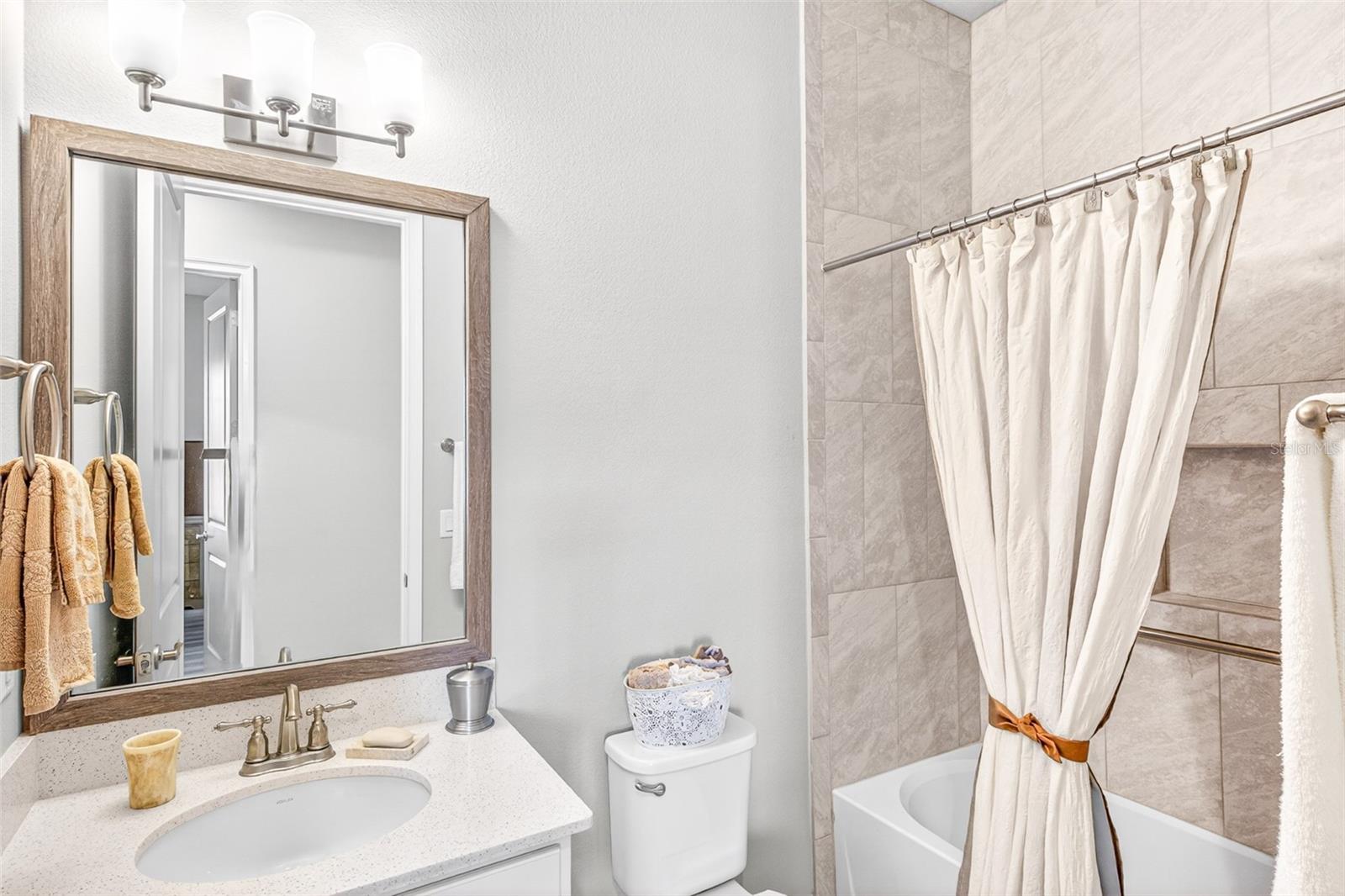 One or more photo(s) has been virtually staged. Picture-perfect pond and fountain views frame nearly every room of 10 Newhaven Lane, a beautifully appointed 2-bedroom, 2-bathroom Westlake townhome with a versatile flex room / bonus room, set behind the 24-hour manned gates of Plantation Bay Golf & Country Club in Ormond Beach, FL 32174. Built in 2021 with concrete-block-and-stucco construction, ENERGY STAR-qualified windows, a heat pump system, and a whole-house water softener, this 1,529-square-foot single-story home delivers true lock-and-leave Florida living without sacrificing style. Inside, an open great-room layout flows seamlessly between the kitchen, dining area, and living room, where a sectional sofa faces sliding glass doors that open to a sparkling community pond and fountain—an everyday view most buyers only dream of. The chef-friendly kitchen anchors the heart of the home with crisp white shaker cabinets, quartz countertops, a coordinating tile backsplash, stainless steel appliances including a French-door refrigerator, an undermount double sink, and ample prep space for entertaining. Plantation shutters and pendant lighting elevate the dining area, while wood-look tile flooring runs continuously through the main living spaces for easy upkeep. The flex room flexes hard: photographed once as a comfortable sitting room with a loveseat and armoire, and again as a polished home office with a writing desk framed by an arched entry—use it as a guest suite, gym, hobby studio, or den. Behind elegant double doors, the split-plan primary suite features a serene bedroom, two walk-in closets, and a spa-inspired ensuite with a dual-sink quartz vanity, framed mirrors, a designer mosaic-tile accent wall, an oversized walk-in shower with frameless glass, and a private water closet. A guest bedroom with plantation shutters and a full hall bath with a tile-surround tub-shower combo welcome visitors in style, and a dedicated laundry room with front-load washer and dryer plus storage cabinetry adds everyday convenience. Outside, a screened lanai stretches across the rear elevation, opening to direct views of the lake, fountain, and lush community lawns, while the two-car attached garage with paver driveway completes the curb appeal. The HOA covers irrigation, lawn care, landscaping, and roof maintenance, freeing residents to enjoy Plantation Bay's optional club memberships unlocking 45 holes of championship golf across Prestwick, Club de Bonmont, and the North course, a brand-new 40,500-square-foot Golf and Lifestyle Center, two resort-style pools, a 7,000-square-foot spa and fitness complex, 10 Har-Tru tennis courts, 10 pickleball courts, bocce, basketball, miles of bike-and-walk trails, and on-site dining. Zoned for Pathways Elementary, Ormond Beach Middle, and Seabreeze High, with Granada Boulevard's shops, Frappes North, Lulu's Oceanside Grill, and the world-famous hard-packed sands of Ormond Beach roughly 10 miles east via I-95, plus 15 minutes to Daytona Beach International Airport, 30 minutes to historic St. Augustine, and 60 minutes to Orlando, this turnkey Plantation Bay townhome offers buyers searching for homes for sale in Ormond Beach 32174, gated golf-community living, water-view properties near top-rated schools, or a maintenance-free Florida retreat the rare combination of newer construction, resort amenities, and that unforgettable pond-and-fountain backdrop—schedule your private tour and experience why 10 Newhaven Lane sets a new standard for coastal Ormond Beach living.