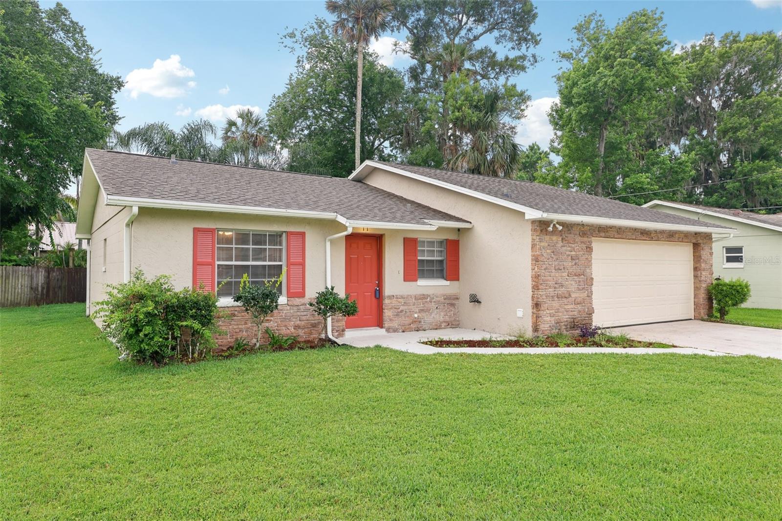 Welcome to this 3-bedroom, 2-bathroom single-family residence nestled in the desirable Laurel Oaks neighborhood of Ormond Beach. Built in 1981, this lovely home boasts a total heated area of 1,216 square feet and a spacious total area of 1,728 square feet, providing ample space for comfortable living. As you approach the home, you are greeted by a beautifully maintained front yard and a welcoming facade featuring a tasteful combination of stone and siding. The inviting front porch leads you into a bright and airy living space with fresh paint and updated flooring throughout. The open-concept living and dining area is perfect for entertaining, with large sliding glass doors that flood the space with natural light and provide easy access to the screened-in patio. This outdoor space is ideal for enjoying the Florida weather while maintaining privacy and comfort. The kitchen is well-appointed with ample cabinet storage, sleek countertops, and modern appliances, including a stainless-steel range. The layout ensures ease of cooking and meal preparation while staying connected with family and guests in the adjacent living area. The primary bedroom is a peaceful retreat with generous closet space and an en-suite bathroom featuring a walk-in shower. The additional two bedrooms are well-sized and share a modern, updated bathroom with contemporary fixtures and finishes. This home includes a two-car garage, offering plenty of storage space and convenience. The backyard is fenced, providing a safe area for pets to play and for family gatherings. Located in the friendly community of Ormond Beach, this property is close to local schools, parks, shopping, and dining options. With no HOA fees and a prime location in Volusia County, this home is an excellent opportunity for both families and investors alike. Don't miss out on making 11 Greenfern Circle your new home. Contact us today to schedule a private showing! ***HVAC = 7 yrs old, WATER HEATER = 2 yrs old, ROOF = 7 yrs old