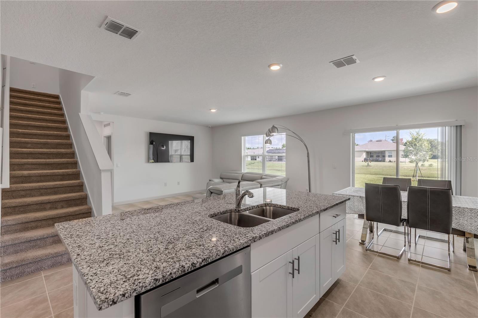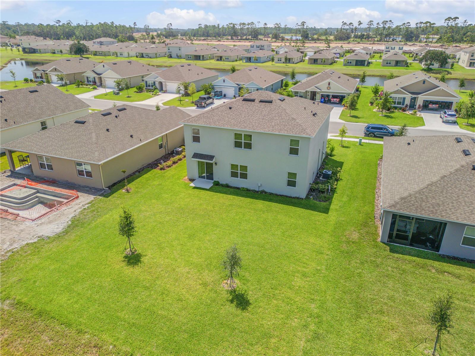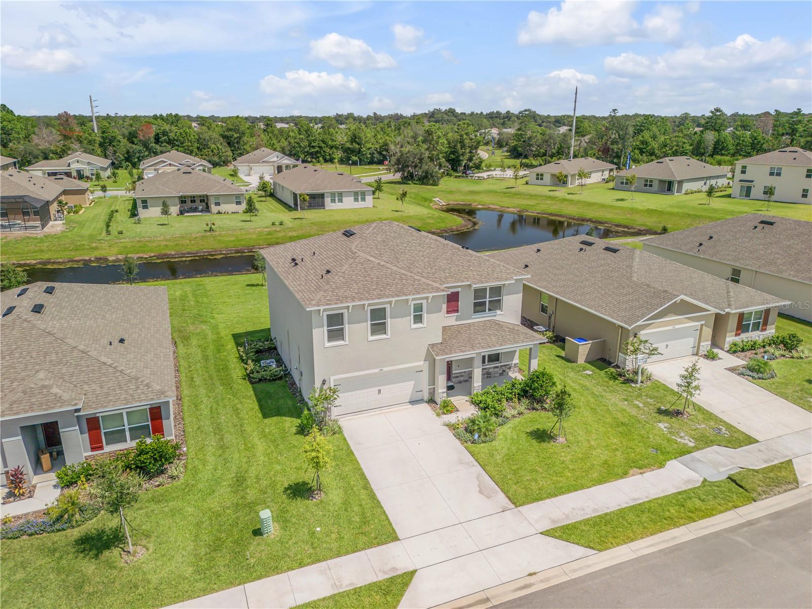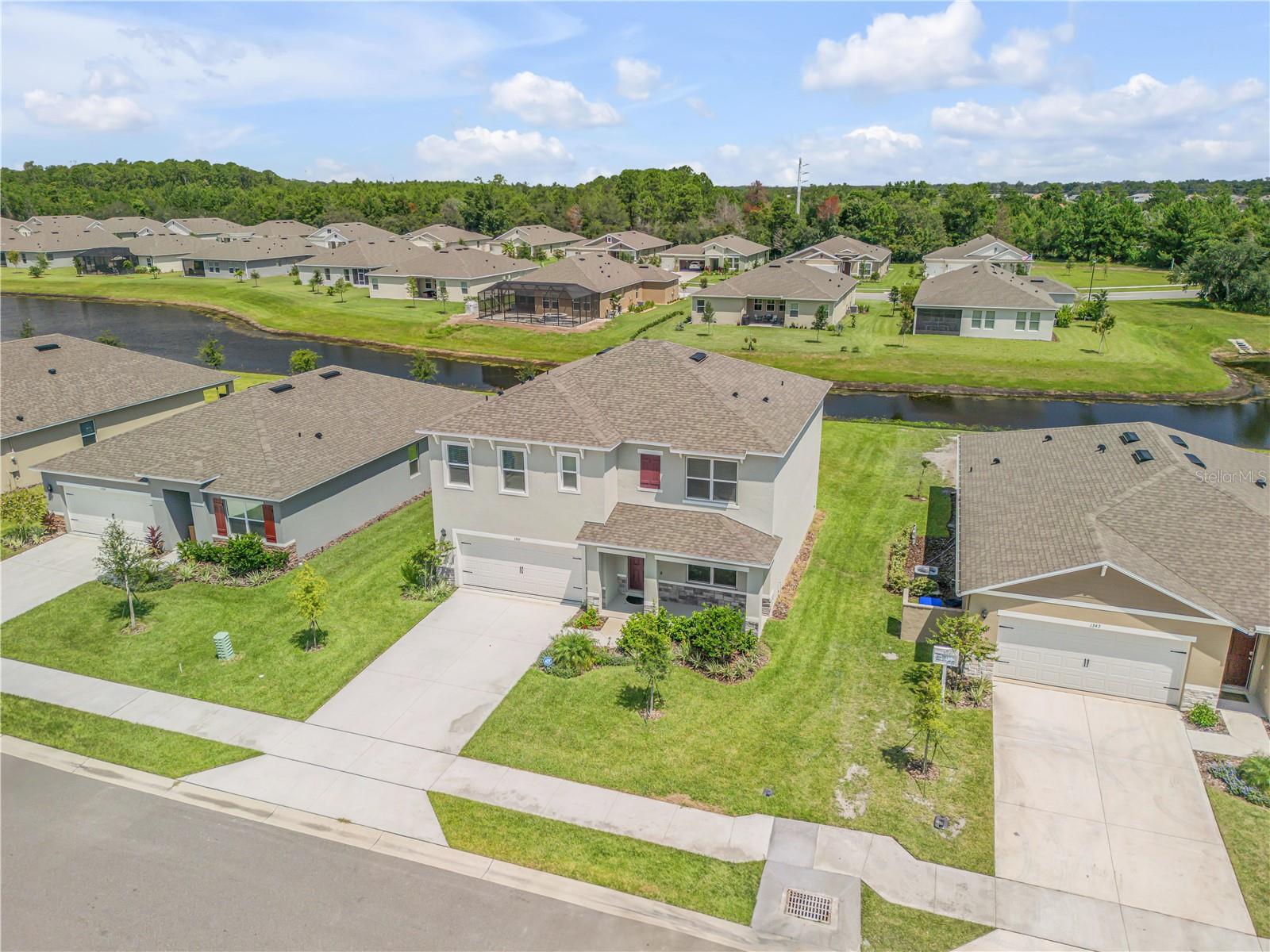 One or more photo(s) has been virtually staged. Discover your ideal home in the heart of Ormond Beach, Florida. Built in 2023, this exceptional 5-bedroom, 3-bathroom residence encompasses 2,601 sq ft of modern living space. The open-concept design seamlessly integrates the gourmet kitchen with the dining area and great room, bathed in natural light from large windows and sliding glass doors. The kitchen is a culinary haven, featuring a central island with bar seating, exquisite granite countertops, and top-of-the-line stainless-steel appliances. Upstairs, the large primary suite serves as a luxurious retreat, complete with a spacious walk-in closet and an elegant en suite bathroom. The primary bath is designed for comfort and convenience, featuring dual sinks and a walk-in shower. Step outside to your spacious backyard, offering a perfect setting for relaxation and entertaining, complete with picturesque views of the serene pond that borders the property. Located in the sought-after Halifax Plantation community, this home grants you access to an array of premium amenities, including a clubhouse, golf course, park, and pool, elevating your living experience to one of contemporary comfort and convenience.