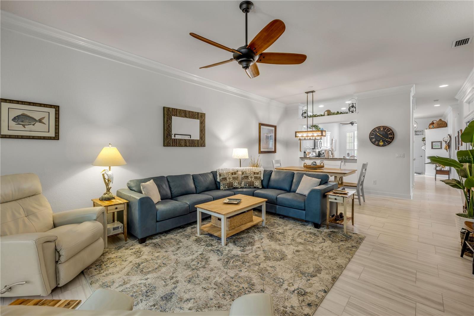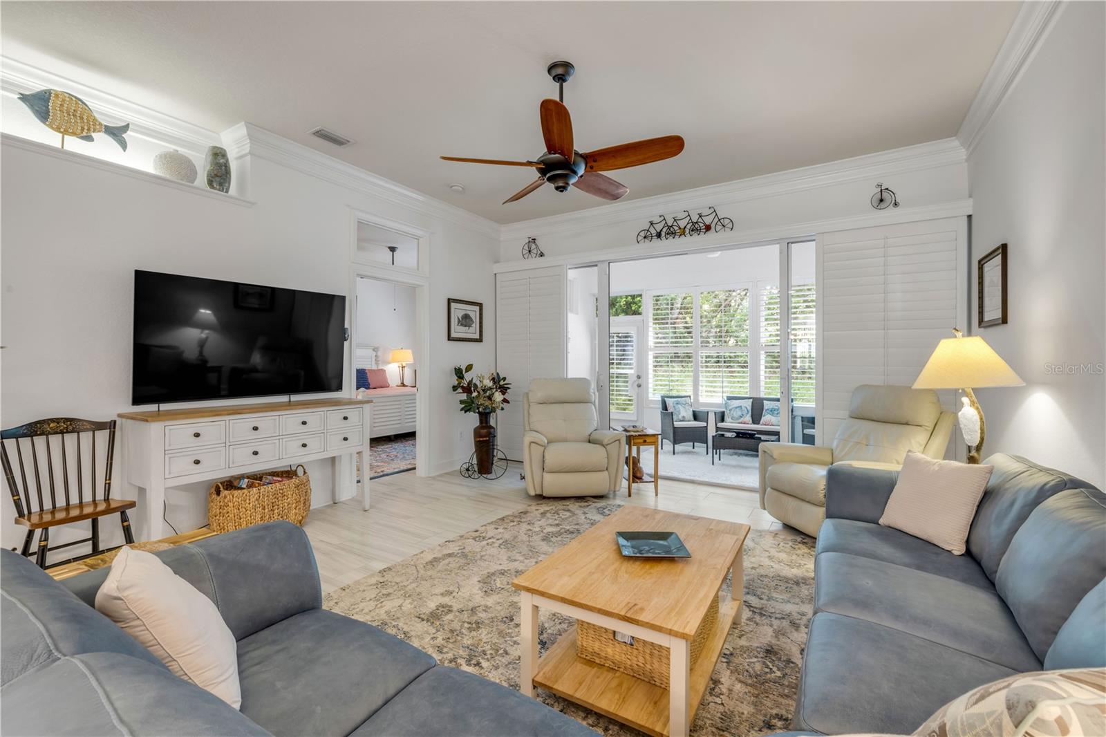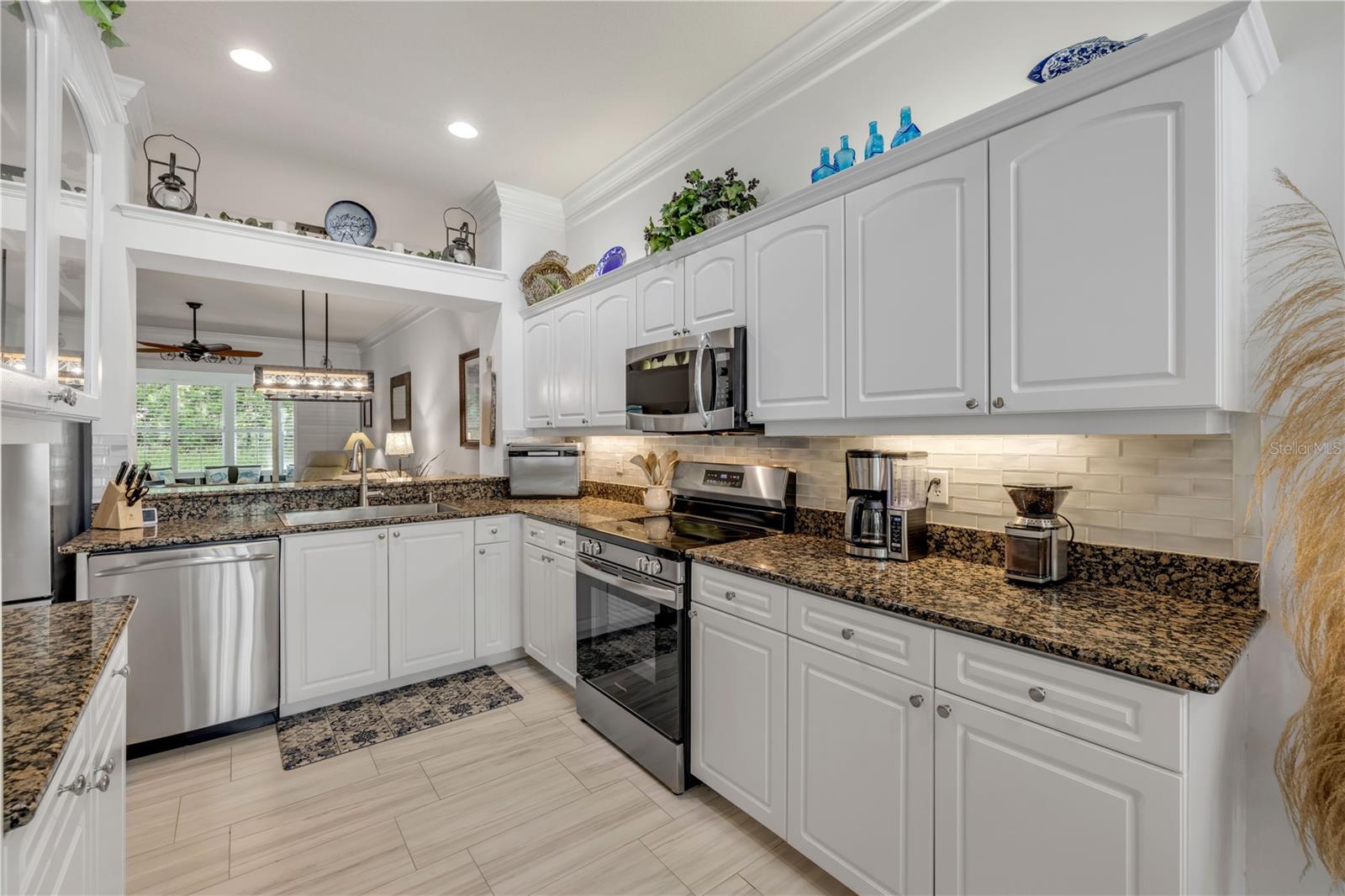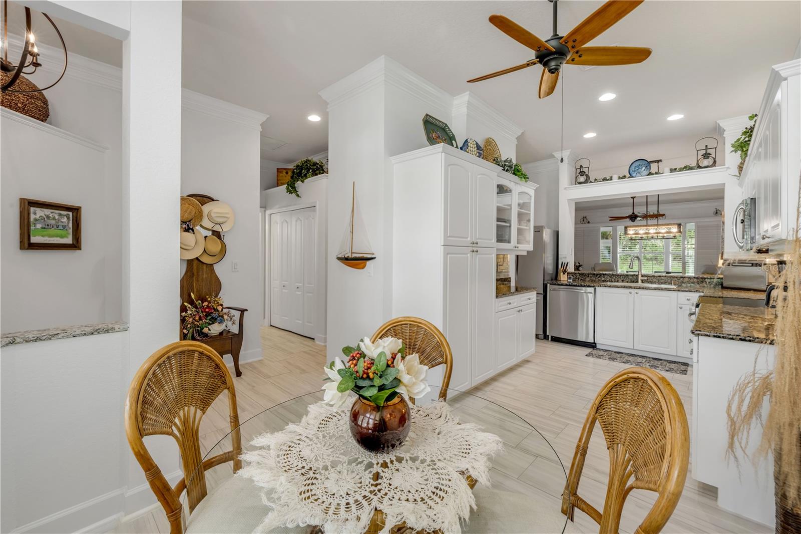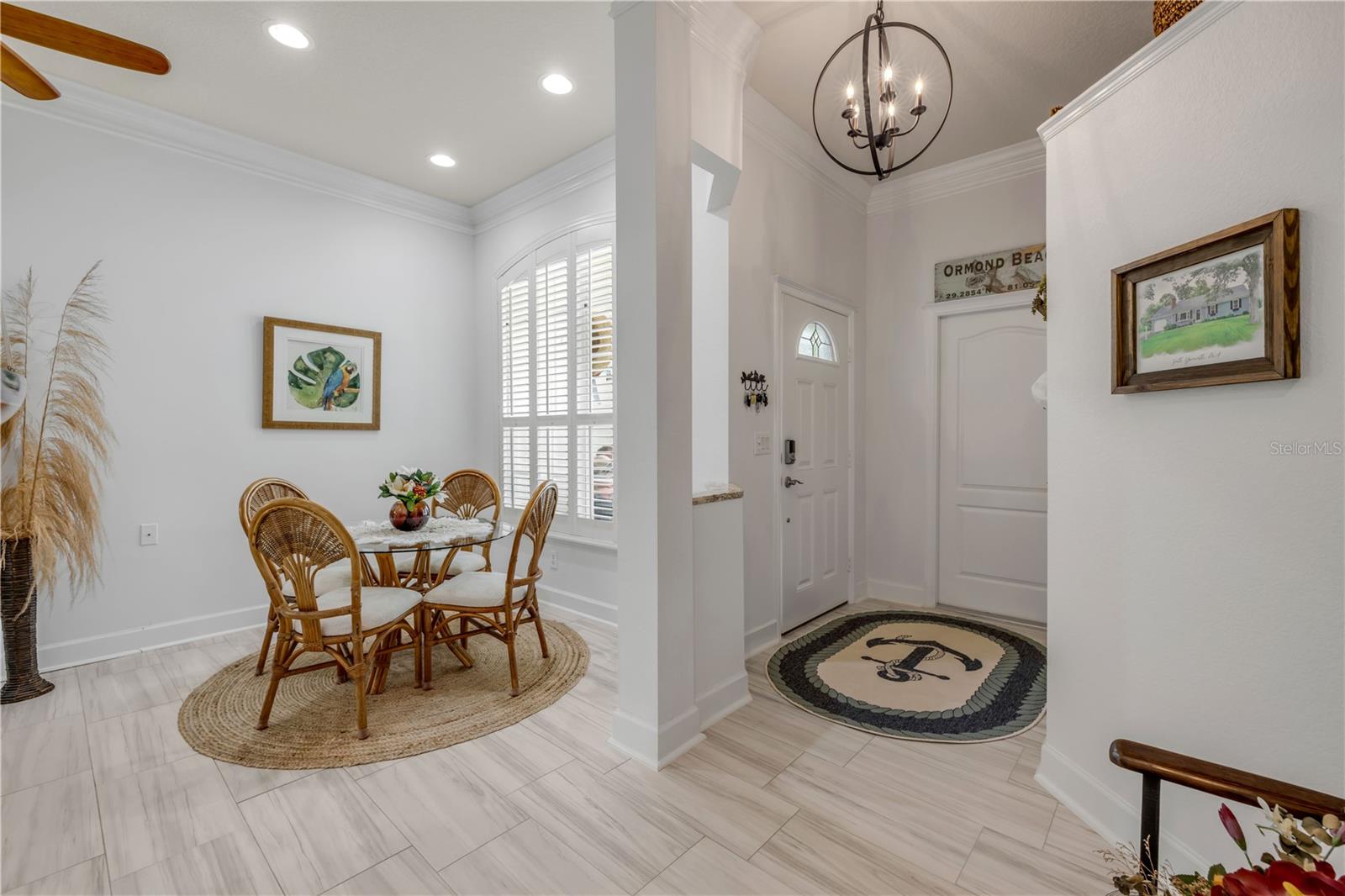 Welcome to Halifax Plantation, a sought-after community offering maintenance-free living with optional golf club membership, just minutes from the beach. This beautifully updated 3-bedroom, 2-bath home features modern finishes throughout, including tile flooring, crown molding, tall baseboards, and custom plantation shutters. The kitchen stands out with granite countertops, stainless steel appliances, recessed lighting, and custom glass-front cabinetry. Enjoy a peaceful spot to relax or entertain in the glass-enclosed back porch. The home also offers transom windows for added natural light, high ceilings, and an oversized two-car garage. Recent updates include a new roof (2024), new HVAC (2025), and upgraded fans and light fixtures. The HOA covers lawn care, exterior painting, and pest control. You're less than 10 minutes from beaches, restaurants, shopping, nature trails, fishing, and boating. Whether you're looking for a great starter home or a low-maintenance vacation home, this one truly shows like a model.