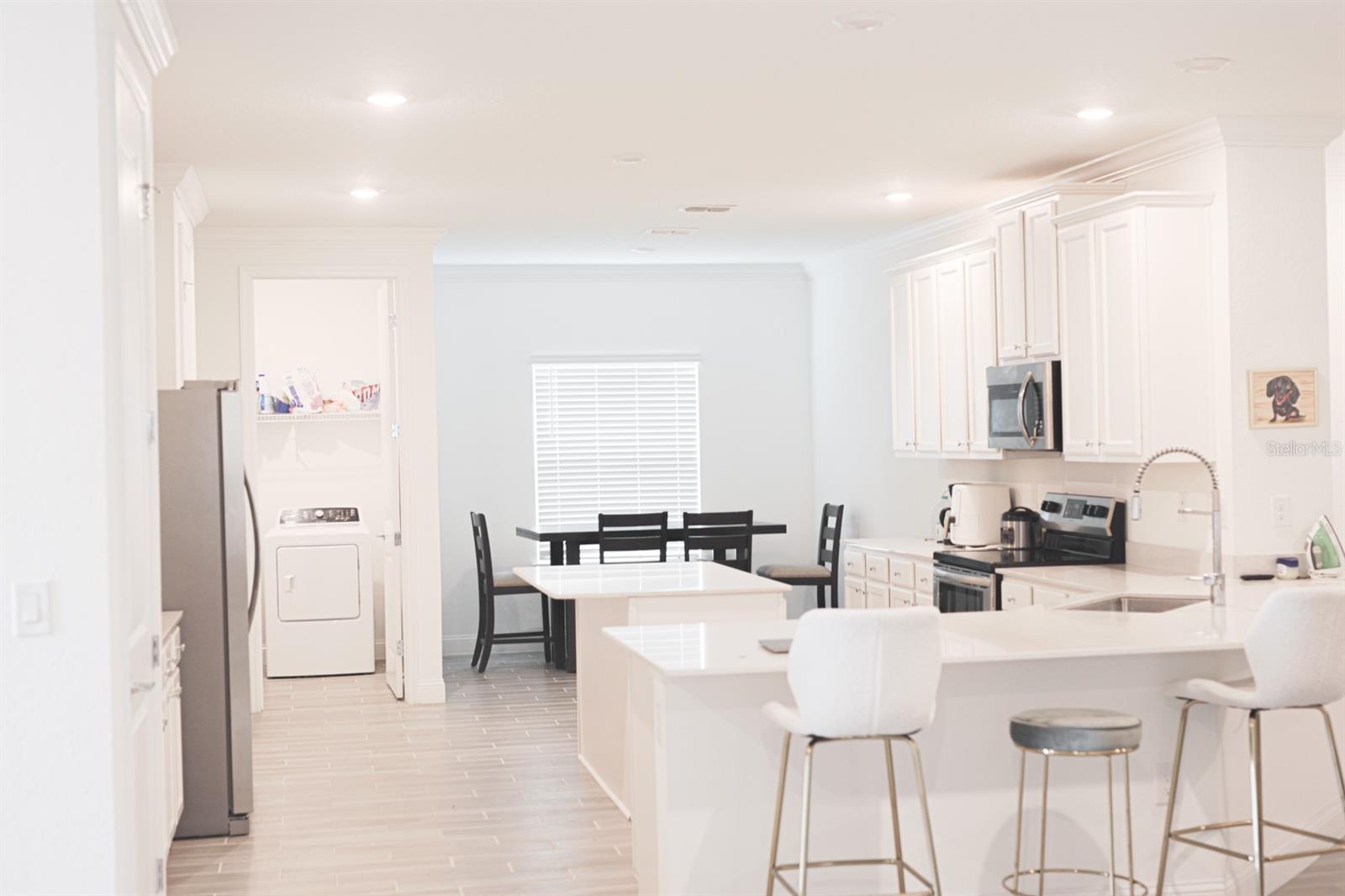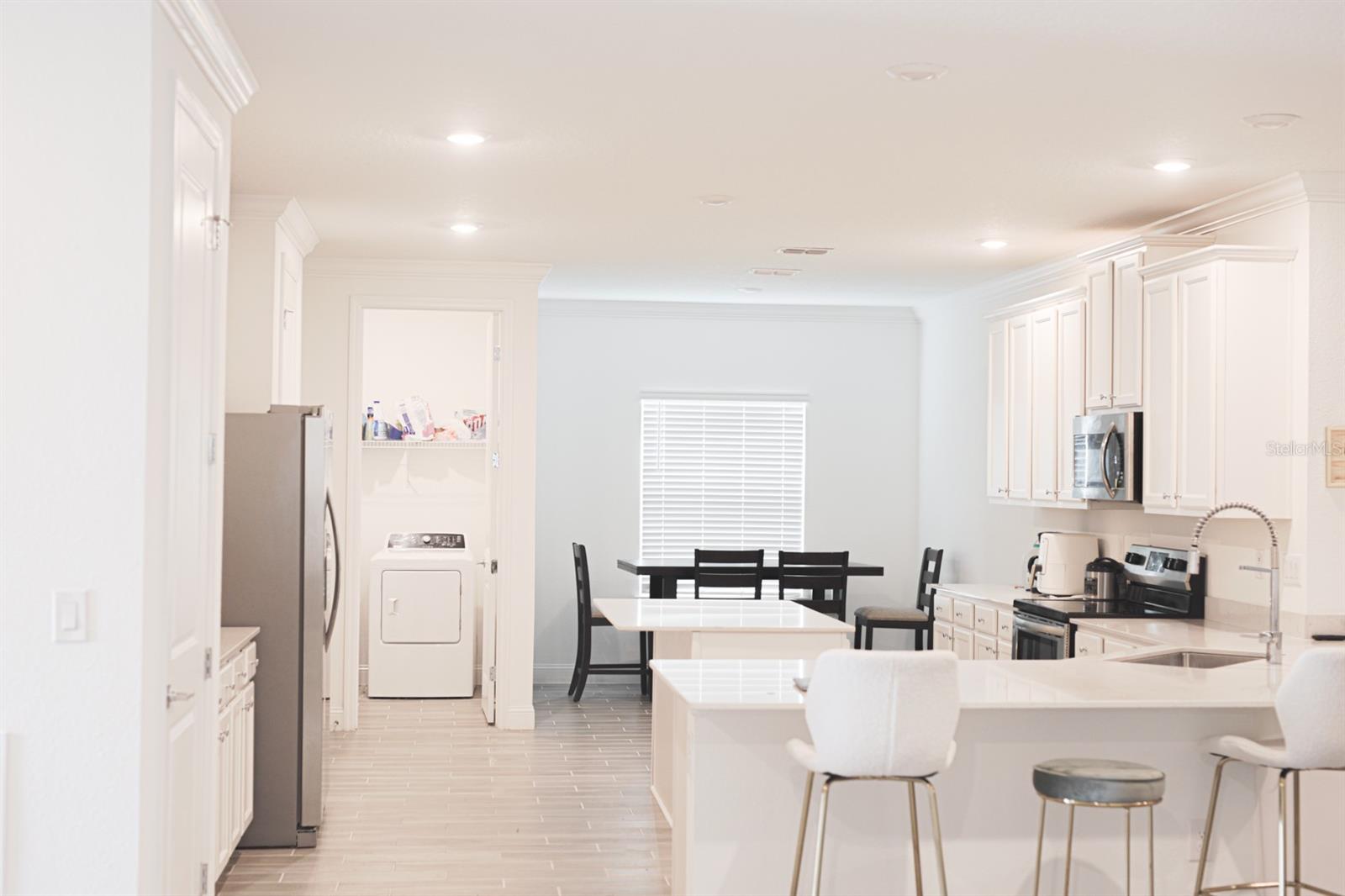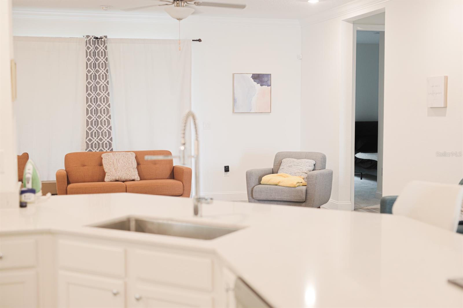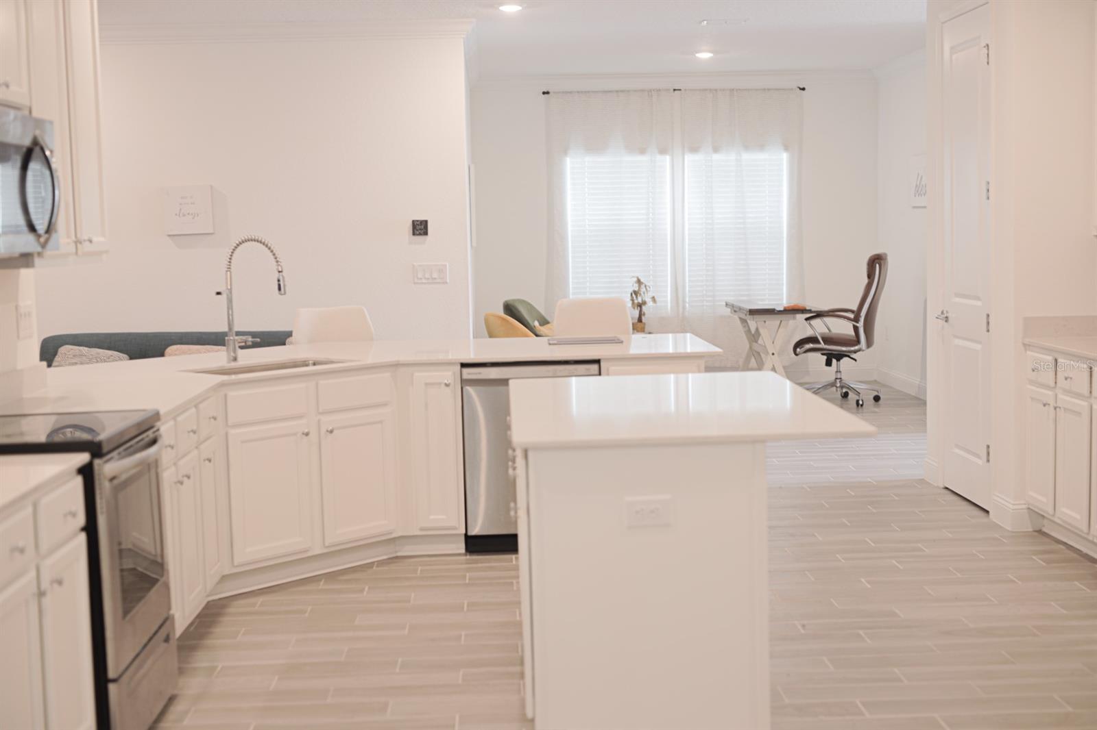 Spacious open concept floor plan with lots of natural light. Wood look flooring throughout all common areas, with carpet in the bedrooms. Quartz countertops throughout the home. Large and open kitchen features white cabinets, large under mount sink, stainless steel appliances, pantry, and breakfast area. Many cabinets with plenty of storage space. This home features two ensuite bedrooms with their own attached full baths in addition to two guest rooms. Primary bedroom has a walk-in closets and a lovely full bathroom with separated tub and walk-in shower. Other features include a laundry room and three car garage. This property includes a sprinkler system. Additionally, a new well was installed in September 2025,which reducing water costs.