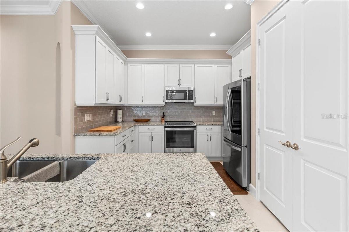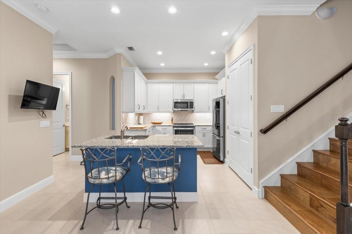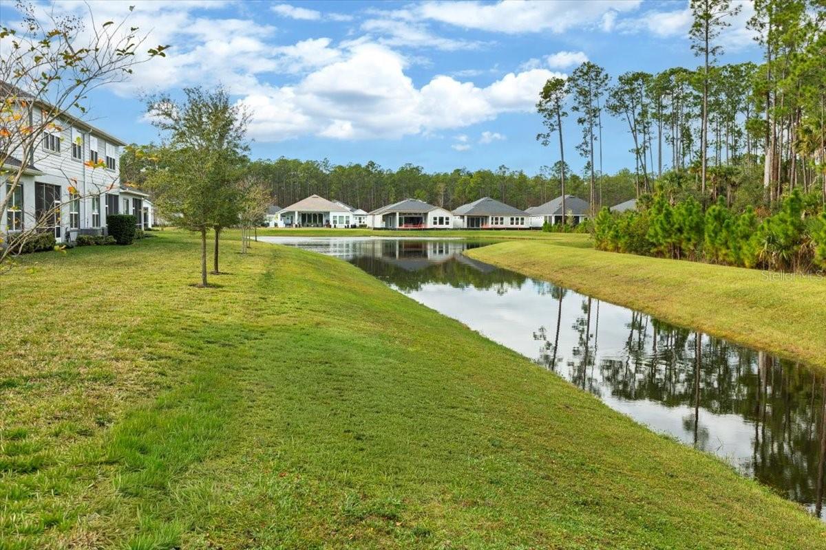 Welcome to 76 Longridge Lane in acclaimed Plantation Bay Golf & Country Club! This one-owner, move-in ready townhome offers 2,100+ sq ft of luxury living with 3 bedrooms, 3 full baths, and dual primary suites; perfect for multi-generational living or hosting guests. Boasting over $41K in additional custom upgrades sets the tone w/ crown molding, plantation shutters, designer finishes, and no carpet; tile and wood flooring thru-out. The gourmet island kitchen shines with granite countertops, 42” soft-close cabinetry, subway tile backsplash, GE appliances, LG refrigerator, and a spacious walk-in pantry. The open-concept great room boasts 10’ ceilings and a full wall of glass sliders to the rear leading to the screened lanai retreat with serene water and conservation views including a $35K premium upgraded homesite offering year-round privacy and shade. The downstairs primary suite features a spa-like bath with quartz dual vanity, frameless glass door walk-in shower, and custom ELFA walk-in closet. A beautiful wood stairway leads to the upstairs bonus room with trey ceiling and elevated outdoor views & offers endless possibilities, along with another luxurious private primary suite retreat. Extra features include electric blinds, epoxy-coated garage floors with overhead storage, salt free water purification system, ELFA custom closets throughout, quartz countertops in all baths, and sturdy concrete block & energy-efficient construction that keeps electric bills low. All this in a guard-gated, resort-style community with 45 holes of golf, a brand-new $30M clubhouse, pools, tennis, fitness center, and just 4 miles from the beach. Exterior maintenance is handled by the HOA, perfect for a lock-and-leave lifestyle! Welcome Home!!