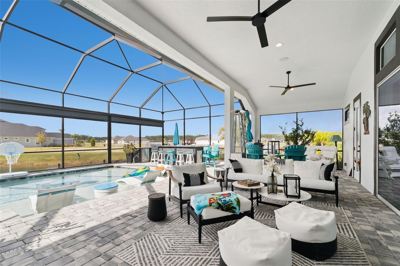 Welcome to a custom-built masterpiece of modern Florida living, completed in 2023 within the prestigious Plantation Bay gated community. Every detail of this one-story residence reflects thoughtful design and upscale living. Enjoy breathtaking water views, an entertaining pool with tanning ledge, fountains, and a heater/cooling unit, a summer kitchen, and a spacious outdoor living area that make this home perfect for gatherings and relaxation. An oversized 3-car garage with raised ceilings designed for car lifts, plus generous workshop space and built-in storage for tools and gear. Tucked away on a peaceful cul-de-sac, this home delivers both privacy and exceptional value. Inside, an open-concept layout welcomes you with natural light, a flex room for a home office, gym, or media space, and a chef-inspired kitchen with granite countertops, recessed lighting, a hidden pantry, and a large island overlooking the living room and pool. The primary suite is perfectly positioned for comfort, complemented by luxurious finishes and direct access to the lanai. Beyond the home, enjoy the Plantation Bay lifestyle—championship golf, tennis, pickleball, resort-style pools, fitness and spa facilities, and a brand-new clubhouse. With Flagler and Ormond Beaches, shops, and medical centers just minutes away, this home defines Florida luxury living at its best.