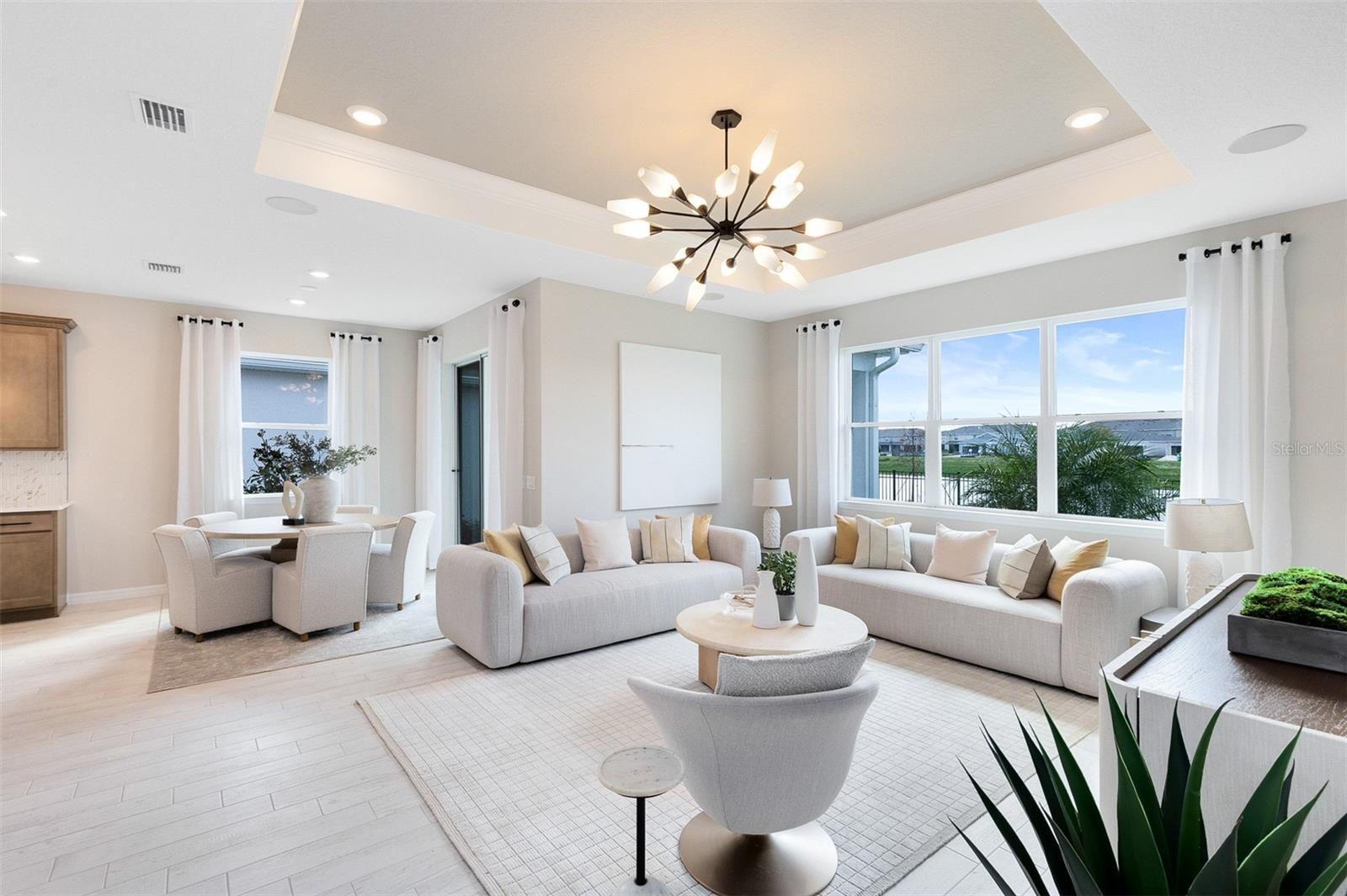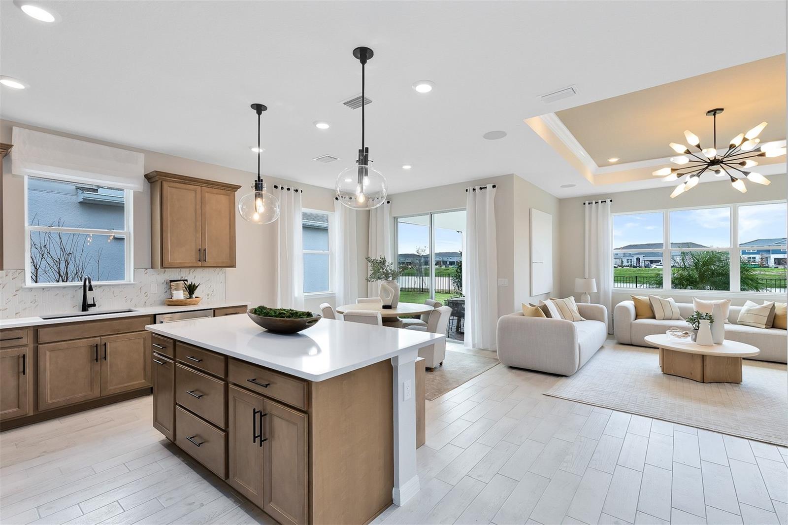 Under Construction. Uncover the pinnacle of golfing luxury and coastal lifestyle at Waterstone at Halifax Plantation. This new construction community in Ormond Beach, FL offers single-family homes crafted by Pulte Homes, boasting a variety of exquisite designs. Personalize your new home to reflect your unique style and needs. Located 1 mile off of I-95 and minutes from pristine beaches, embark on a journey where luxury meets tranquility. Welcome to your dream home – the Highgate by Pulte. This stunning new construction features 4 spacious bedrooms, 2 luxurious bathrooms, and a 2-car garage. With its open-concept design, the kitchen, café, and gathering room seamlessly flow together, leading to a serene covered lanai, perfect for entertaining or relaxing. The chef-inspired kitchen is equipped with Whirlpool stainless steel appliances – including a refrigerator, a convenient walk-in pantry, and a large center island ideal for meal prep and socializing. It’s complemented by elegant Dana Frost cabinetry, Lagoon quartz countertops, and a charming decorative tile backsplash, with a stainless-steel single bowl sink, upgraded faucet, and pendant lighting pre-wiring for added luxury. The private Owner’s Suite includes a large walk-in closet and a spa-like en suite bathroom featuring dual sinks set on a quartz-topped vanity, a private water closet, and a spacious frameless glass-enclosed shower. Three additional bedrooms, a second bathroom, and a well-appointed laundry room are thoughtfully positioned at the front of the home, ensuring ample privacy and space for the whole family. Every detail of this home has been carefully curated, from the Shaw wood-look luxury vinyl plank flooring in the Kitchen, gathering room, and cafe to the ceramic tile in the bathrooms and laundry to the plush, stain-resistant Shaw carpet in the bedrooms. Designer-curated finishes elevate every corner of this home, including chrome hardware and plumbing fixtures, 2” faux wood blinds, brand new Whirlpool washer and dryer, 8’ interior doors, and Sherwin Williams First Star Interior Wall Paint throughout. Enjoy the convenience of modern living with a smart thermostat, video doorbell, and LED down lightings. With its stunning design and thoughtful touches, the Highgate home provides the perfect blend of luxury and functionality for today’s lifestyle.