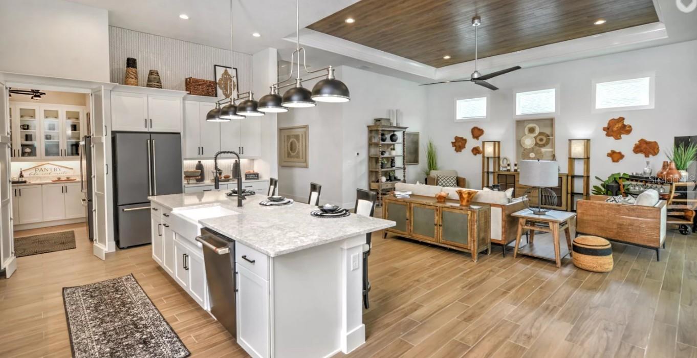 MODEL HOME FOR SALE WITH LEASEBACK OPPORTUNITY! Located in the gated, golf-course community of Plantation Bay, this award-winning Davenport model by ICI Homes offers 2,588 sq ft of stunning single-level living. Featuring 4 bedrooms, 3 baths, and a 3-car tandem garage, this home is designed for modern comfort and effortless entertaining. A grand foyer leads to an open kitchen, dining, and living area with high ceilings and designer finishes. The gourmet kitchen includes a walk-in butler's pantry, spacious island, and premium upgrades. Large sliders open to a covered lanai with pool and summer kitchen, creating seamless indoor-outdoor living. The private master suite impresses with a tray ceiling, oversized walk-in closet, and spa-like bath. Three additional bedrooms sit at the front of the home—two sharing a bath and one with a private bath, perfect for guests. This is a rare opportunity to own a beautiful professionally designed model home with a leaseback option—secure it today! Buyers are eligible to receive substantial discounts towards initiation fee for optional membership of choice provide buyers join within 30 days of closing.