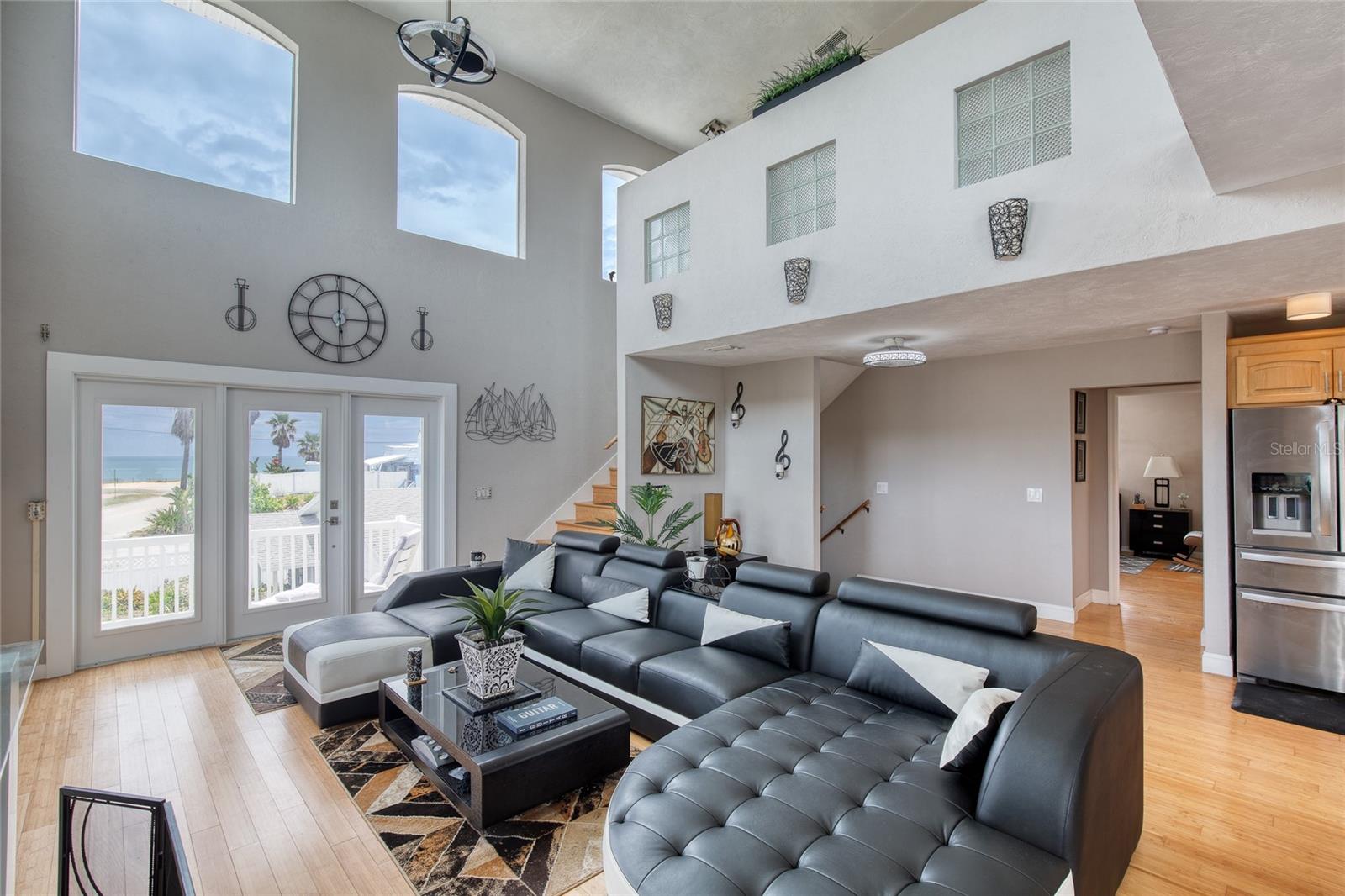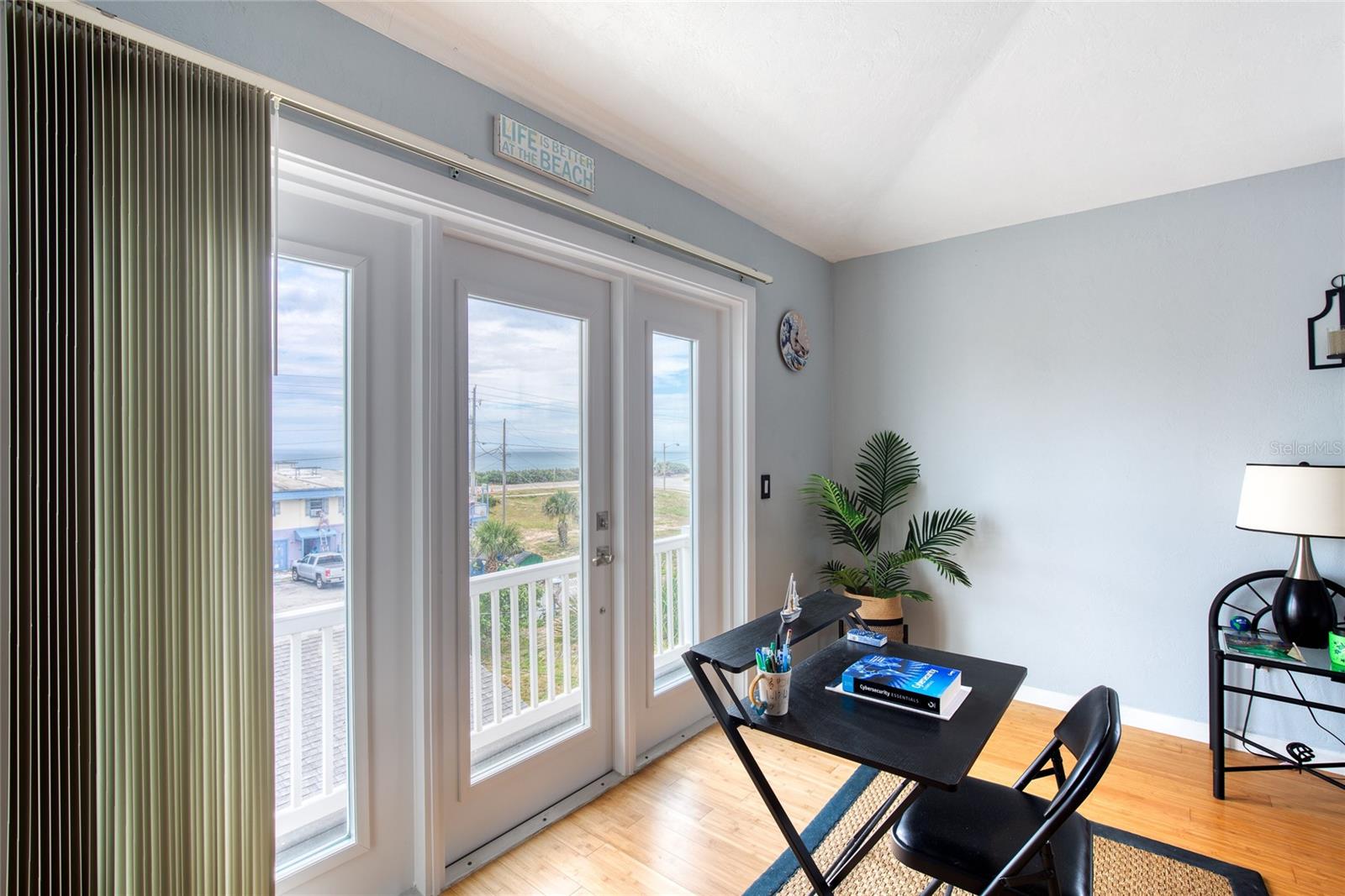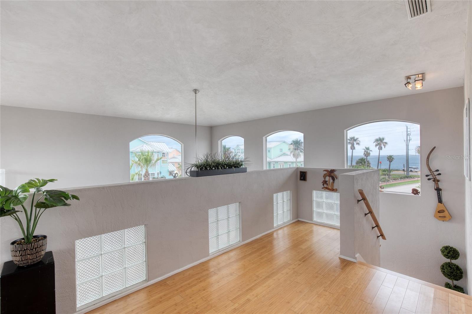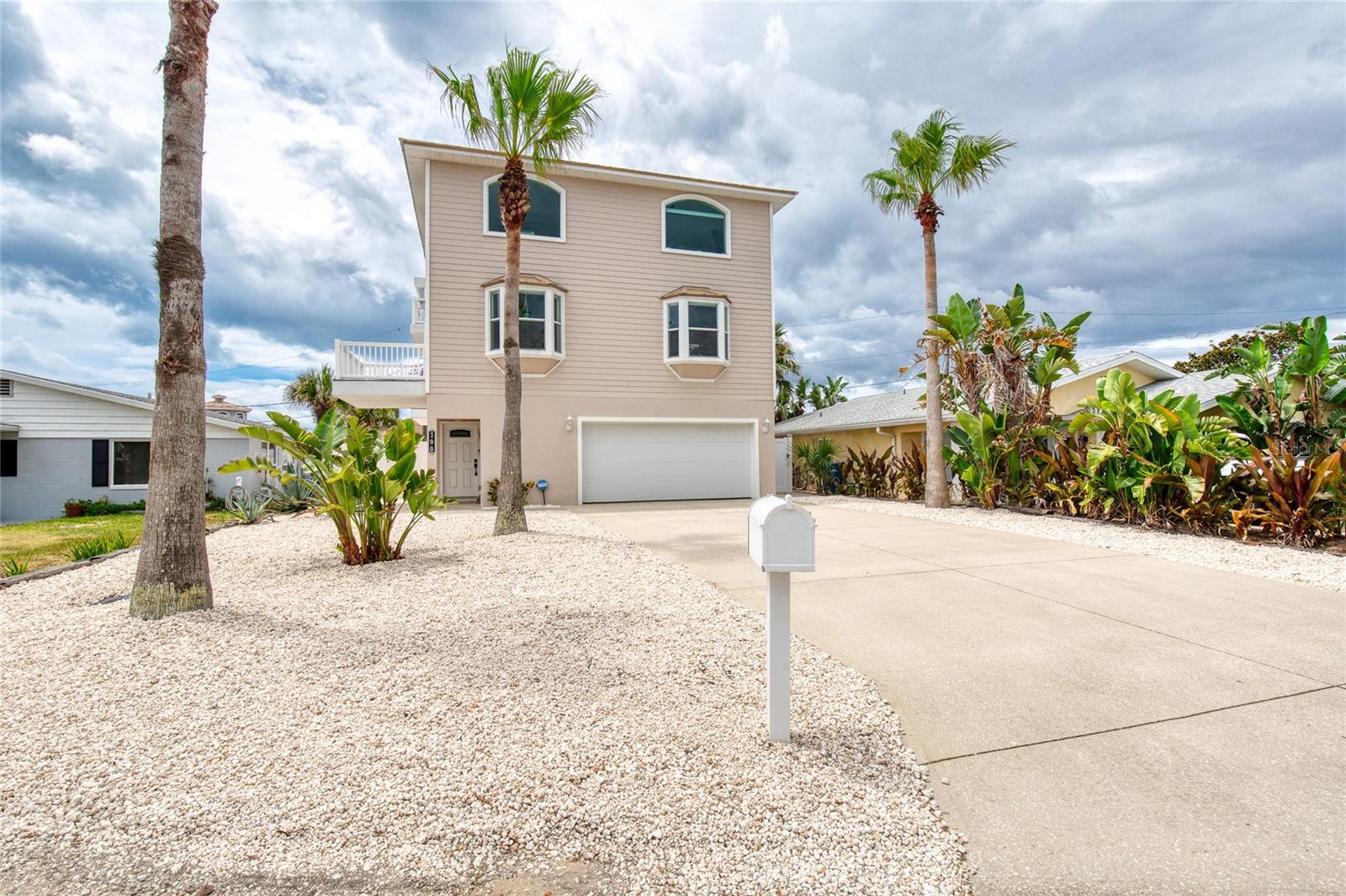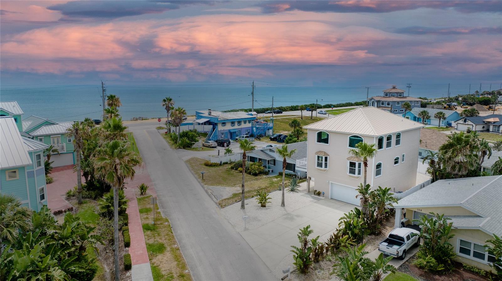 Million dollar views without the noise or traffic of A1A is what you will find in this updated one-of-a-kind 3 Bedroom 3.5 Bath 2500+ square foot three-story (with balconies) Key West Style Beach House. Each of the large bedrooms is on a separate level and includes its own ensuite bathroom. The open concept kitchen has custom cabinets, quartz countertops, a large island, and an eat-in dining area with a beautiful bay window view. There are amazing ocean and 360-degree views from the oversized windows in the third-floor loft & bedroom area, which also includes a peek of the Intracoastal. Enjoy your morning coffee watching the sunrise over the Atlantic Ocean.The front yard and fully fenced back yard have been completed with low-maintenance tropical desert landscaping. The covered backyard patio was designed and constructed in 2019. No need to worry, because this home has been meticulously maintained with a new metal roof and hurricane impact windows/doors including the garage. The A/C system was replaced in 2023 along with a water heater, dishwasher, ceiling fans and light fixtures. In 2024, the garage door opening system, microwave and electric range were replaced. Beautifully updated bamboo floors encompass the 2nd and 3rd floors. Square footage from tax rolls. All info intended to be accurate but can't be guaranteed.