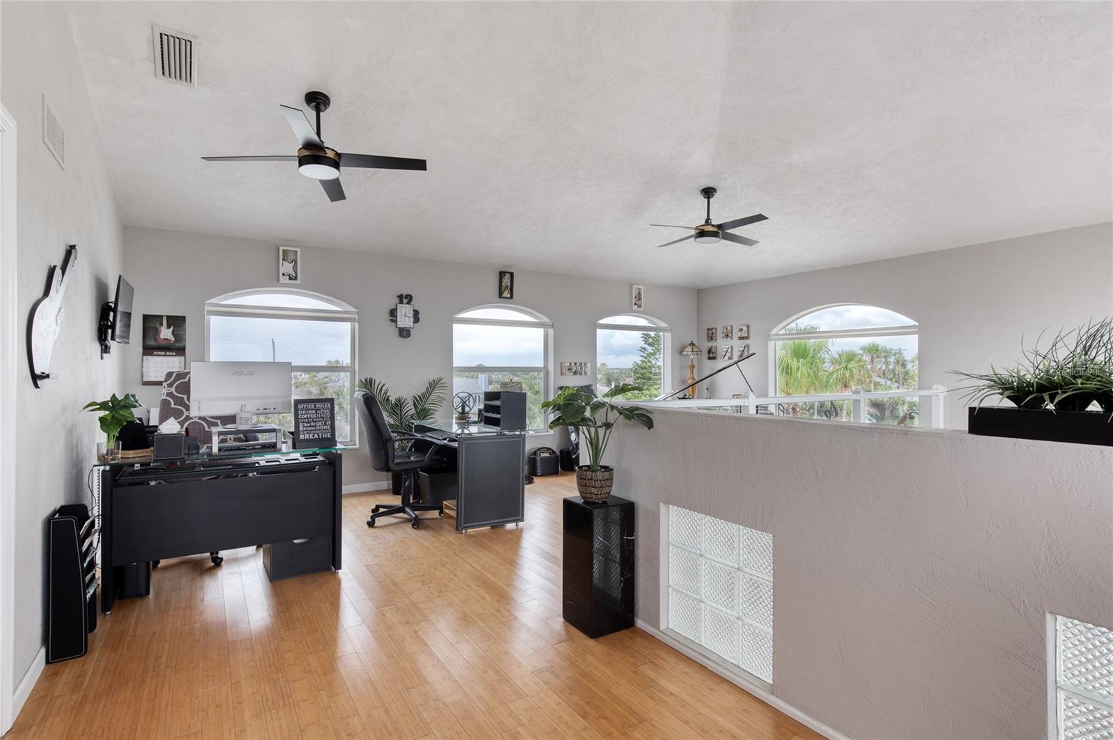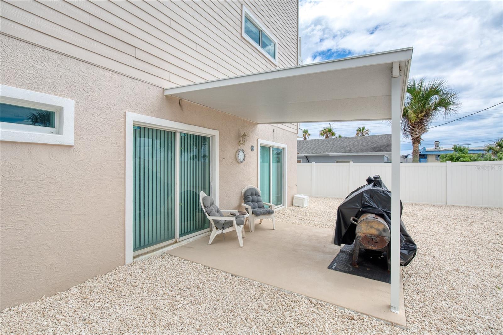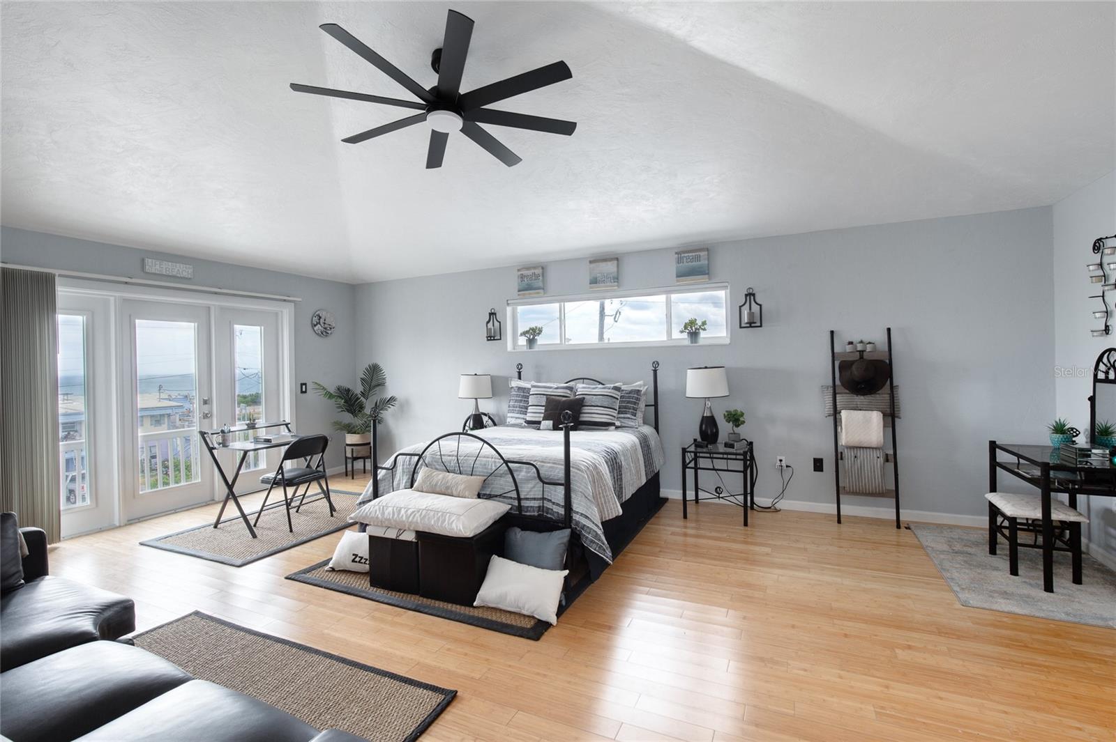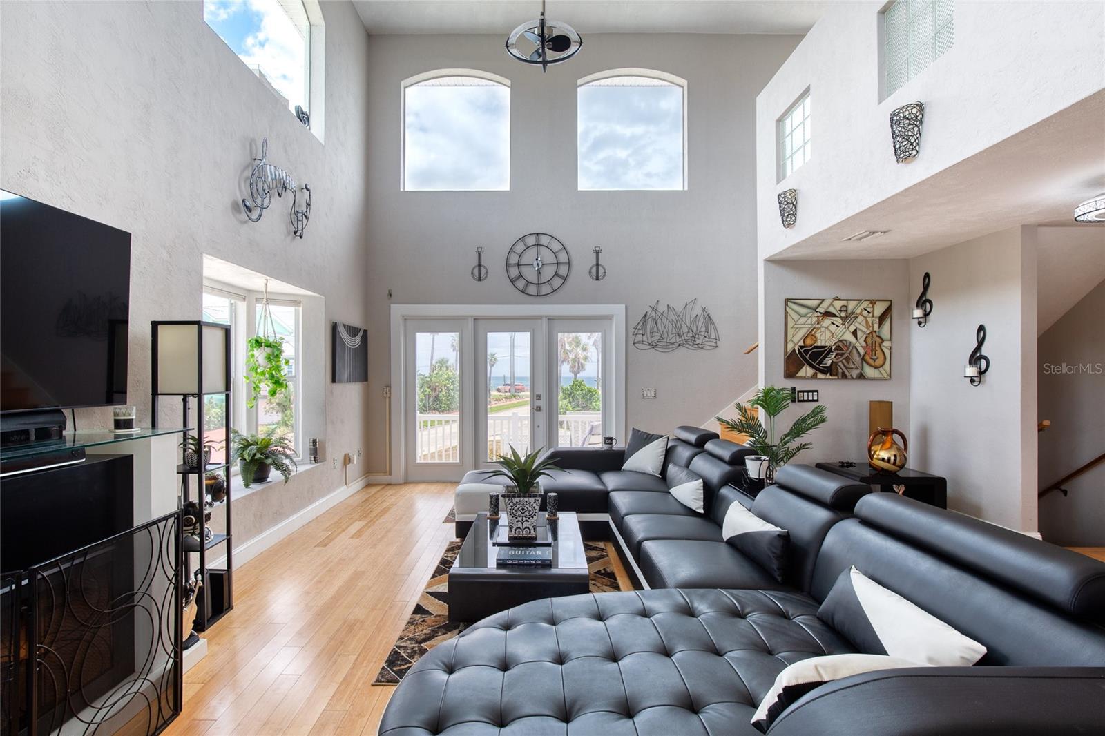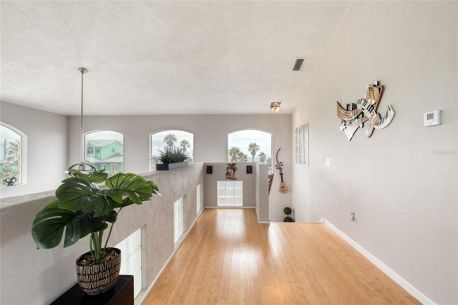 Million dollar views without the noise or traffic of A1A is what you will find in this updated one-of-a-kind 3 Bedroom 3.5 Bath 2500+ square foot three-story (with balconies) Key West Style Beach House. Each of the large bedrooms is on a separate level and includes its own ensuite bathroom. The open concept kitchen has custom cabinets, quartz countertops, a large island, and an eat-in dining area with a beautiful bay window view. There are amazing ocean and 360-degree views from the oversized windows in the third-floor loft & bedroom area, which also includes a peek of the Intracoastal. Enjoy your morning coffee watching the sunrise over the Atlantic Ocean.The front yard and fully fenced back yard have been completed with low-maintenance tropical desert landscaping. The covered backyard patio was designed and constructed in 2019. No need to worry, because this home has been meticulously maintained with a new metal roof and hurricane impact windows/doors including the garage. The A/C system was replaced in 2023 along with a water heater, dishwasher, ceiling fans and light fixtures. In 2024, the garage door opening system, microwave and electric range were replaced. Beautifully updated bamboo floors encompass the 2nd and 3rd floors. Square footage from tax rolls. All info intended to be accurate but can't be guaranteed.