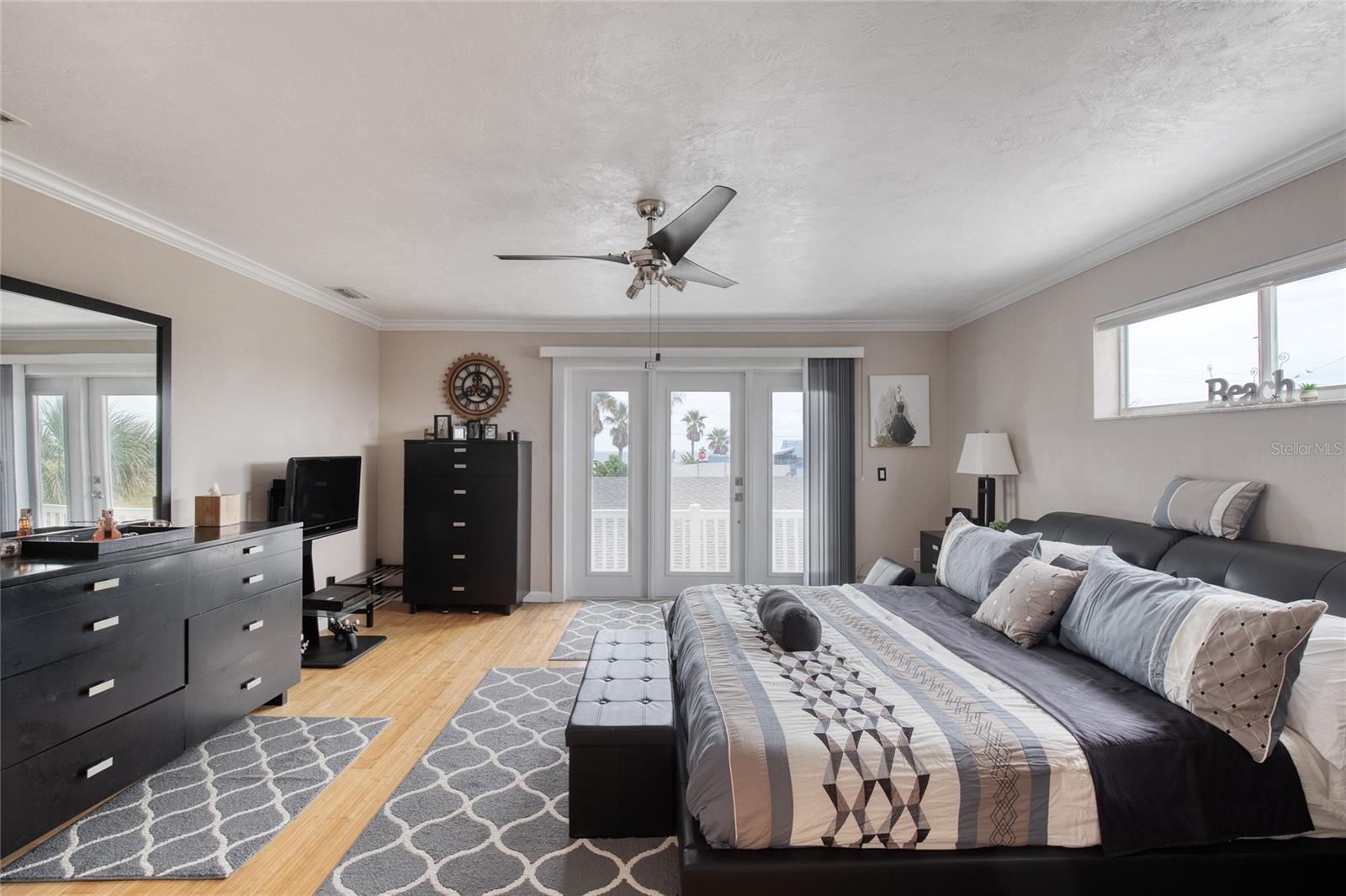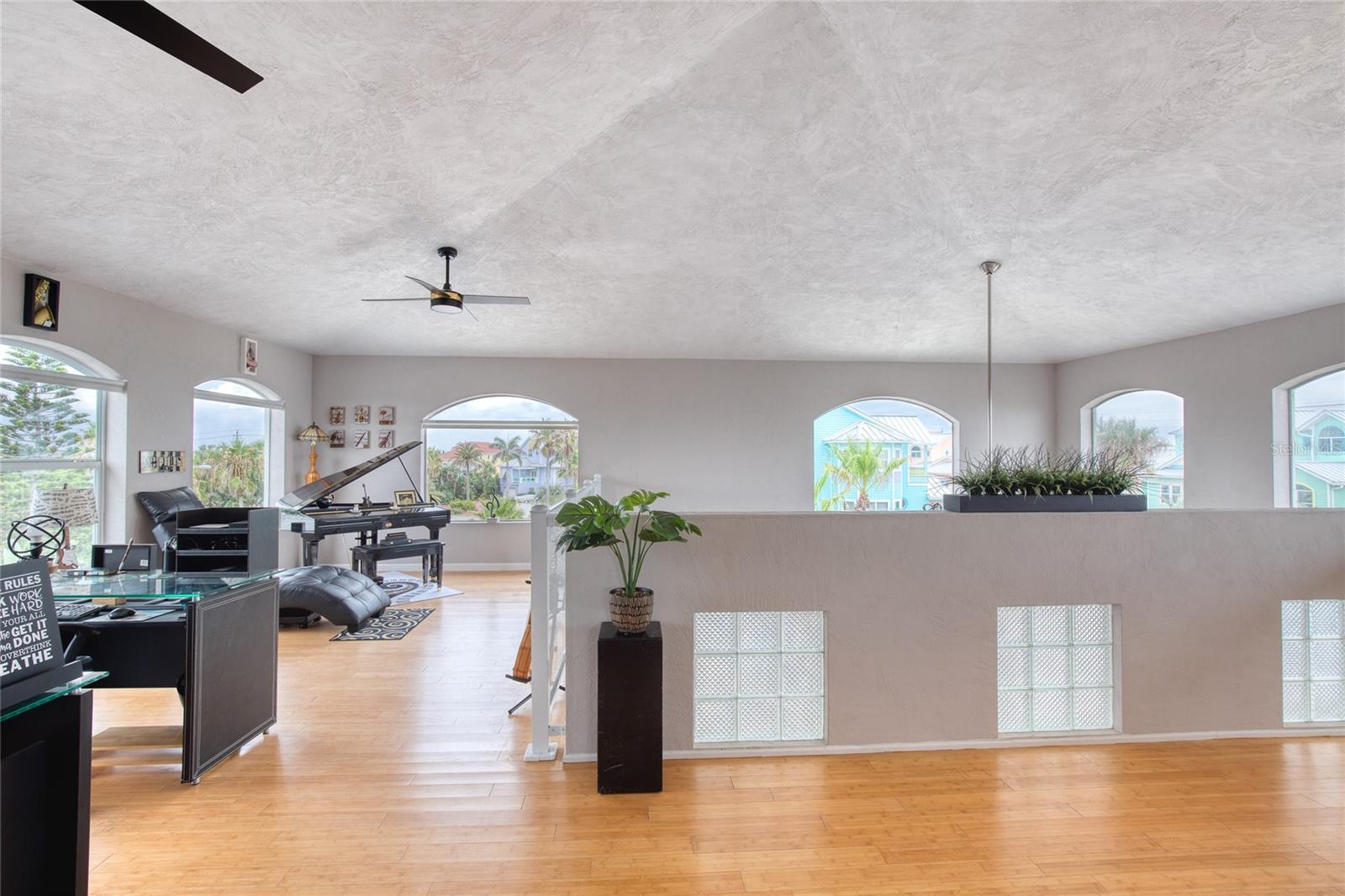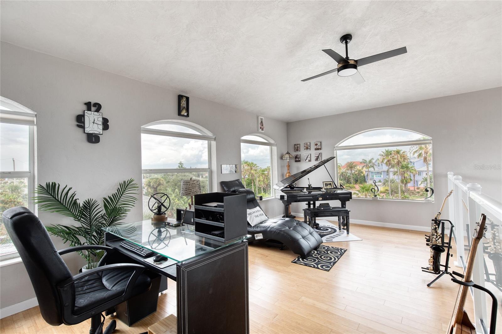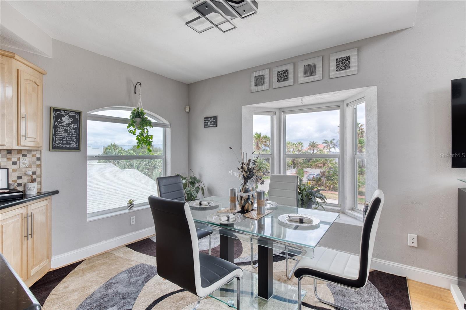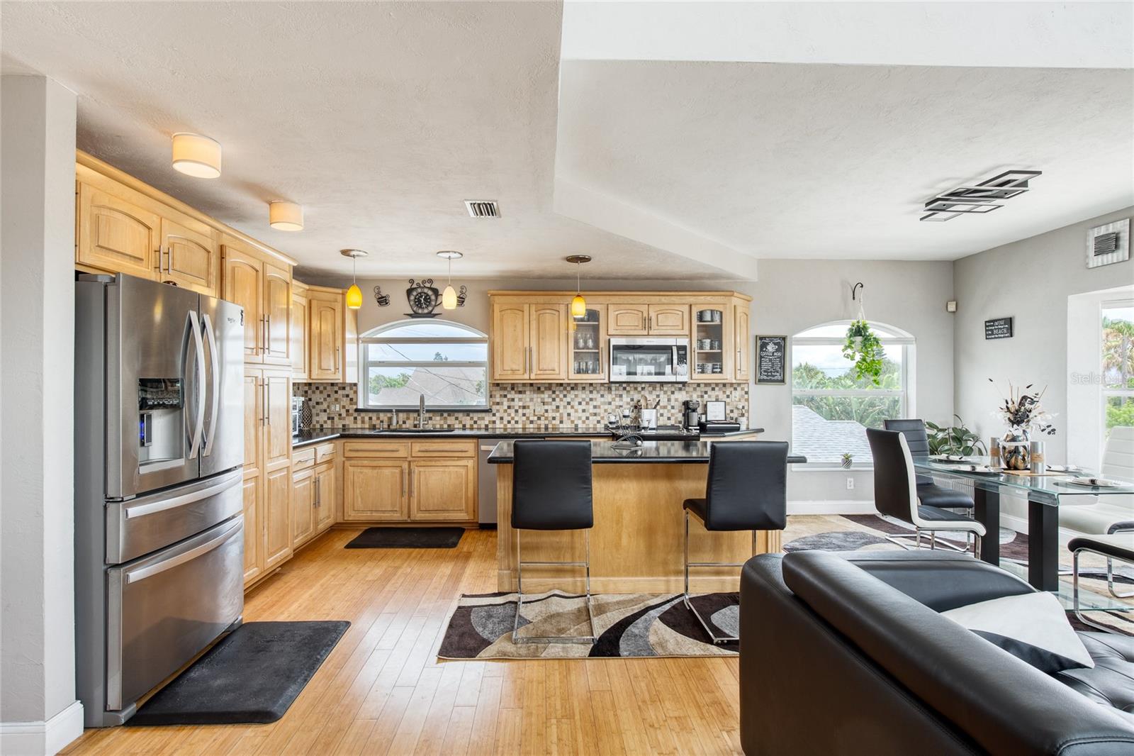 Million dollar views without the noise or traffic of A1A is what you will find in this updated one-of-a-kind 3 Bedroom 3.5 Bath 2500+ square foot three-story (with balconies) Key West Style Beach House. Each of the large bedrooms is on a separate level and includes its own ensuite bathroom. The open concept kitchen has custom cabinets, quartz countertops, a large island, and an eat-in dining area with a beautiful bay window view. There are amazing ocean and 360-degree views from the oversized windows in the third-floor loft & bedroom area, which also includes a peek of the Intracoastal. Enjoy your morning coffee watching the sunrise over the Atlantic Ocean.The front yard and fully fenced back yard have been completed with low-maintenance tropical desert landscaping. The covered backyard patio was designed and constructed in 2019. No need to worry, because this home has been meticulously maintained with a new metal roof and hurricane impact windows/doors including the garage. The A/C system was replaced in 2023 along with a water heater, dishwasher, ceiling fans and light fixtures. In 2024, the garage door opening system, microwave and electric range were replaced. Beautifully updated bamboo floors encompass the 2nd and 3rd floors. Square footage from tax rolls. All info intended to be accurate but can't be guaranteed.