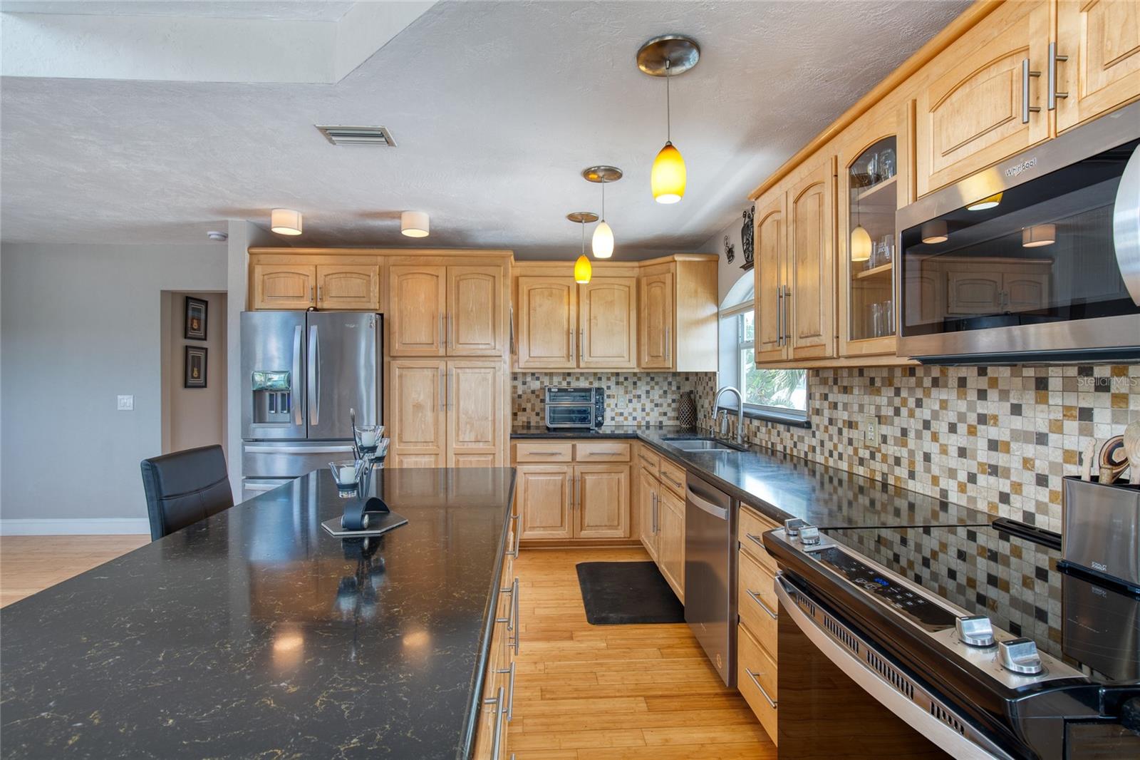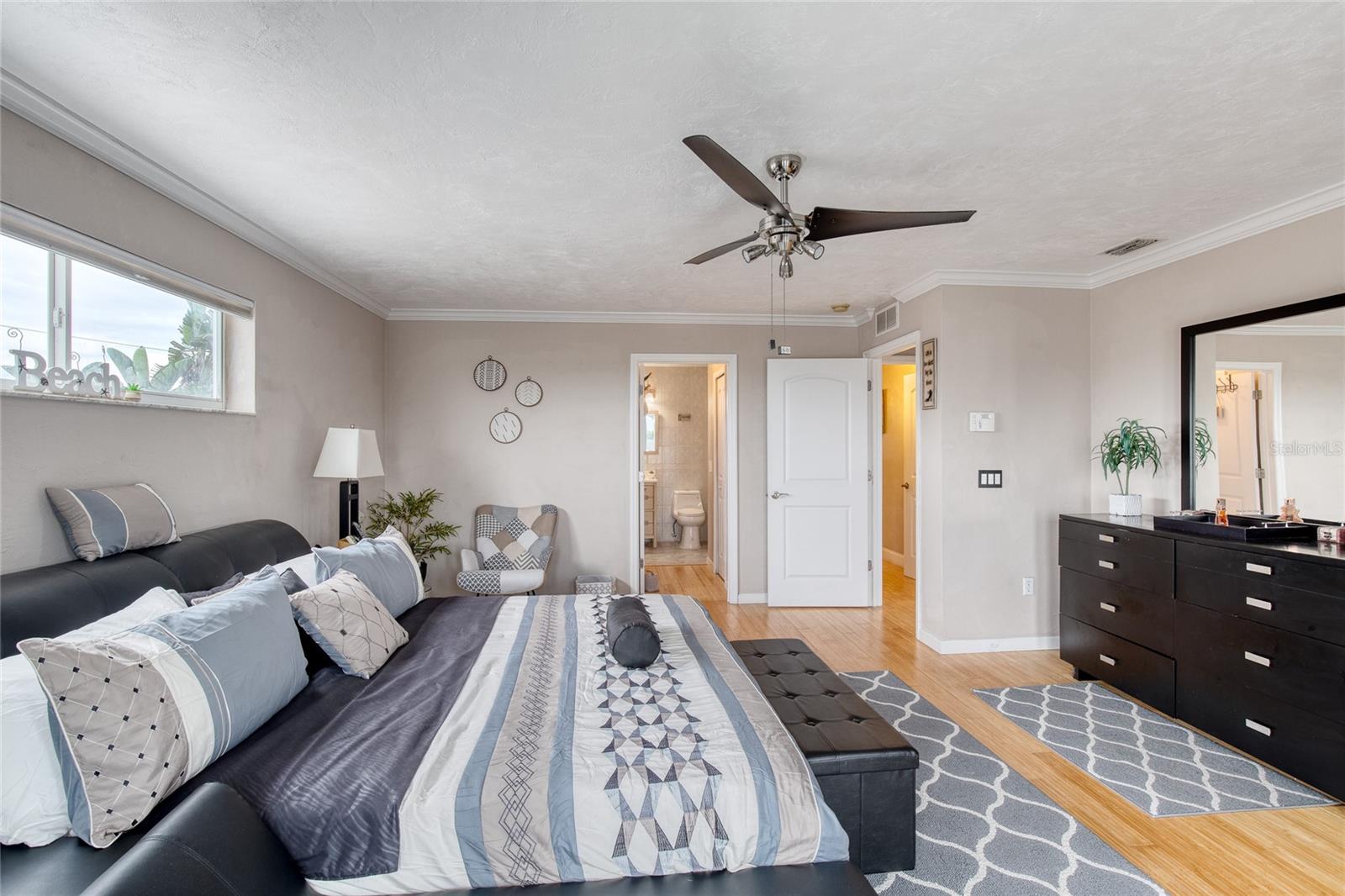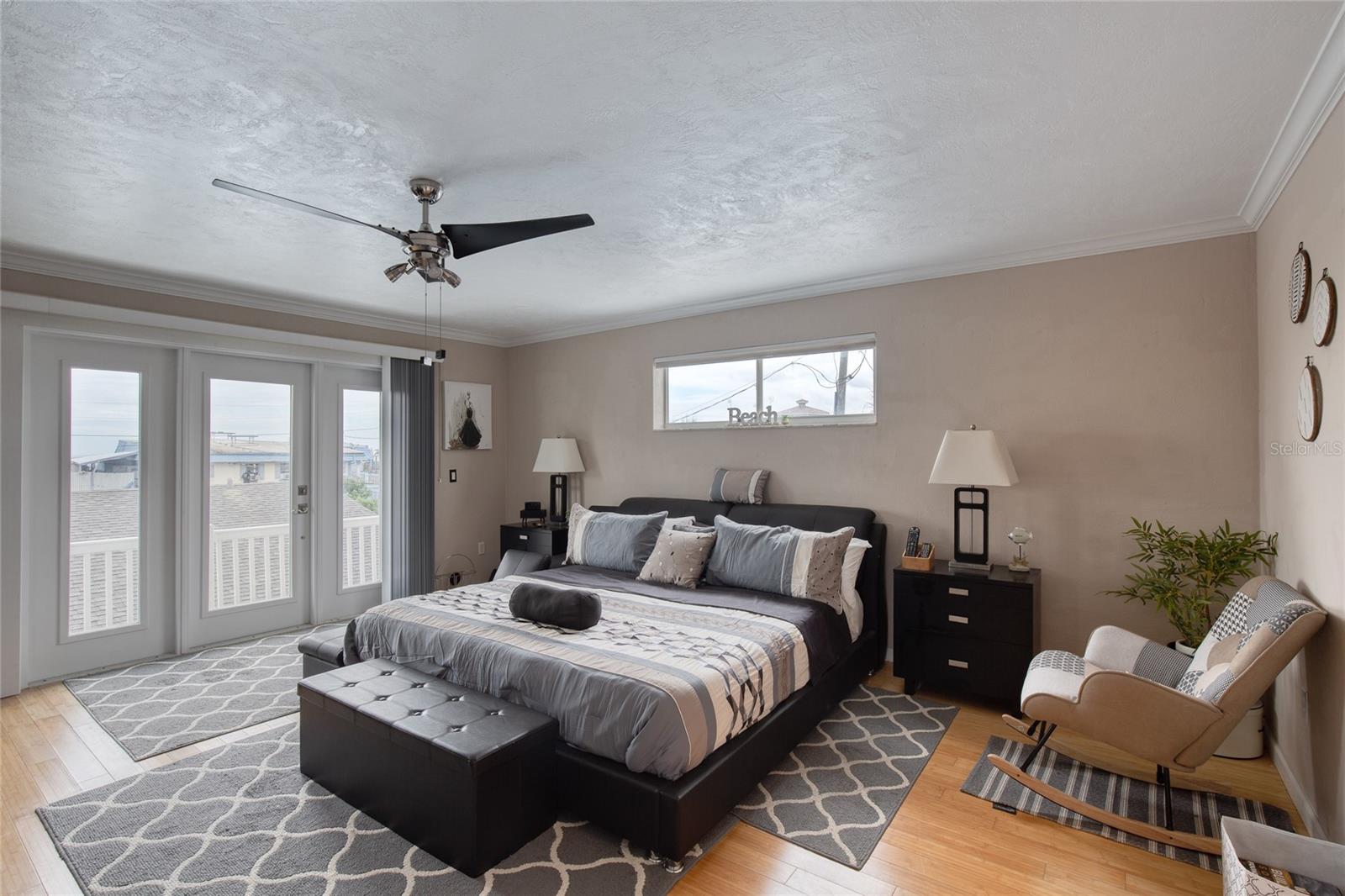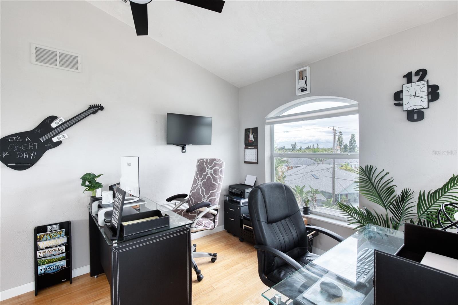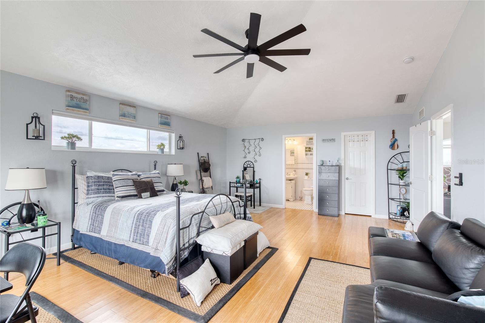 Million dollar views without the noise or traffic of A1A is what you will find in this updated one-of-a-kind 3 Bedroom 3.5 Bath 2500+ square foot three-story (with balconies) Key West Style Beach House. Each of the large bedrooms is on a separate level and includes its own ensuite bathroom. The open concept kitchen has custom cabinets, quartz countertops, a large island, and an eat-in dining area with a beautiful bay window view. There are amazing ocean and 360-degree views from the oversized windows in the third-floor loft & bedroom area, which also includes a peek of the Intracoastal. Enjoy your morning coffee watching the sunrise over the Atlantic Ocean.The front yard and fully fenced back yard have been completed with low-maintenance tropical desert landscaping. The covered backyard patio was designed and constructed in 2019. No need to worry, because this home has been meticulously maintained with a new metal roof and hurricane impact windows/doors including the garage. The A/C system was replaced in 2023 along with a water heater, dishwasher, ceiling fans and light fixtures. In 2024, the garage door opening system, microwave and electric range were replaced. Beautifully updated bamboo floors encompass the 2nd and 3rd floors. Square footage from tax rolls. All info intended to be accurate but can't be guaranteed.