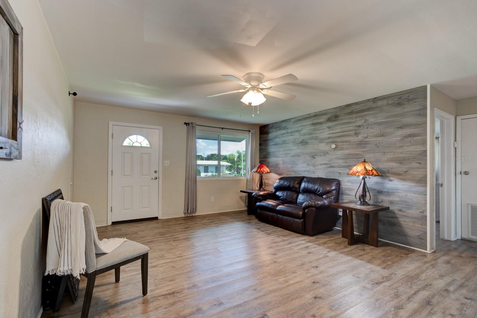 This move-in ready, concrete block home with an over-sized one-car garage, offers comfort and convenience in a sought-after Ormond Beach neighborhood. Enjoy peace of mind with a 2020 HVAC system, a brand-new 2024 hot water heater, 2019 window replacements, and a 2018 roof. This home features a new butcher block countertop in the kitchen, luxury vinyl flooring throughout, and a spacious covered lanai. The freshly painted interior and exterior, combined with professional cleaning, ensure that this home is move-in ready. Bring your furniture and settle in effortlessly. All this, and more, for less than $300,000. Don't miss out on this opportunity! All information taken from the tax record, and while deemed reliable, cannot be guaranteed.