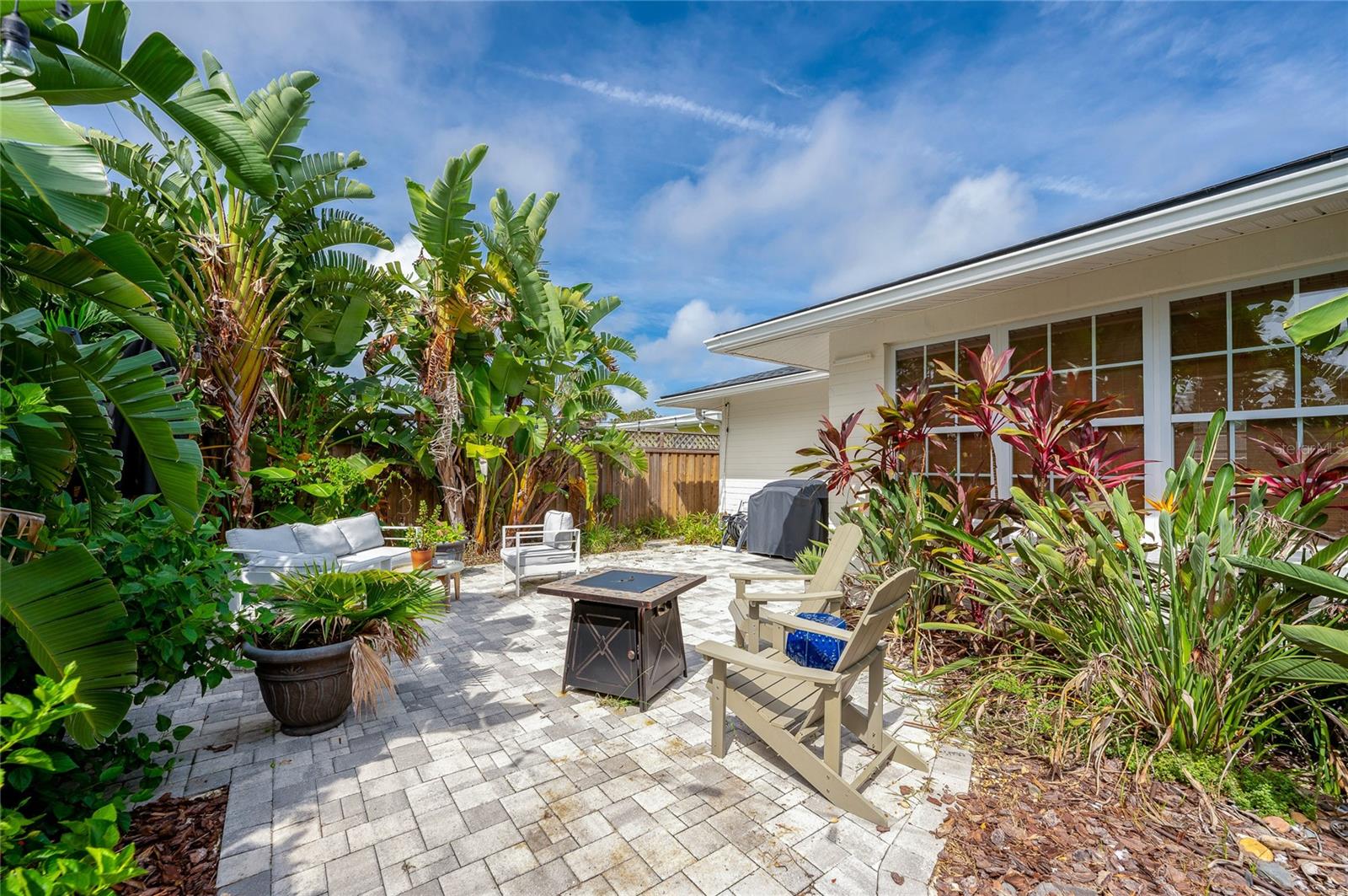 This home is the epitome of a beautiful HGTV makeover and is designed for easy living just ONE BLOCK from the beach!. The highlight of this home is the huge BRAND NEW KITCHEN with the latest colors and features, including travertine flooring. A very large sit-down island and cozy breakfast nook area allow for comfortable casual dining and get-togethers with friends and family. Sleek quartz and butcher block countertops, modern stainless steel appliances and ample storage seamlessly blend style with function. The two pristine bathrooms have been meticulously remodeled using the latest colors, tiles, sinks and upgraded brushed gold fixtures. The primary bath has a large, glass-enclosed shower while the hall bath has a new soaker tub, both featuring a rain head and hand held shower. The home’s original wood floors run throughout the main living area and bedrooms, adding a warmth that complements its modern upgrades. In addition to the two bedrooms, there is a flex room off the living area perfect for an office, library or exercise room. A noteworthy design detail is the opaque French door to this room as well as the bedrooms. The huge paver front porch gives the home a welcoming appeal. The fenced backyard with a large paver patio is a private tropical oasis creating a sense of seclusion and tranquility. The oversized one-car garage has space for your car and practical storage. Minutes to Bellair Shopping Plaza ( including Publix) and a myriad of other shopping choices and restaurants. Picture the ease of beachside living, where the ocean waves create a daily soundtrack and a quick stroll has you basking in the sun or dipping your toes in the ocean. Whether you’re entertaining, relaxing, or exploring, this home and its beachside location offers a truly idyllic lifestyle.