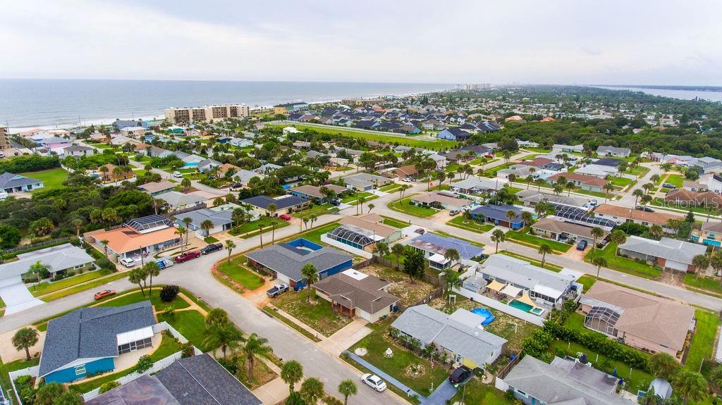 Less than .25 mile to the beach in this lovely two bedroom, 2 bath concrete block home! This home offers both living room and family rooms, updated kitchen with stainless appliances, no carpet (tile and vinyl plank), neutral paint colors, an oversized screened porch (to enjoy those ocean breezes) and a large back yard. Store your vehicle, golf cart or beach toys in the one car garage. HVAC is 2024, roof 2015, water heater 2011. All information taken from the tax record, and while deemed reliable, cannot be guaranteed.