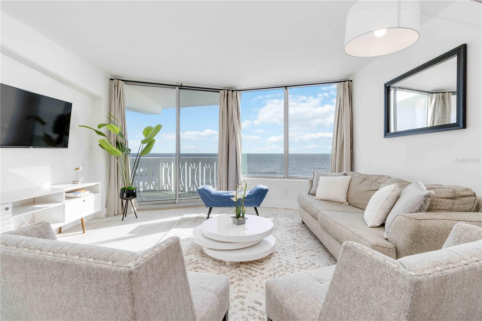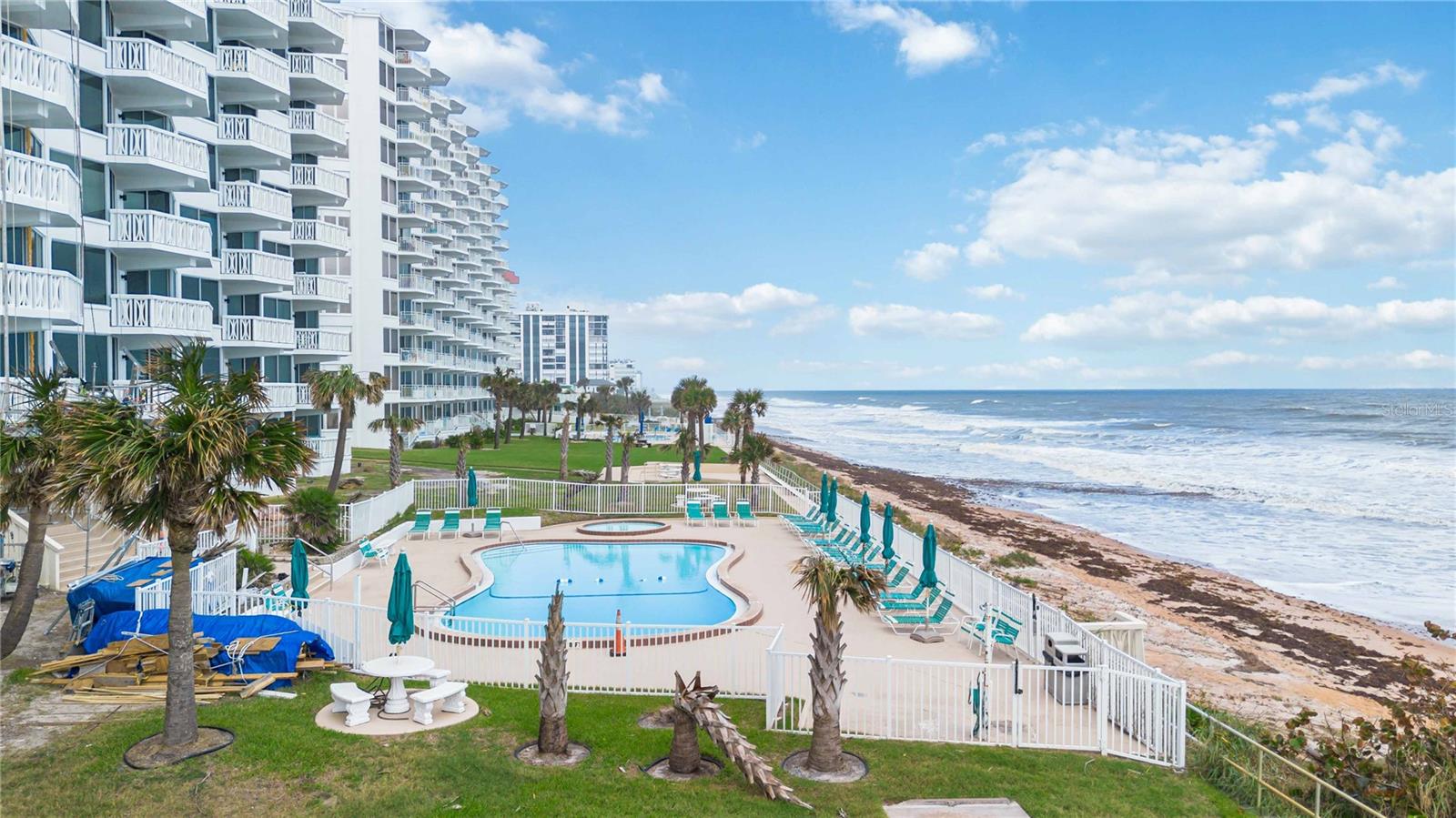 This beautiful, newly fully renovated (2024) two-bedroom, two-bathroom condo on the 6th floor offers 1,065 square feet of living space with stunning oceanfront views and direct access to the beach. The property boasts a spacious balcony that directly faces the ocean, perfect for enjoying sunrise or sunset. The open-concept living room and dining area also provide sweeping ocean views, making the space feel light and inviting. Impact doors and windows have been installed in 2024. The condo features brand new stainless steel appliances and sleek vinyl flooring throughout. The master bedroom has direct access to the balcony, allowing for a peaceful retreat with ocean breezes and beautiful views. Both bathrooms are airy, clean, and have a modern aesthetic. Additionally, the unit is equipped with a convenient stackable washer-dryer, and the community offers a shared laundry room for added convenience. Amenities include a pool, hot tub, and a picnic area that faces the ocean, providing a perfect setting for relaxation or gatherings. The condo also comes with a dedicated parking spot in the parking garage. This newly renovated condo is the perfect blend of comfort and luxury with breathtaking ocean views. Don't miss this opportunity and schedule your showing TODAY!