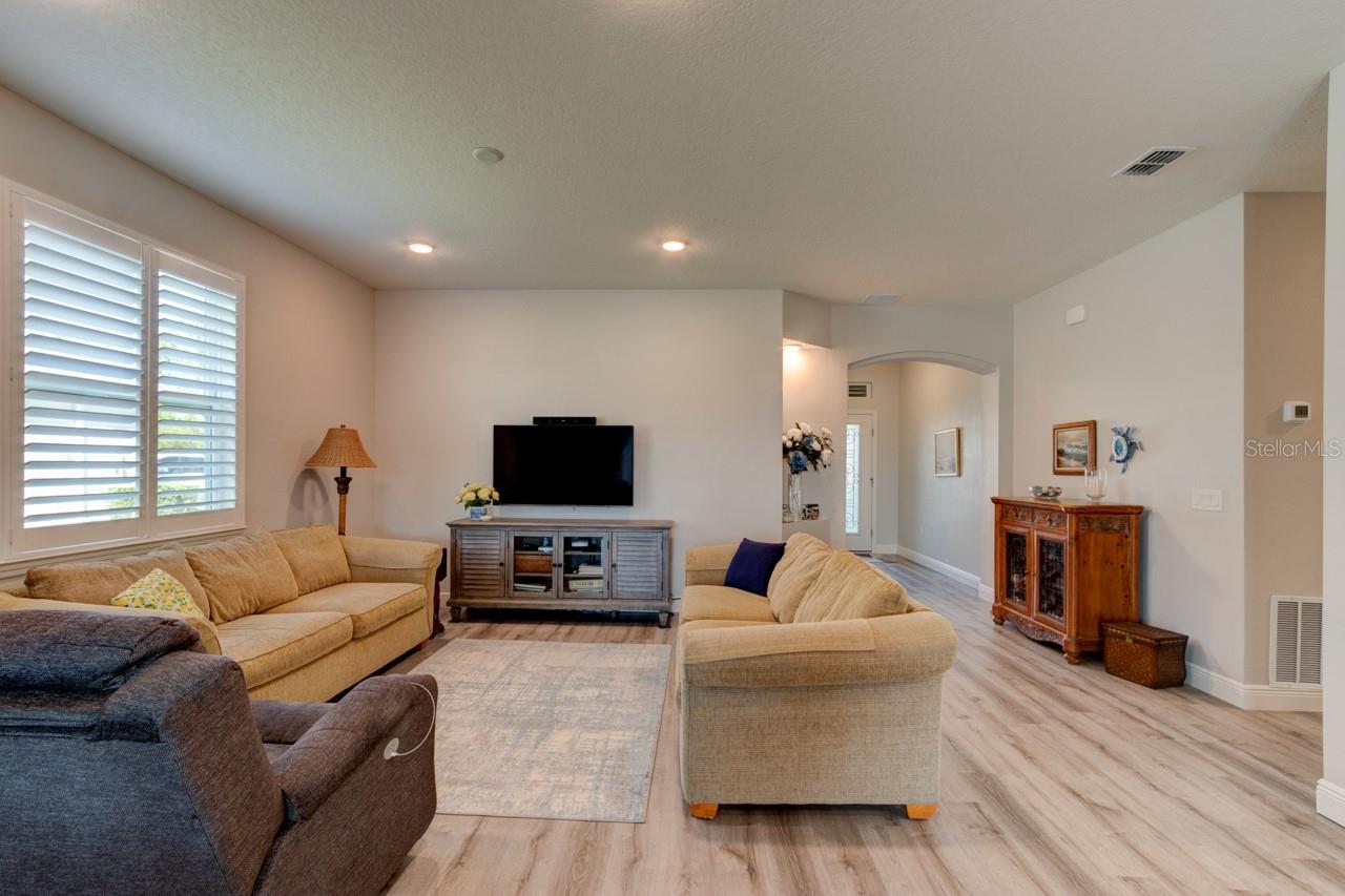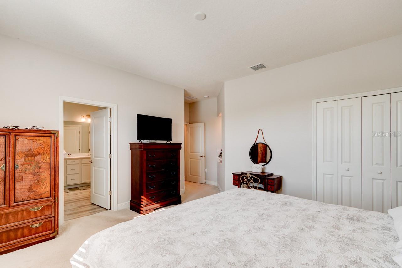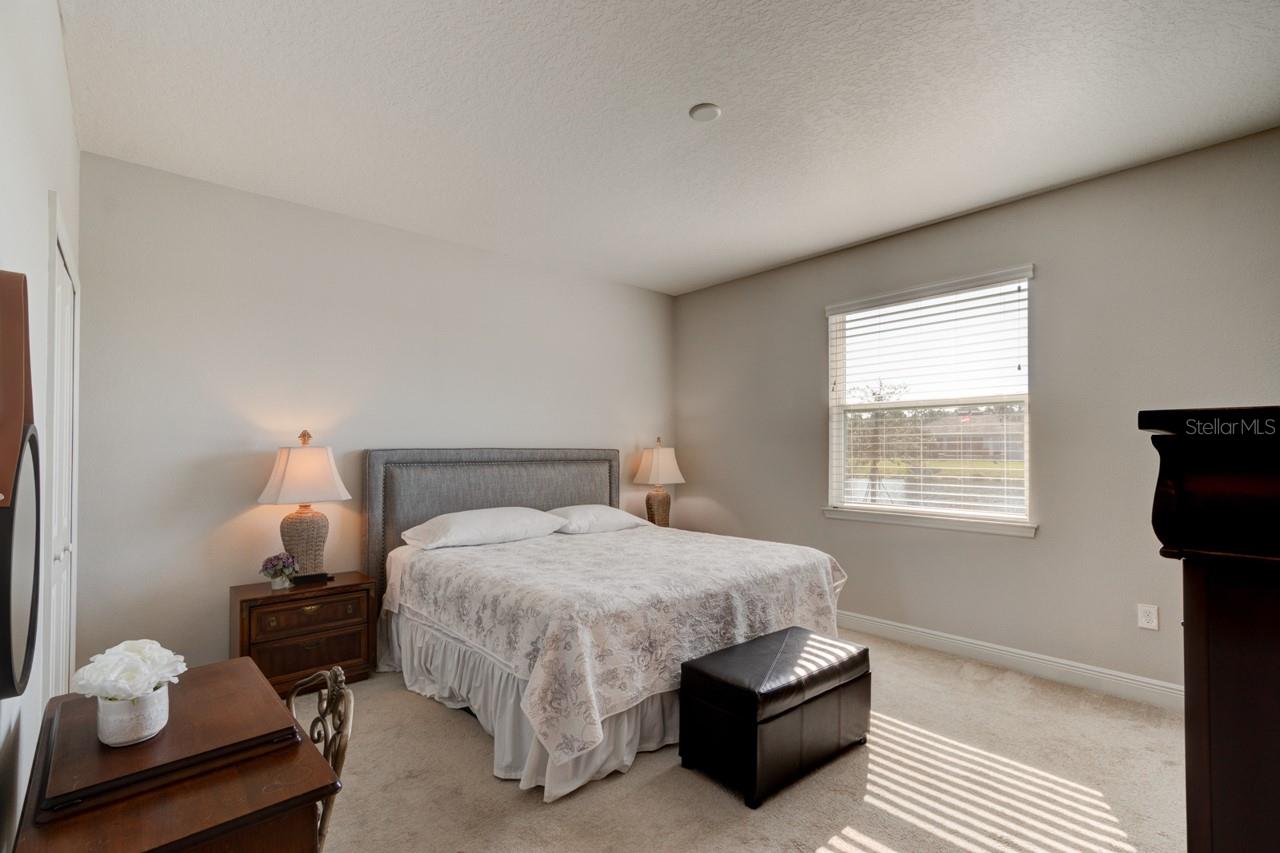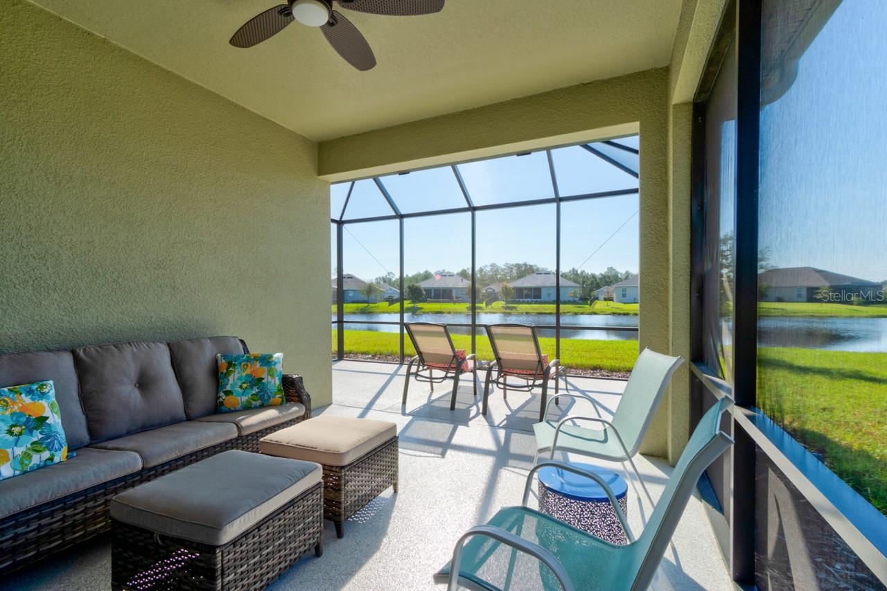 This stunning Holiday Builder home in the 55+ neighborhood of Hunters Ridge offers a harmonious blend of luxury, convenience, and style. Enjoy a Zero-Maintenance lifestyle including Lawn, Paint, Pressure Washing, High-speed Internet, Cable TV, Irrigation, Tree-trimming, Fertilization, Pest Control, Mulch, etc. With 4 split bedrooms and 2 bathrooms, this 2021 beauty is designed for comfort and practicality. The attention to detail is impressive, from the expansive lanai overlooking a serene lake to the light and bright design inside creating a space of both elegance and functionality. . The home's layout provides privacy with an owner's suite that feels like a personal retreat, complete with dual sinks, an oversized shower, a spacious walk-in closet, and TWO MORE CLOSETS! Outside, the huge screened lanai provides an idyllic setting to enjoy peaceful pond views, enhanced by panoramic screening and southern exposure that ensures the space remains usable year-round, even in the heat of summer. This home offers a zero-maintenance lifestyle including High-speed Internet & Cable TV services. The home is part of the Huntington Village Association, which includes access to 3 private pools, tennis courts, fishing ponds, walking trails, and exterior maintenance. Along with lawn care, tree trimming, mulching, fertilization, weed control, pressure washing, and exterior painting covered by the Association, the monthly HOA fee also includes high-speed internet and cable services! Meticulously maintained, this home stands out as a turnkey option that offers more than new construction, all within a short drive to the beach. It's truly a rare gem in a highly sought-after community.