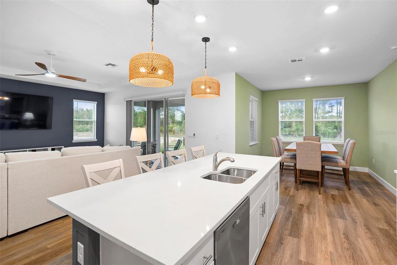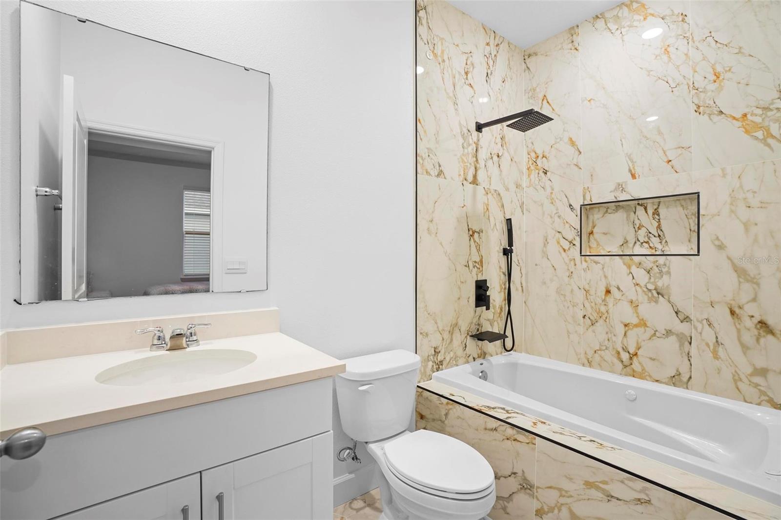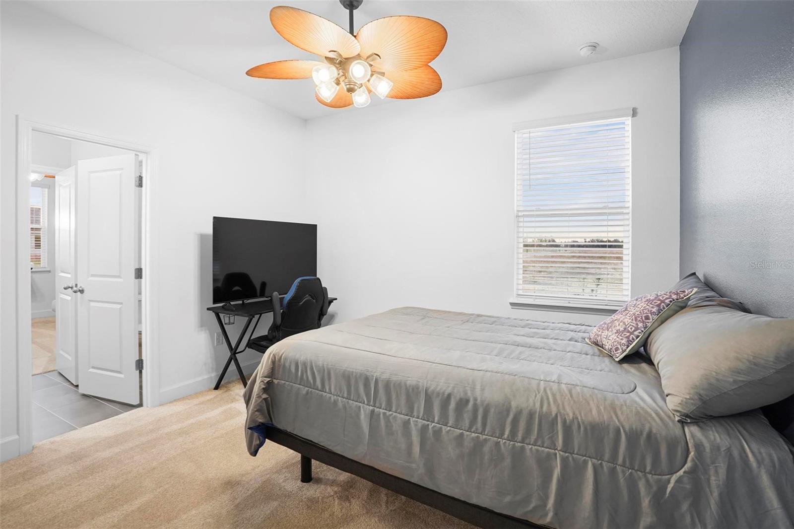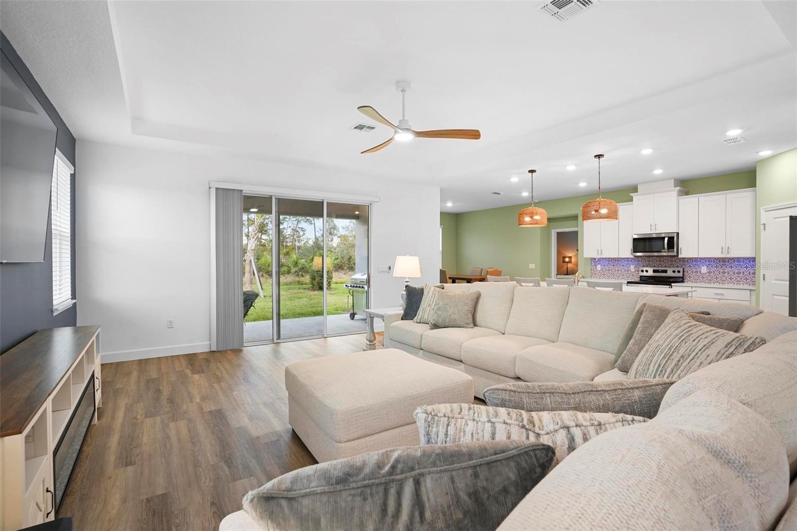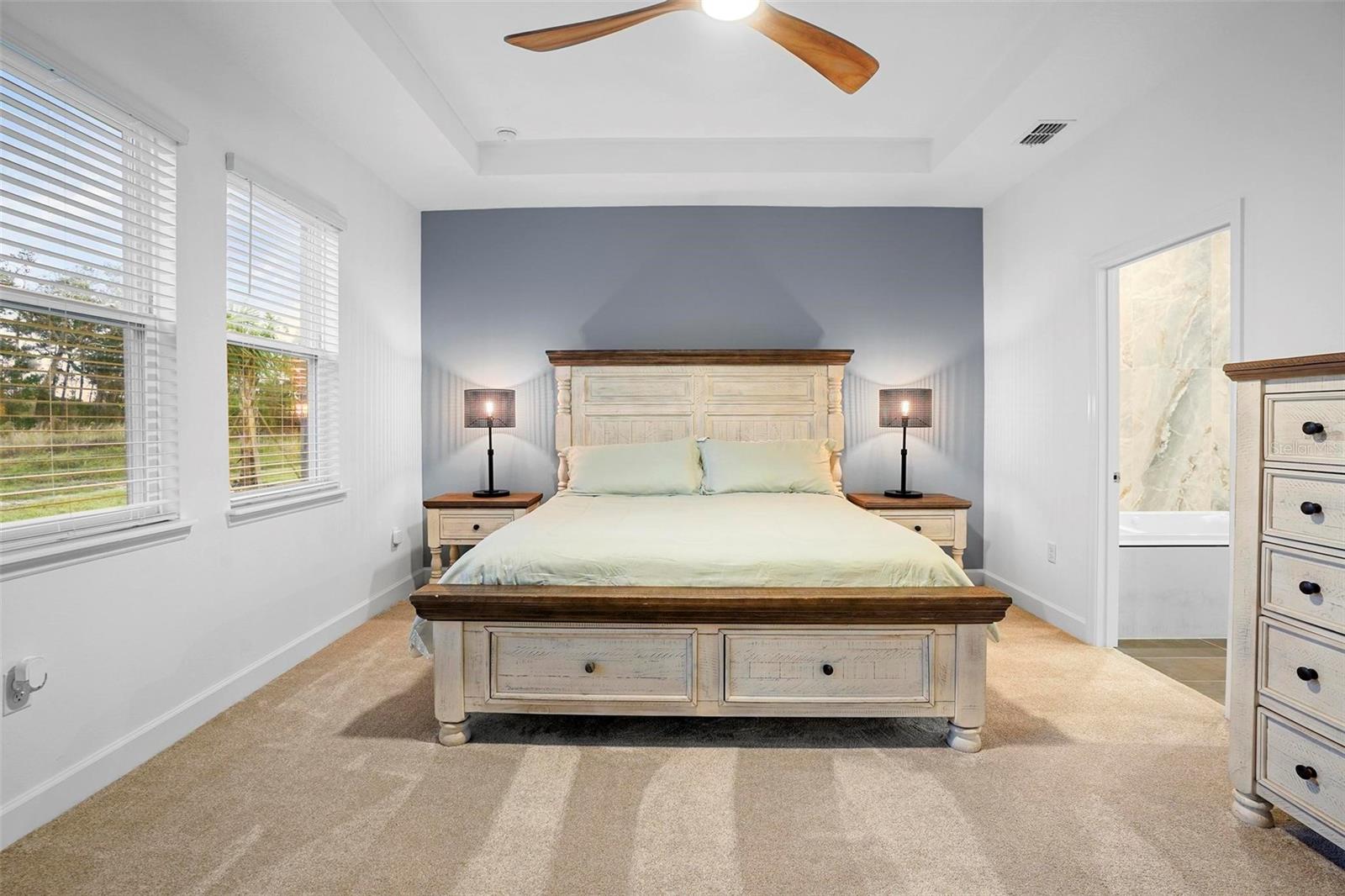 Say hello to the Upgraded Camden model in Archer Mills—a home unlike any other in the neighborhood! This multi-gen smart home layout offers two homes under one roof with the convenience of lawn maintenance in the HOA dues, it's ideal for a second home or a primary residence and comes complete with all the upgrades you've ever wanted! You enter into a beautiful open foyer and greeted with two guest bedrooms that share a stylish Jack and Jill bathroom. This bathroom isn't just functional; it's a standout feature with its elegant double vanity and luxurious rectified porcelain tiles in the shower and flooring. Moving down the hall, you'll find a spacious dining room, perfect for family gatherings or additional living space. The heart of the home is the kitchen, which seamlessly connects with the great room. It shows beautifully with granite countertops, stainless-steel appliances, newly added soft-close doors and a pull-out trash can, new pendant lights, and fun 8x8 rectified porcelain deco tiles that brings the whole house together. Adjacent to the kitchen is a café area that offers views of the oversized covered lanai, ideal for casual dining. The master bedroom, situated at the rear of the house includes two walk-in closets and an ensuite bathroom. This bathroom is updated with 24x48 rectified matte porcelain tiles, a shower floor with mosaic porcelain tiles with heated drop-in tub, and 12x24 rectified porcelain tiles on the bathroom floor. What truly sets this home apart is its separate suite. This suite includes its own private entrance, living space, bedroom, kitchenette, polished 24x48 rectified porcelain tiles on the walls, and 12x24 rectified porcelain tiles on the bathroom floor and heated drop-in tub. This smart home is equipped with cutting-edge technology, allowing you to control various features with your smart device. The interior highlights new Sherwin Williams satin Super Paint, with flat paint on the walls and semi-gloss Sherwin Williams Duration paint on the trim and doors. The exterior is now protected by Sherwin Williams Duration acrylic latex paint, resistant to moisture and mold. Additional upgrades include ceiling fans throughout, LED lights under the kitchen cabinets and upgraded carpet in all the bedrooms to a luxurious 60 ounces with a waterproof Life Proof pad. Sellers also added a second garage door opener with built-in camera and WIFI and an epoxy-finished garage floor with hookups for a generator or an electric car and updated Mud room nicely done with storage and a bench. Don't miss the opportunity to make this exceptional home yours!! Schedule your showing today!!