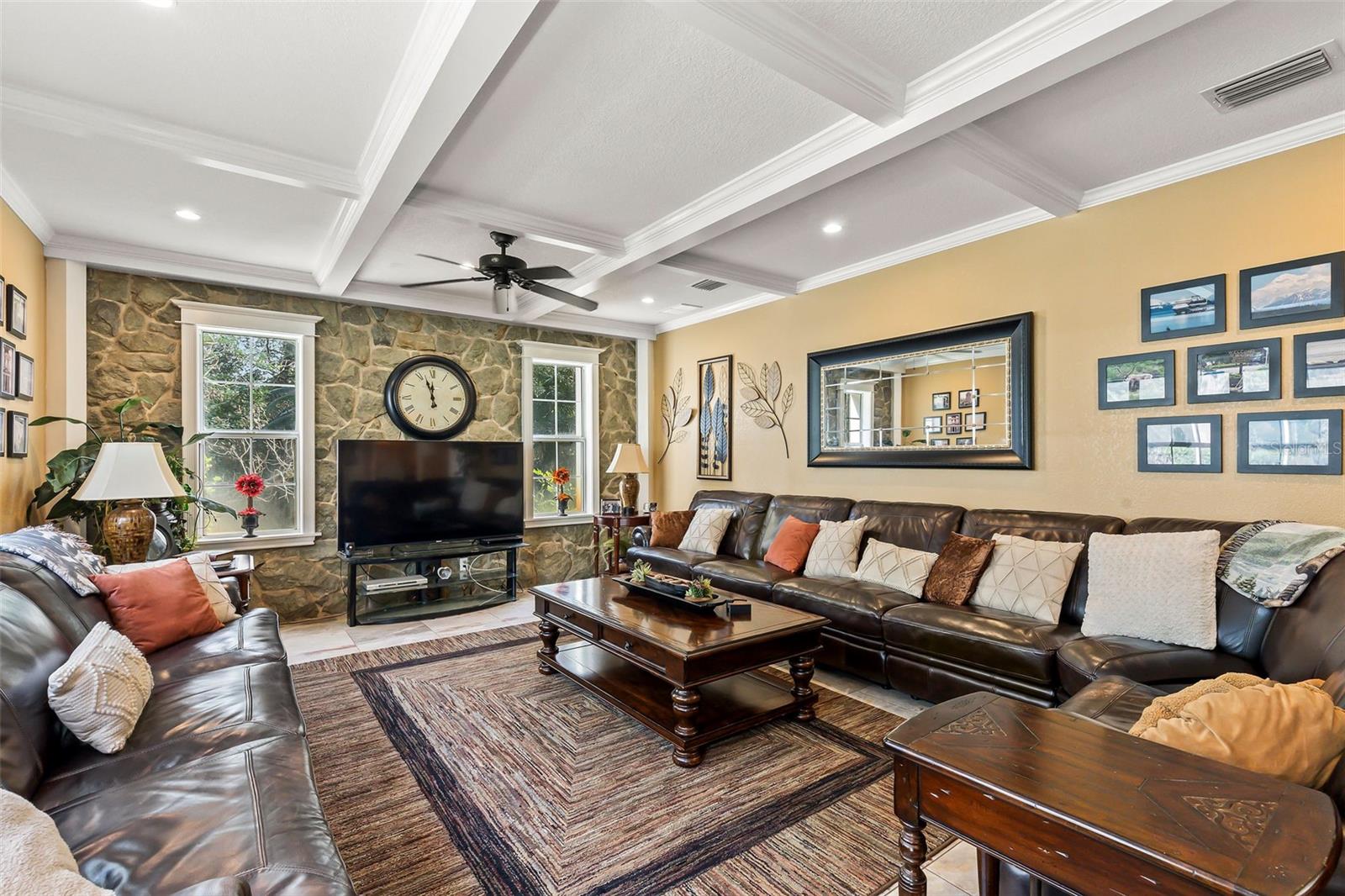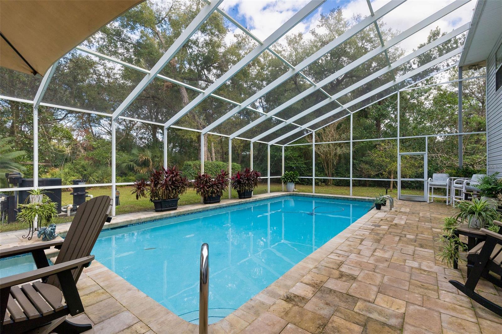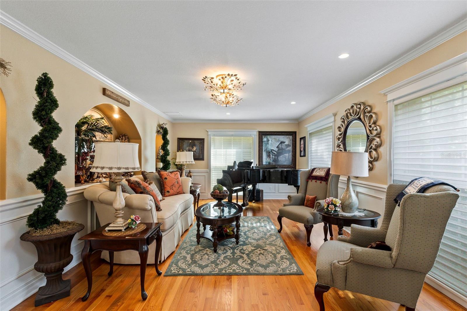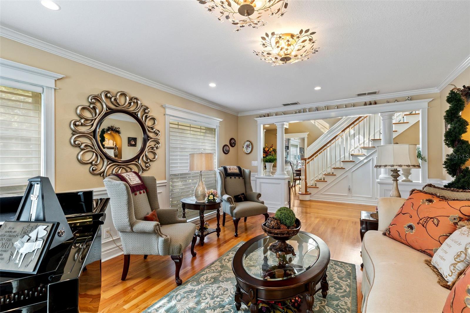 This is an incredible opportunity in one of Ormond's most central, estate-home neighborhoods. Don't miss this chance to live on acreage but within a short drive to groceries, shopping, hospitals, banks, the beach, and downtown Ormond! Situated on 2.3 private, wooded acres in Central Ormond sits this two-story, estate home that has been loved and cared for by the same family for decades. As you drive up the circular driveway, surrounded by trees (and many prolific fruit trees, also), you will be impressed with the front elevation of the stately home. As you enter the foyer, you will see a formal living room to your right and a formal dining room to your left. The dining room contains a custom storage cabinet with real wood doors. You will notice throughout the house the real wood floors, the extensive crown molding, the wainscoting (which conceals a ton of storage), and the beautiful windows with custom Hunter Douglas blinds. As you proceed forward, you will see an enormous family room with a gorgeous ceiling, a view onto the saltwater pool, and a bar for entertainment. The family room is connected to the eat-in kitchen which contains windows onto the pool, stainless appliances which include a warming drawer, trash compactor, and water purification system, as well as a copper ceiling and attractive hood vent for the island. The real walnut cabinets allow a warmth in the kitchen, as well as a built-in coffee bar for your morning coffee, and an enormous mud room/pantry and pool shower room off the kitchen that allows you to store all your dry goods and cleaning supplies. There is a two-car oversized garage connected to the mud room, for bringing in your groceries and supplies. Outside, you will find a fenced backyard around the heated, saltwater pool and spa, a pergola for your grill, a large shed, and beautiful grounds that go on forever. The second floor holds a guest side with two good sized bedrooms, and a laundry room and full bathroom. The owner's side includes an absolutely massive primary bedroom with a large, updated ensuite bath and a screened balcony for your evening cocktails overlooking the woods. The second story also contains an office/nursery/flex room that can be used for a children's play room, workout room, a fourth bedroom or guest bedroom, or any other need you may have. This house must be seen to be appreciated and there are so many positives to list! Knollwood Estates is highly sought after and opportunities like this don't exist often, so make an appointment today for your most discriminating buyer. All information taken from the tax record, and while deemed reliable, cannot be guaranteed.